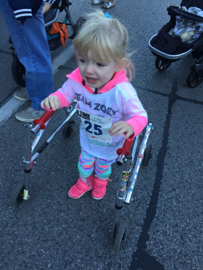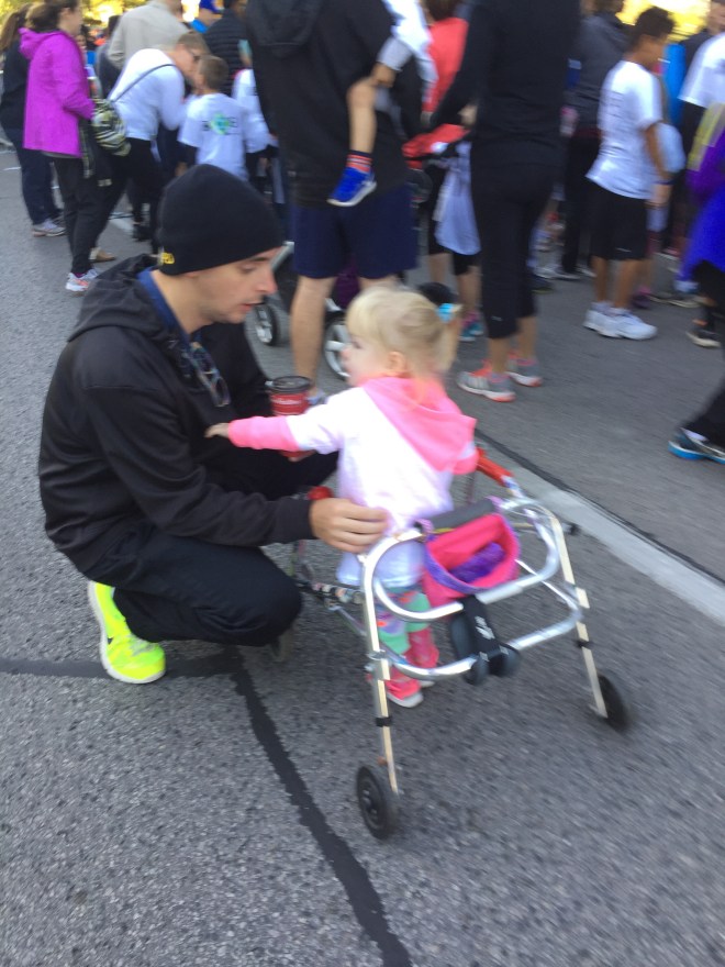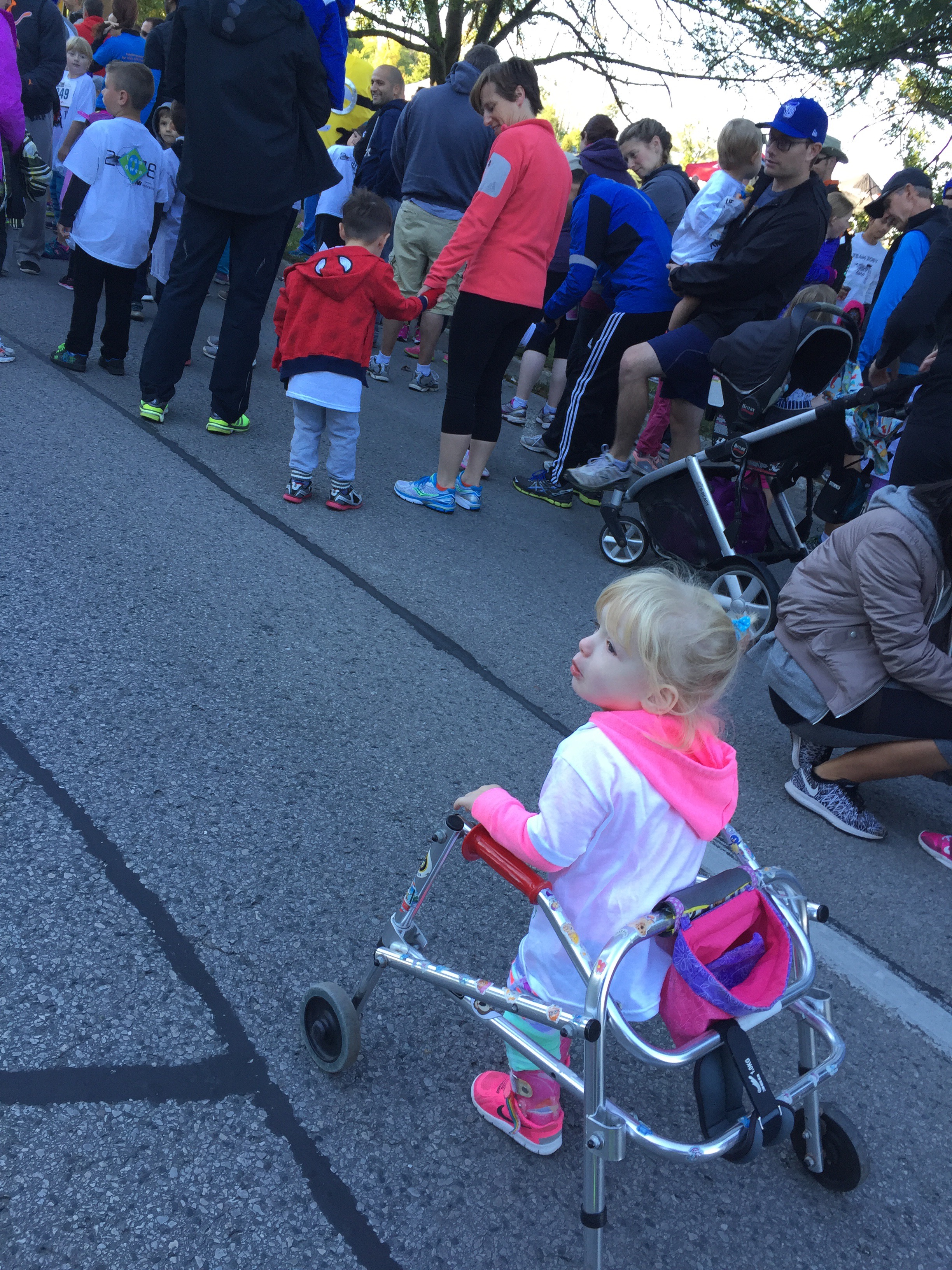 Madison was happy to see her friends Zoey and JR at the walk. They all did a fantastic job and tried their best to walk as much as possible. Madison was scared of a minion character who walked in the race, but when he was out of sight she was able to walk and did great!