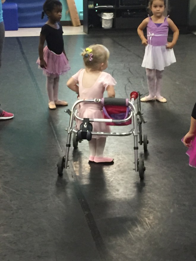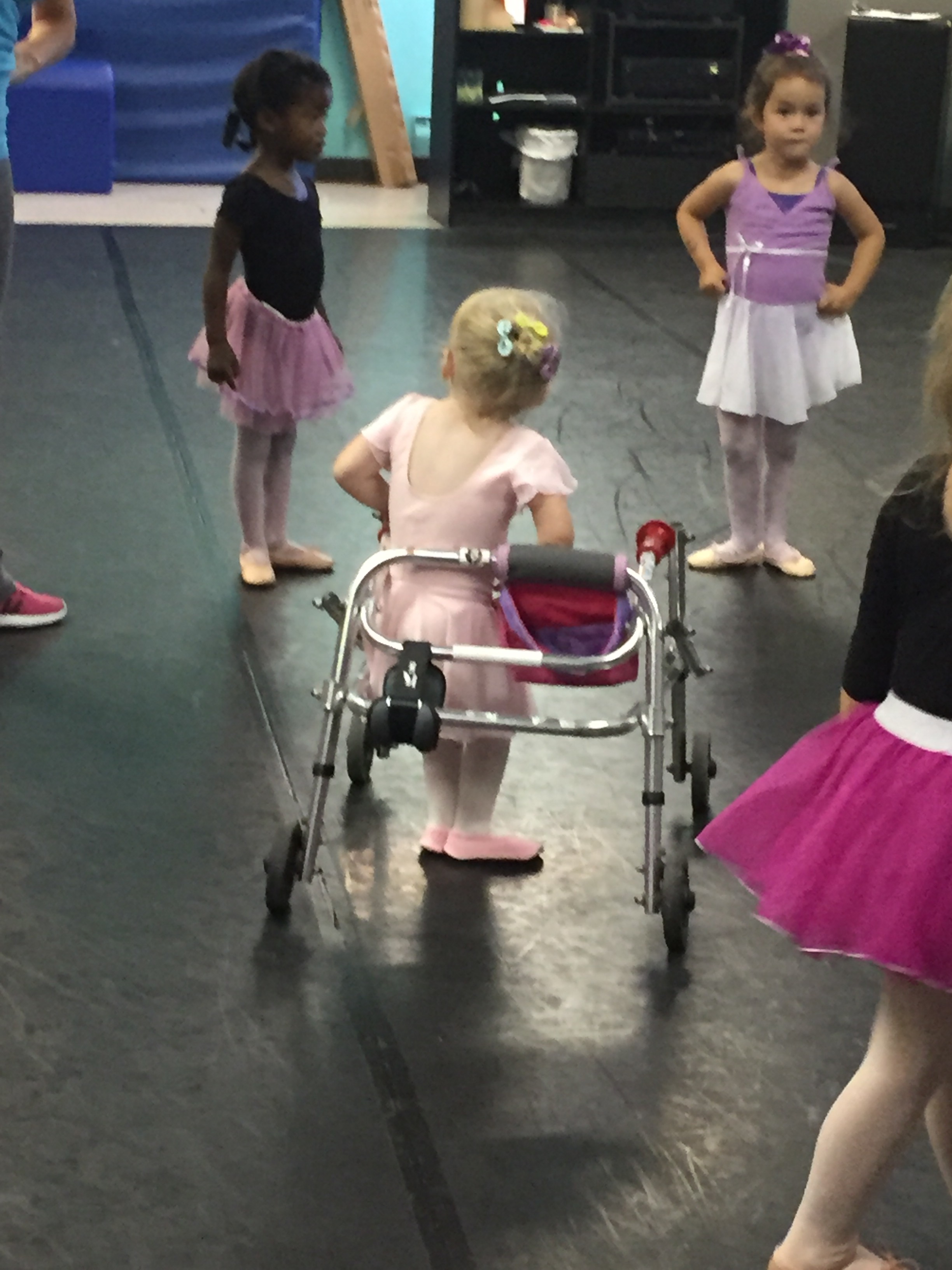 Madison had her third ballet class tonight and she is showing steady progress with her ability to demonstrate the skills her teacher does but most importantly, her confidence is growing. She loves standing and bending her knees up and down while she stands with her pizza feet with hands on her hips. She loves trying to walk like a duck. She also did a great job letting go of her walker to use her arms high in the air.