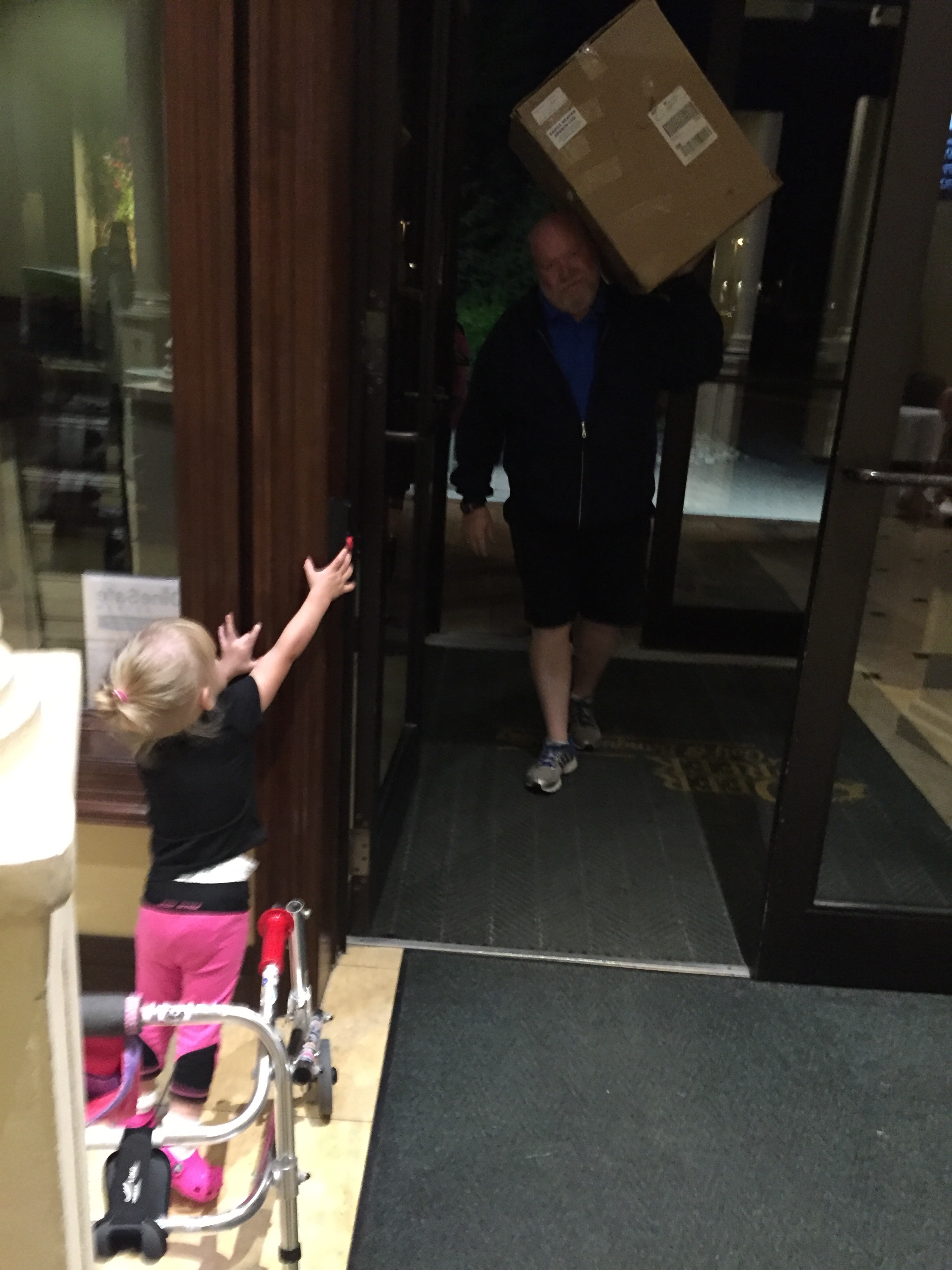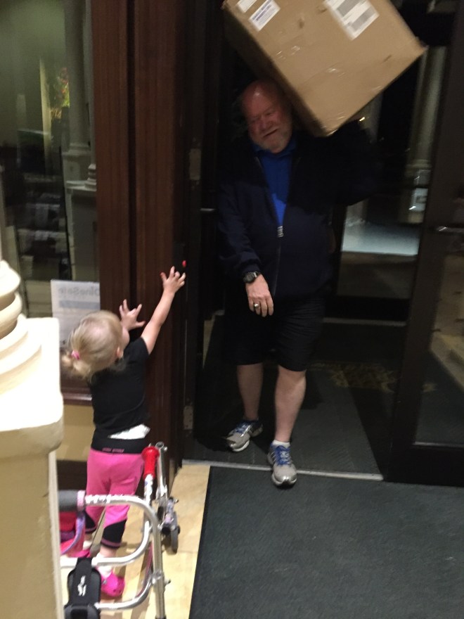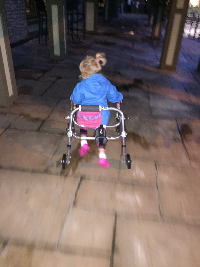 “I just wanted to share with you, that Madison had a nice day yesterday. She was a little bit tired at the beginning of the class, but she came around. She spelled her name with the magnet letters independently while walking in her obstacle course. She did great walking with her canes and took some independent steps. It was a very nice afternoon!”