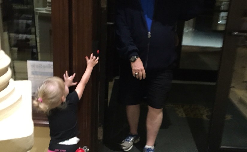 Madison was excited to go to Deer Creek Golf course tonight. She went to help with the set up for this weekends Mike GREGOIRE Memorial Golf Tournament. Mommy and Daddy feel very honoured and appreciative that Madison will be one of the recipients of funds raised at this years tournament. Madison helped push the door button to hold the door open for everyone as they brought in box after box of silent auction items and golfers registration bags. It was the kick off to a great weekend and great event!