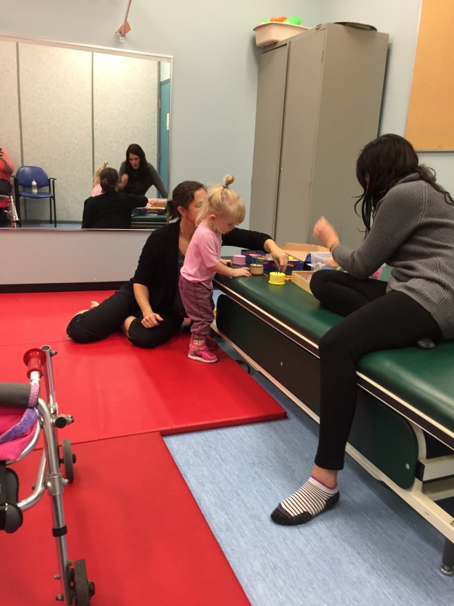 After a busy morning at school, Madison went to Grandview for physio. Today was the start of a new therapy block, post Botox. Madison settled into routine while Jack had a quick neck stretch from Kate. Mommy & Kate set three goals for this physio block.