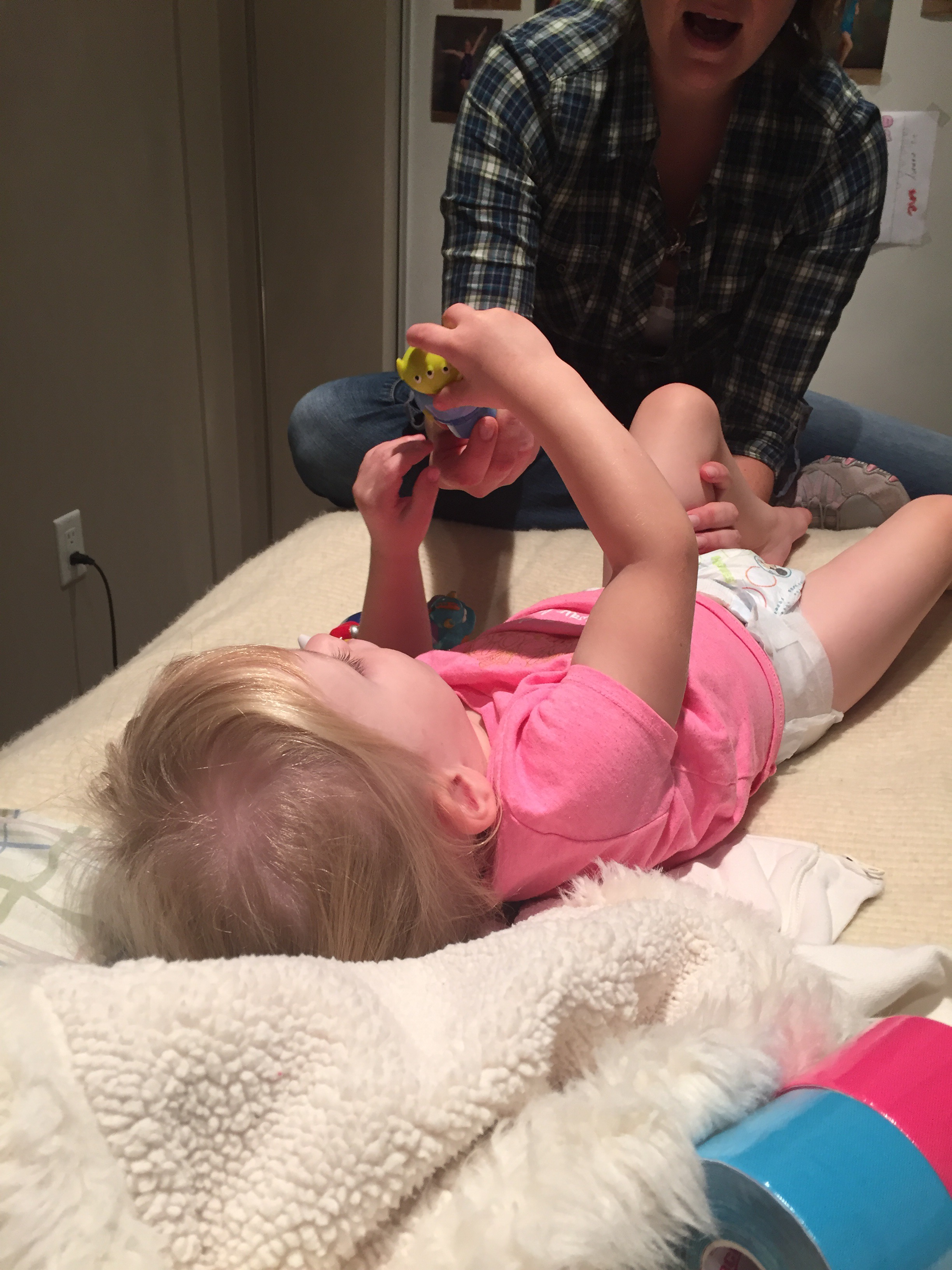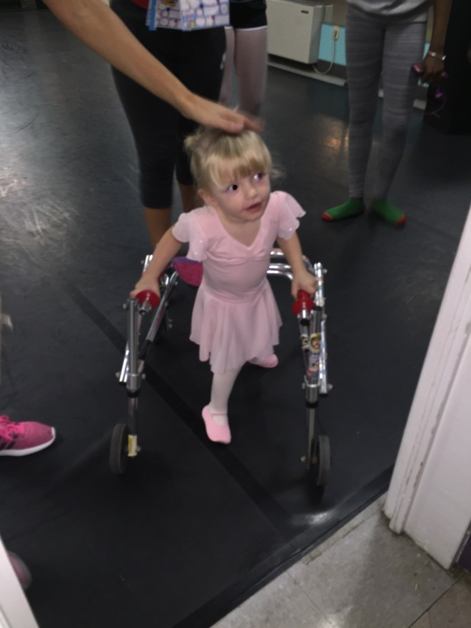 After some dinner and playtime with Jack, it was time for ballet! Madison used her arms consistently tonight and tried spinning in her walker. Madison has also done a great job trying to point and flex her feet and wiggle her toes to the music. Ballet has been a great opportunity for Madison to get a better “feel” of her feet out of her AFO’s. She loves going to ballet!