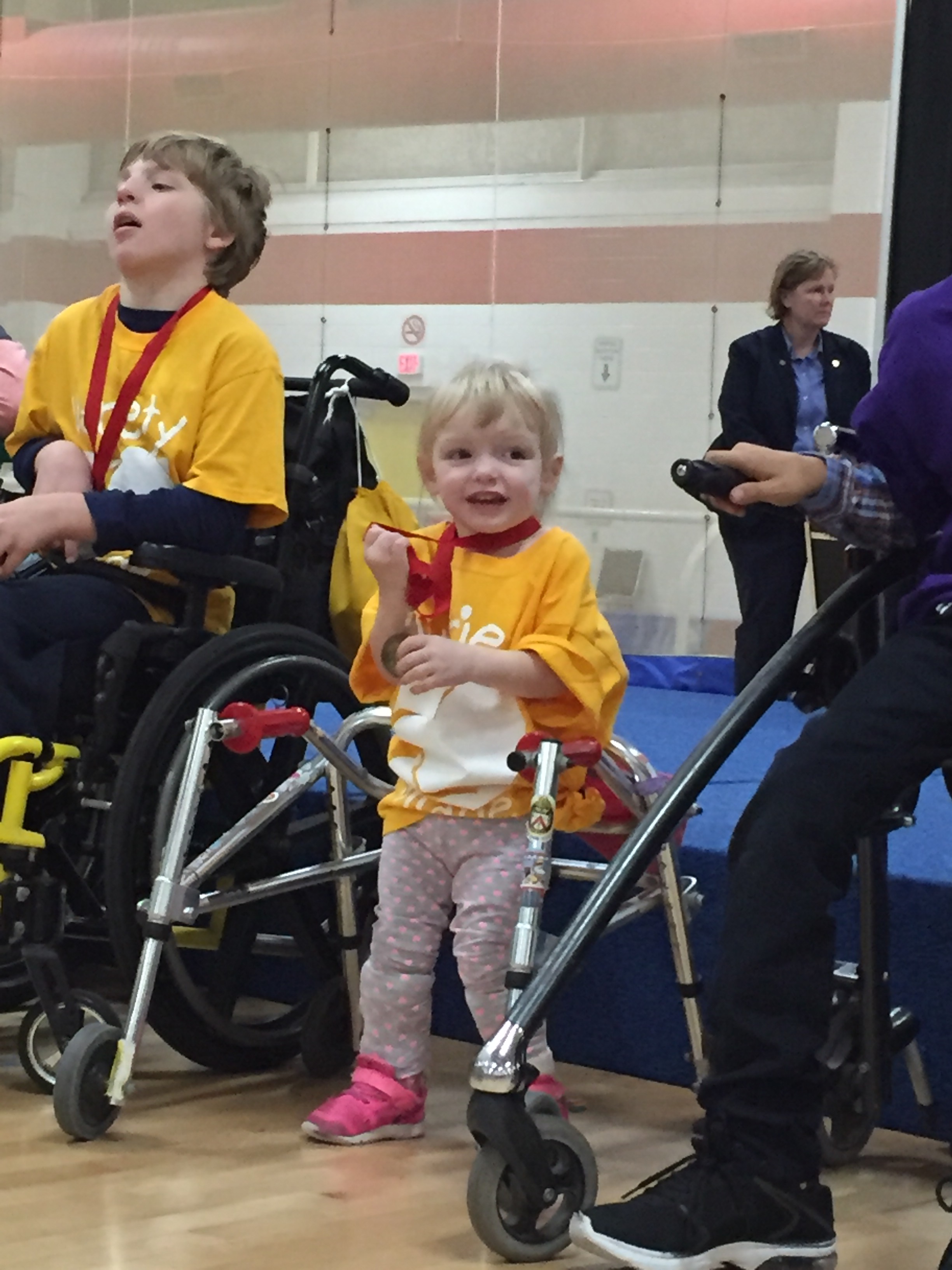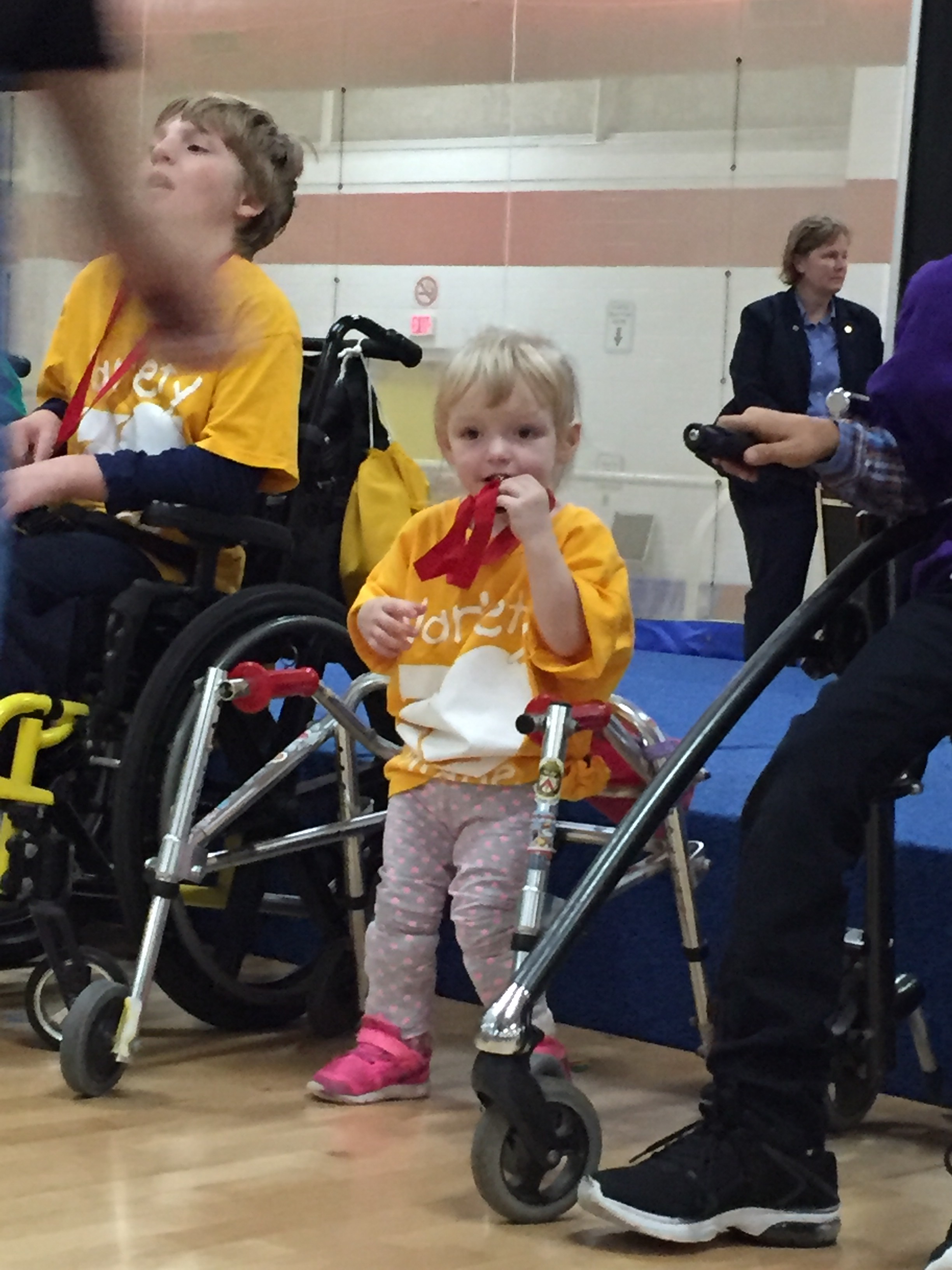 Madison was an ambassador at the Lieutenant Governor Games today at Variety Village. Over 500 students from all over the GTA participated in adaptive/inclusive sports and activities. They encouraged one another in an inclusive and fun environment which was amazing to be a part of. Madison LOVED dancing to the music and going on the turtle scooters. She was also so proud to receive her medal!