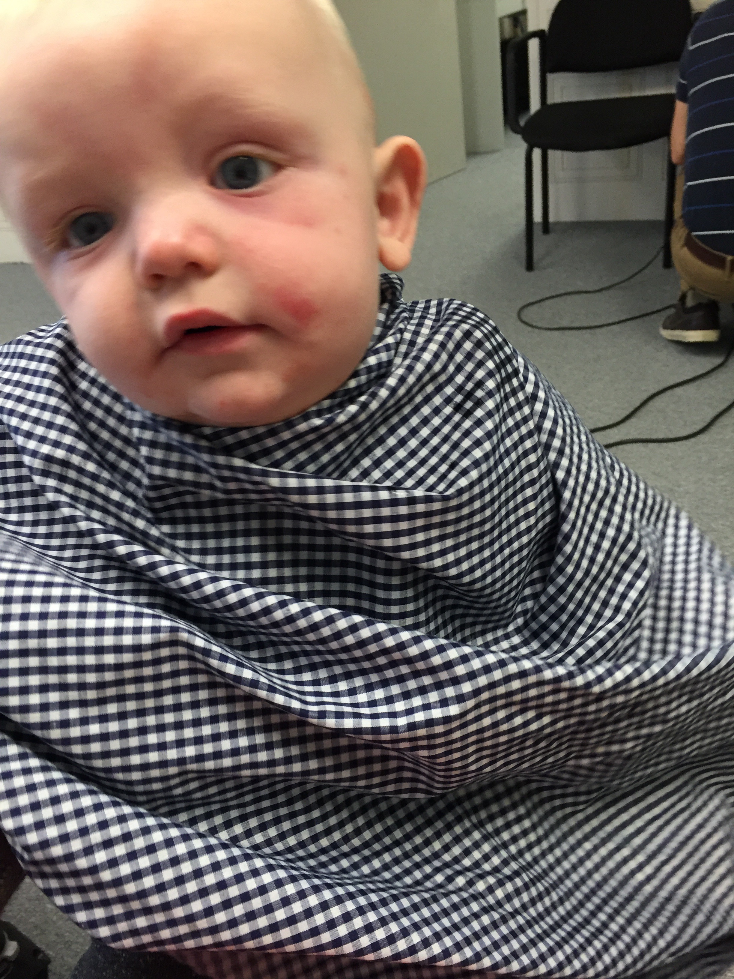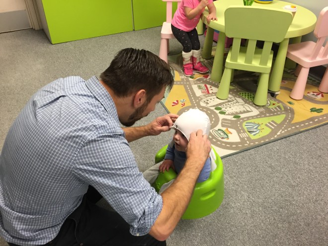 Jack has had another reaction to his helmet. He has an infected hair follicle so he is not to wear his helmet for a few days until the swelling goes down all the way. His helmet has also been turning on his head, so Eric added some new padding to try and stop it. Eric also used the camera to re-measure Jacks head to see what changes have happened to this point. We should have the numbers in a few days. Once Jack was finished with Eric, Madi and Jack left to get some breakfast and run some errands.