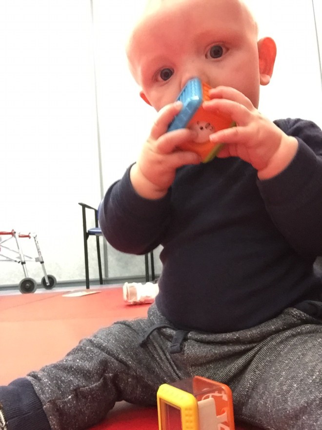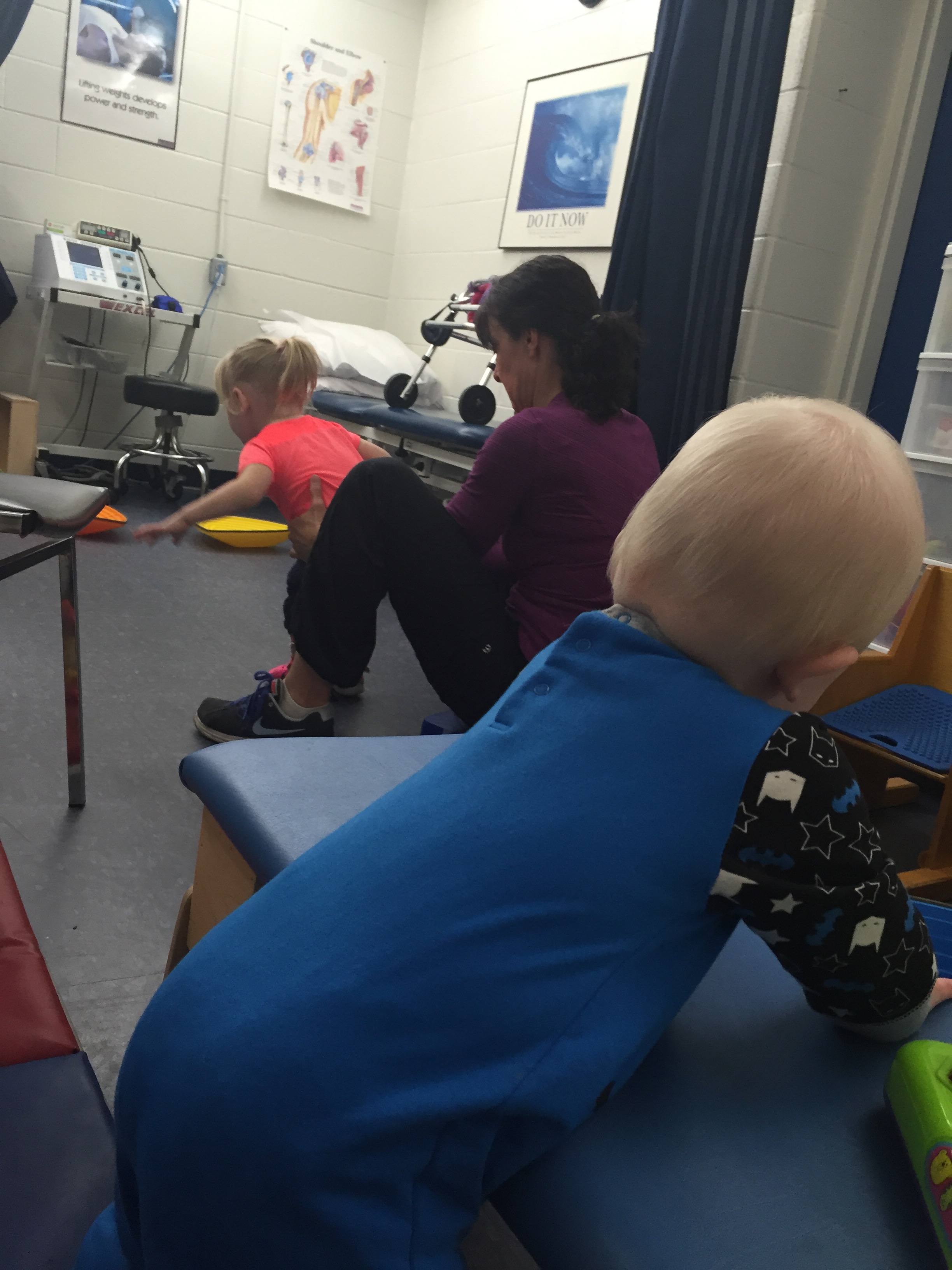 It was then time to head to Grandview. Jack had the first appointment. He did some tilting on the ball and in front of the mirror to strengthen his neck muscles and he also got a good neck stretch.