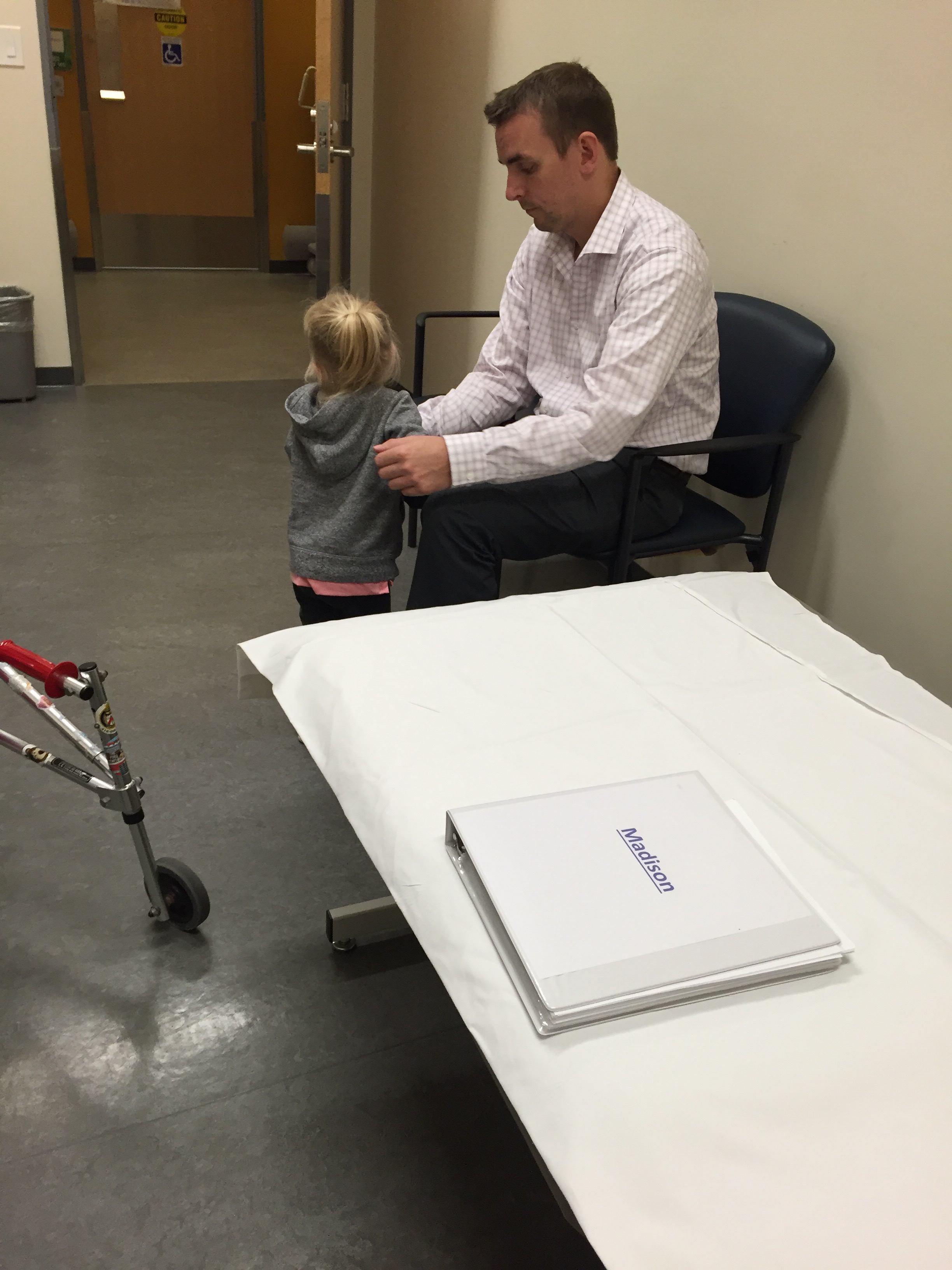 Madison and Jack were up bright and early for a day full of appointments. They ate their breakfast and were out the door at 7:30. Their first stop was to see Eric. Madi needed some work done to her AFO’s and Jack needed his helmet adjusted.