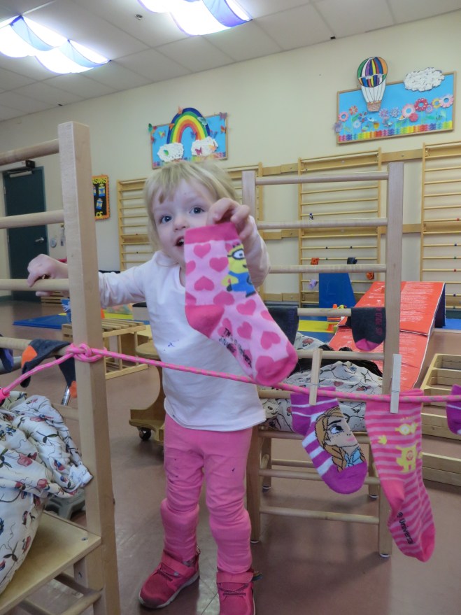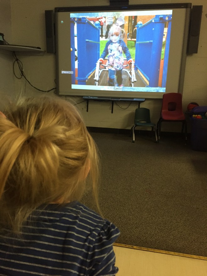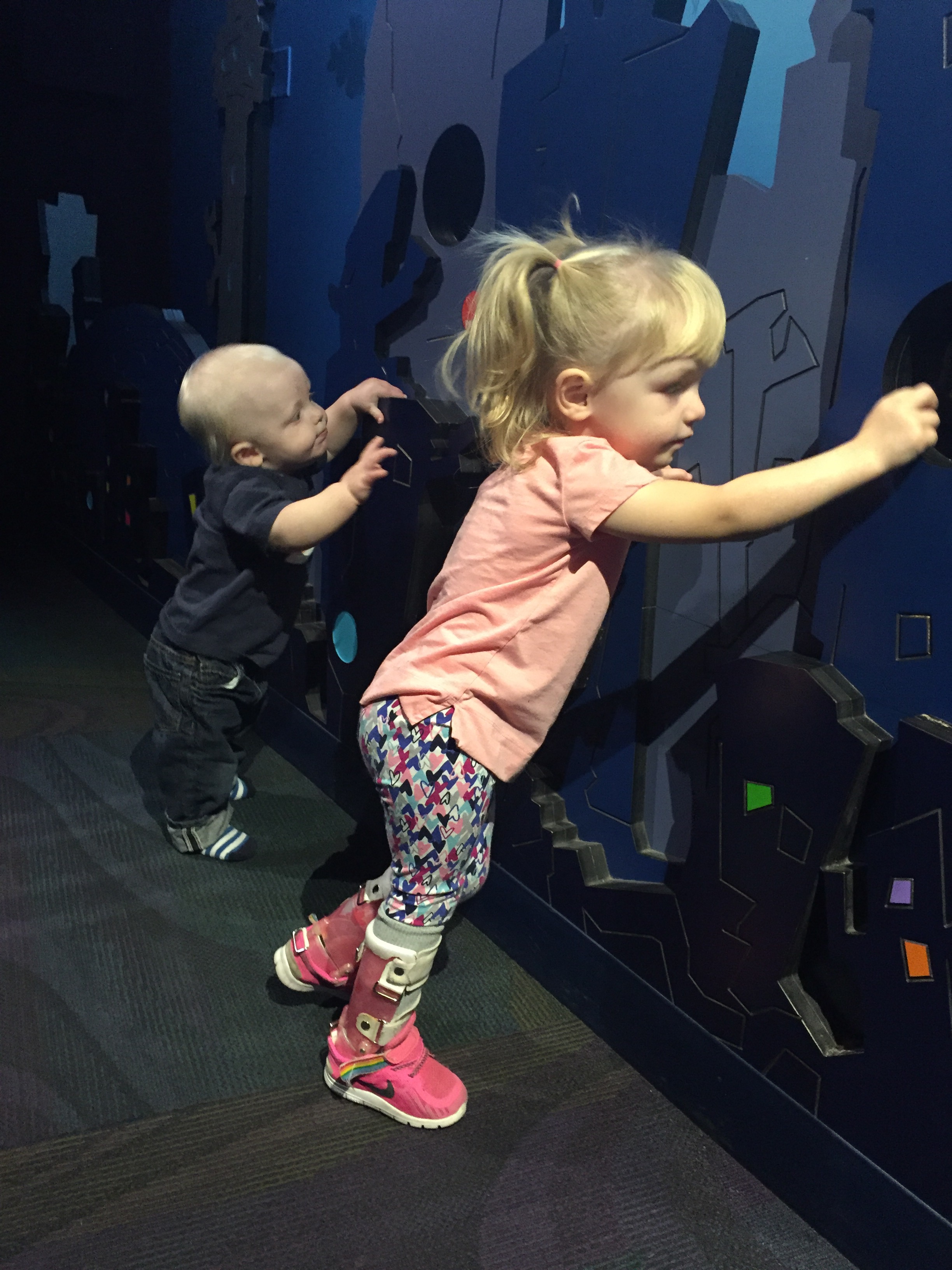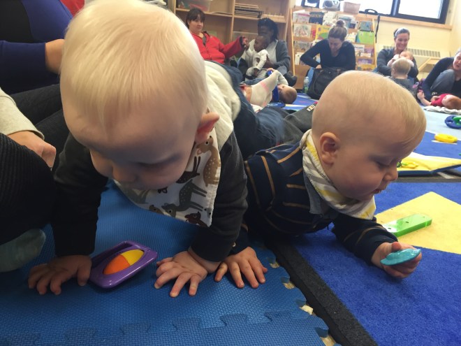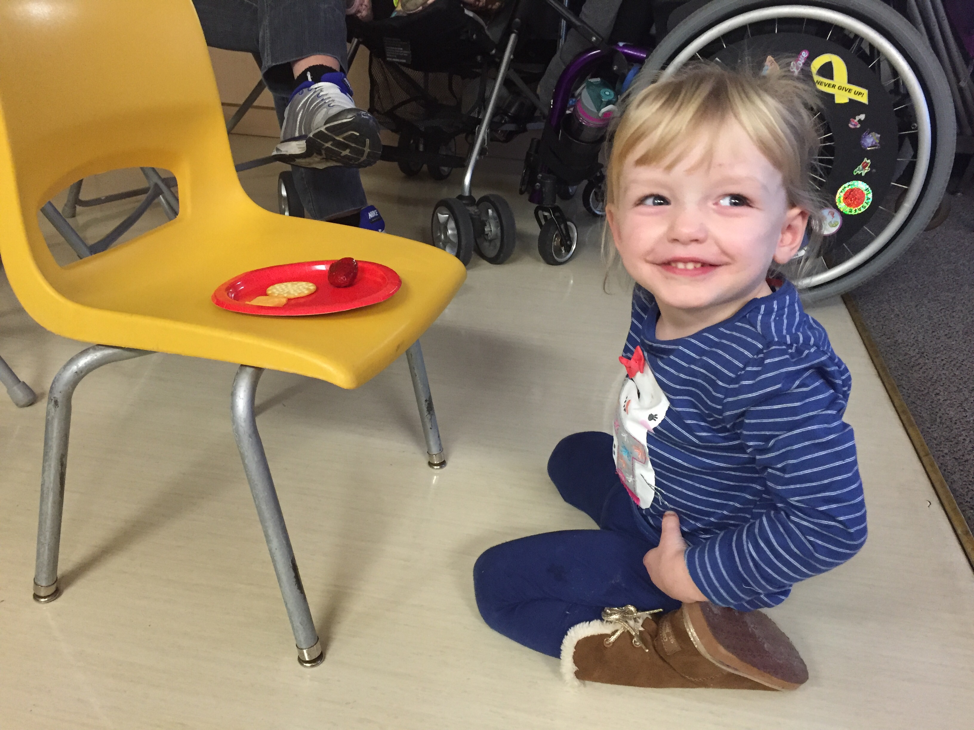 After a quick play at home it was time for ballet! Madison let go of her walker several times to try lifting her arms in the air and turn. She was so proud of herself! Jack watched with all the other brothers at the door.
