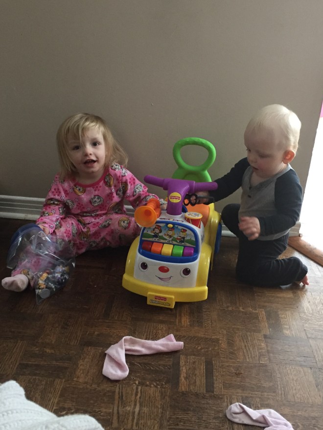 Madi and Jack were happy to have a quiet afternoon playing in the basement after such a busy morning.