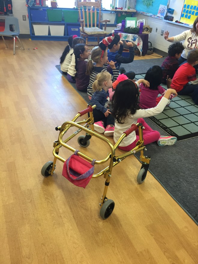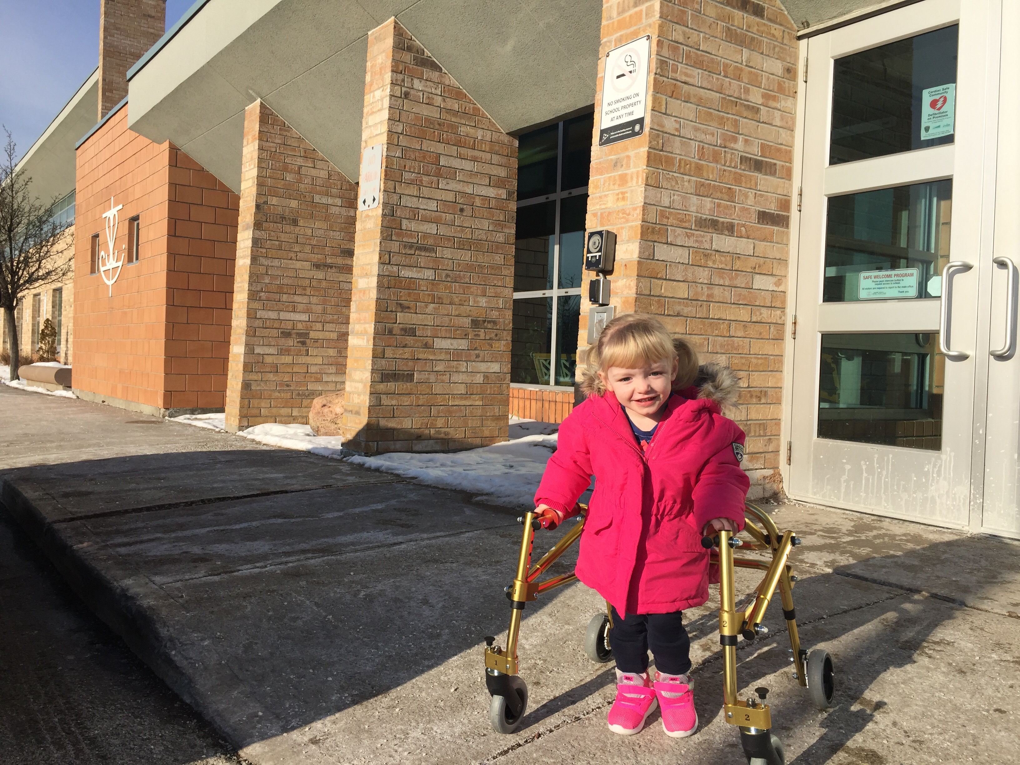 Madison went to her “big kid” school this morning to visit for the first time. Starting in September, Madison will be attending Junior Kindergarten at St. Elizabeth Seaton Catholic Elementary in Pickering. She will be fully integrated into a full day kindergarten program with a class size of 30. It was an amazing first visit! She walked around the school with her Principal, Vice Principal and two members of her school support team. She went into a JK classroom and joined them for morning circle and calendar. She then went with them to the library to build in their tech section and played at a train table. She met her Vice Principals fish and got to choose some stickers. She LOVED it and was sad to have to leave. She will be registered in January, have her first team meeting in April with members from her preschool program and team at Grandview and will visit again in June and then August to make sure all equipment and everything that she needs is in place. They will also share with us in April her classroom schedule so we can plan her therapy in advance as she will be doing some half days during her first year of school to accommodate her rehab. They are also going to apply for support and what they need from the board now so we have all options available to discuss for the meeting in April. It was truly an amazing and relieving first visit.