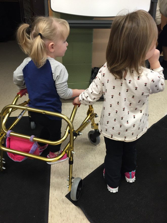 Madi and Jack headed over to the local Early Years Centre this morning for a play with their buddies. Madi’s new friend Evelyn and her baby brother joined them and Owen too! Evelyn and Madi have the same therapists and doctors at Grandview and Madison thought it was pretty cool that they live so close to one another and they both wear AFO’s. They played, had snacks and finished with circle time. Madison had lots of fun and Jack was super busy and all over the place like normal.