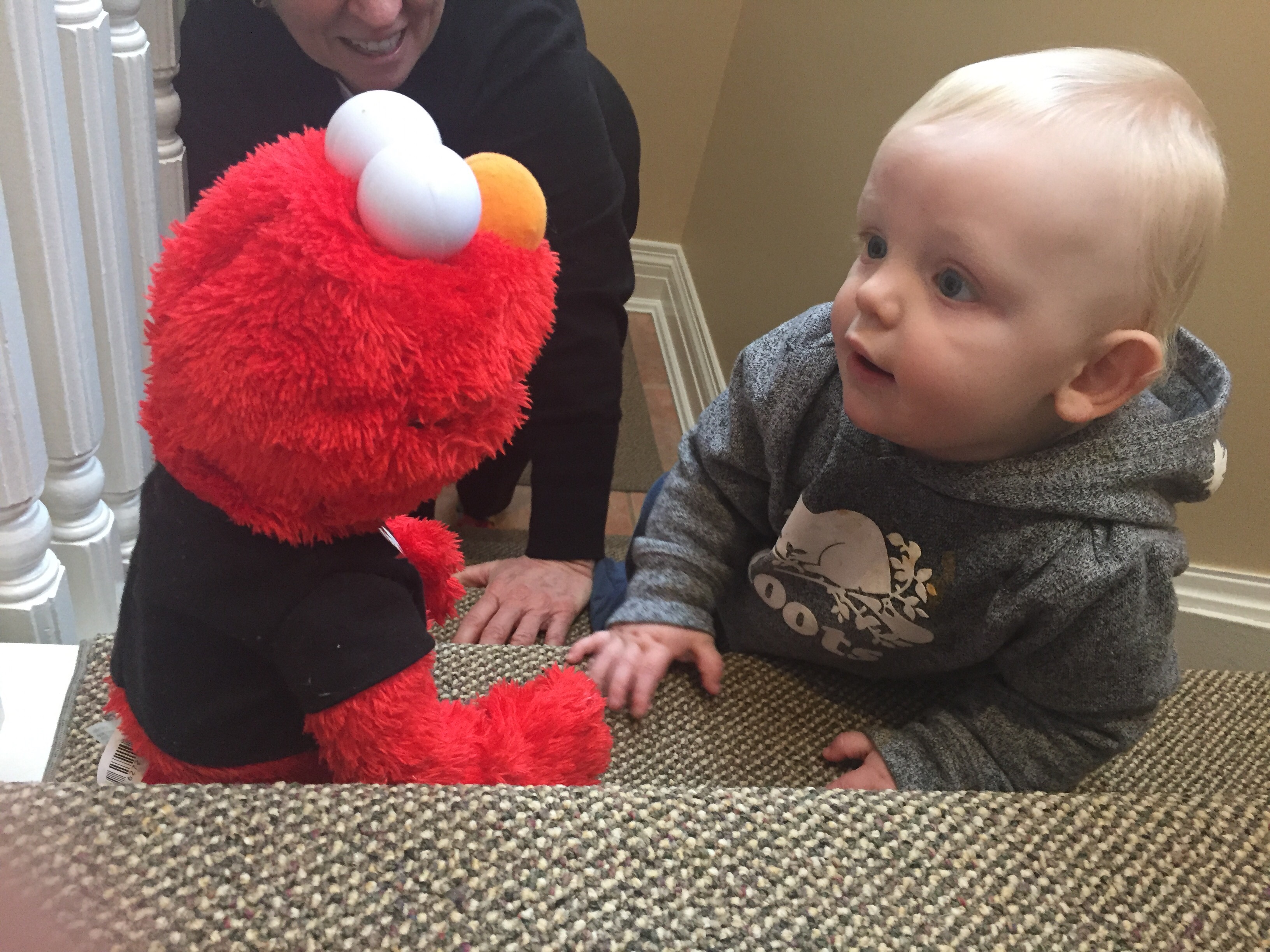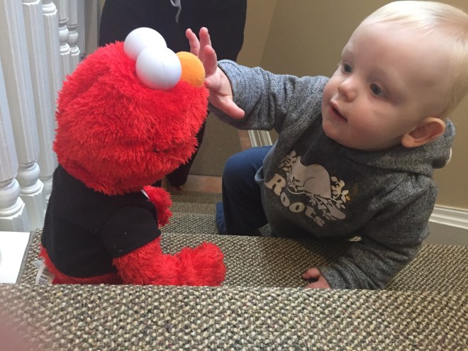 Madi has been practicing more and more walking around different places using walls and doors to help her stay upright instead of crawling. She was proud to show that to Nana & Papa tonight.