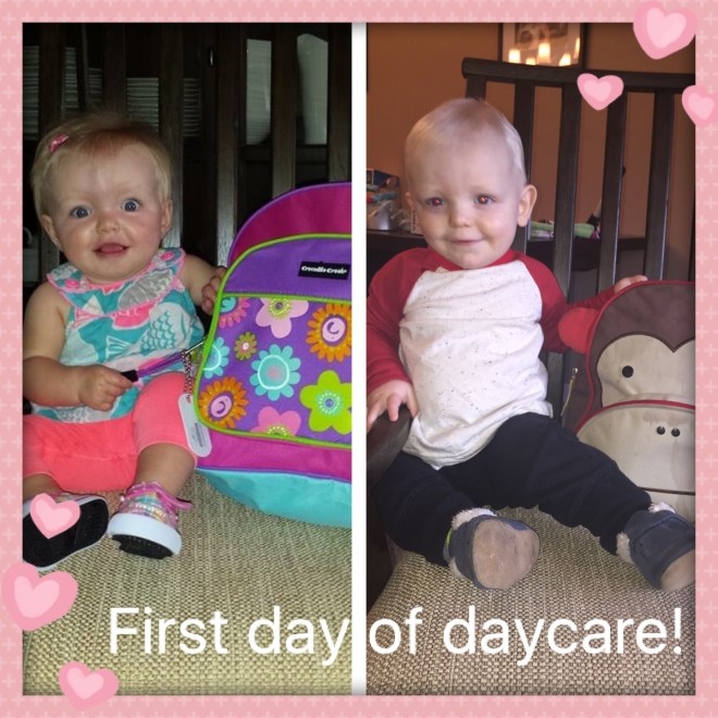 Madison was the same age as Jack when she started daycare…here is a pic of both their first days!