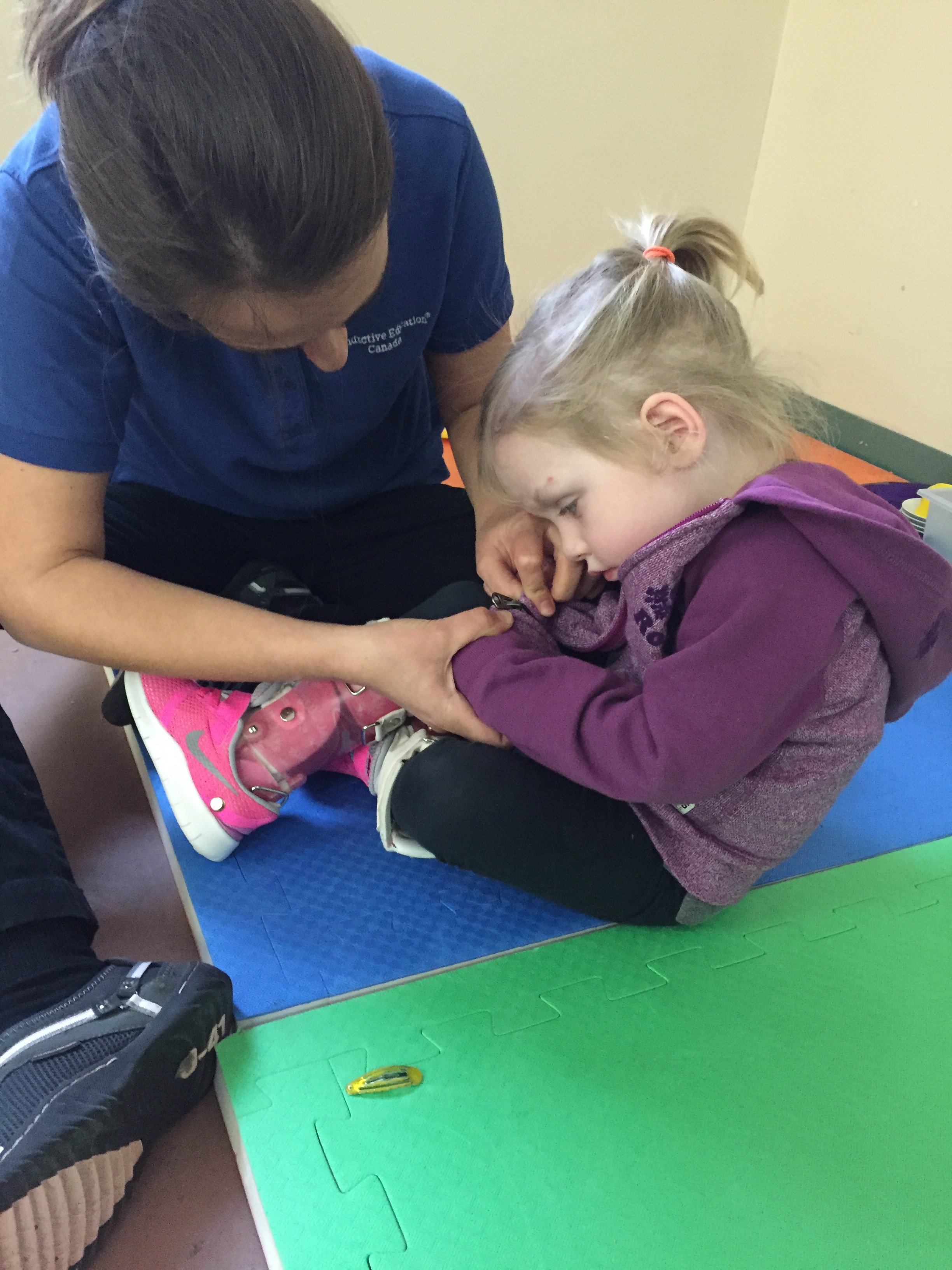 Madison had a great afternoon at March of Dimes. Her time there has now significantly increased in preparation for her upcoming surgery. She spent 3 hours there this afternoon for a total of 6 hours this week. One of her activities she did there today was sitting cross legged while practicing zipping up her sweater. She showed Mommy excellent walking at pick up time.
