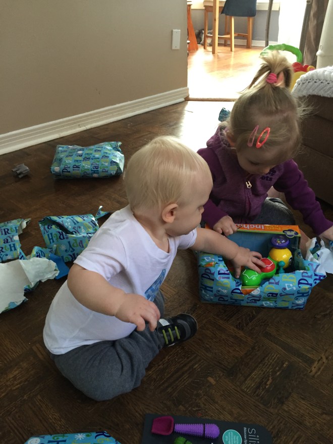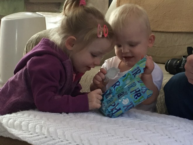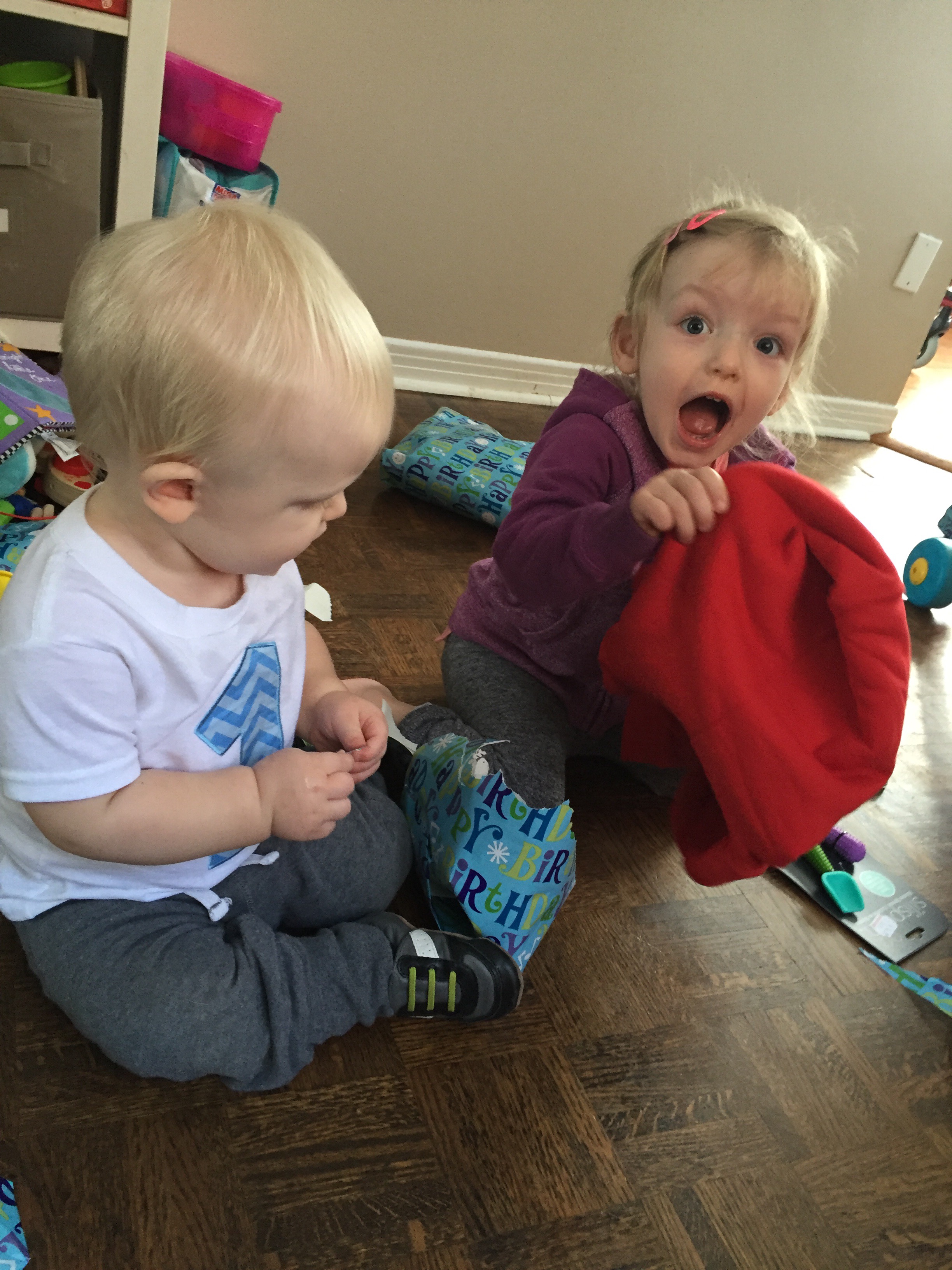 Madison wanted to help Jack open his presents as soon as they got home. She helped him rip off the paper and cheered him on.