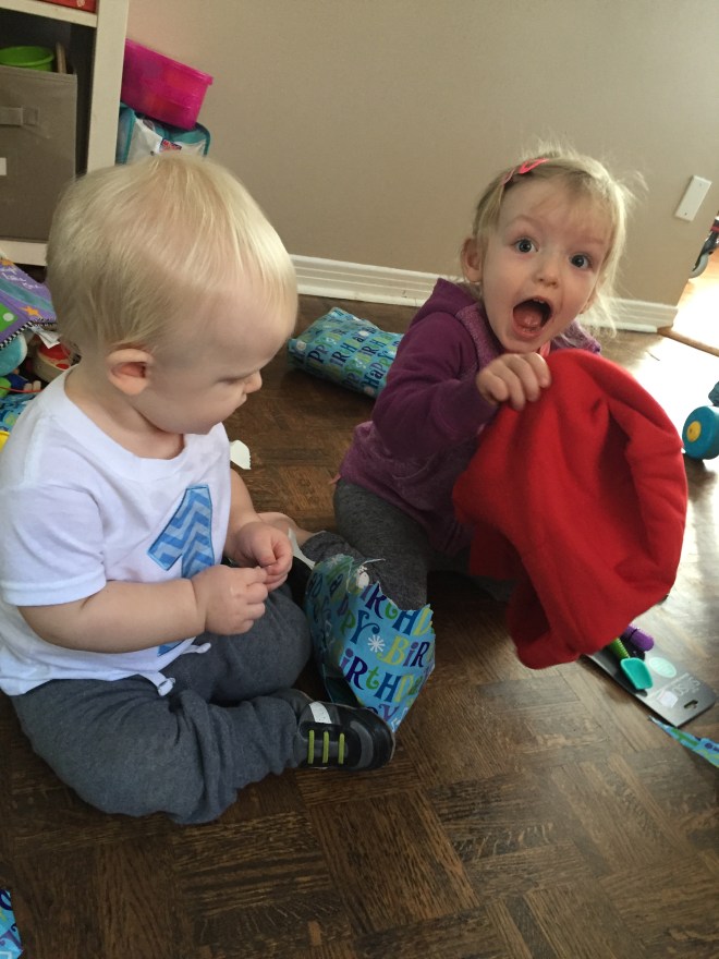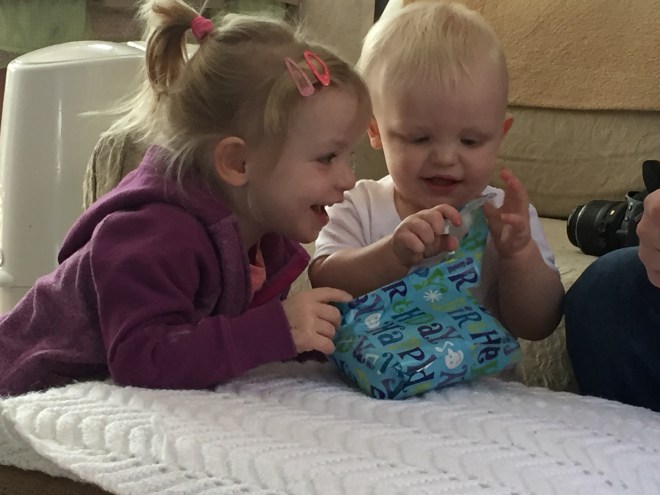 She insisted on waking him up to sing happy birthday. She pushed open his door and yelled “Birthday boy wake up” and then started to sing – Jack smiled and laughed and thought his sister was so funny.