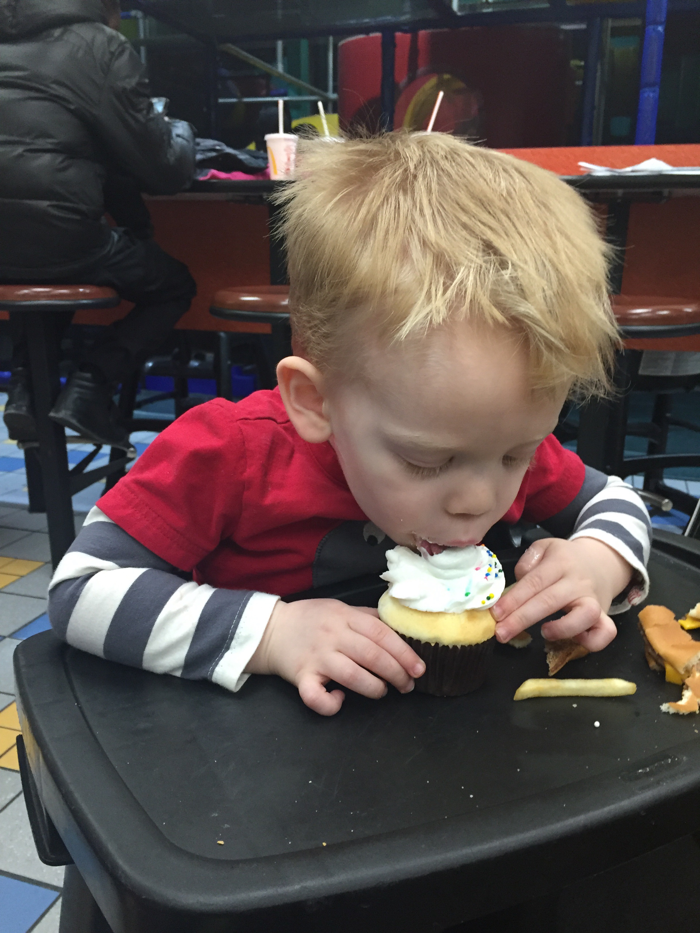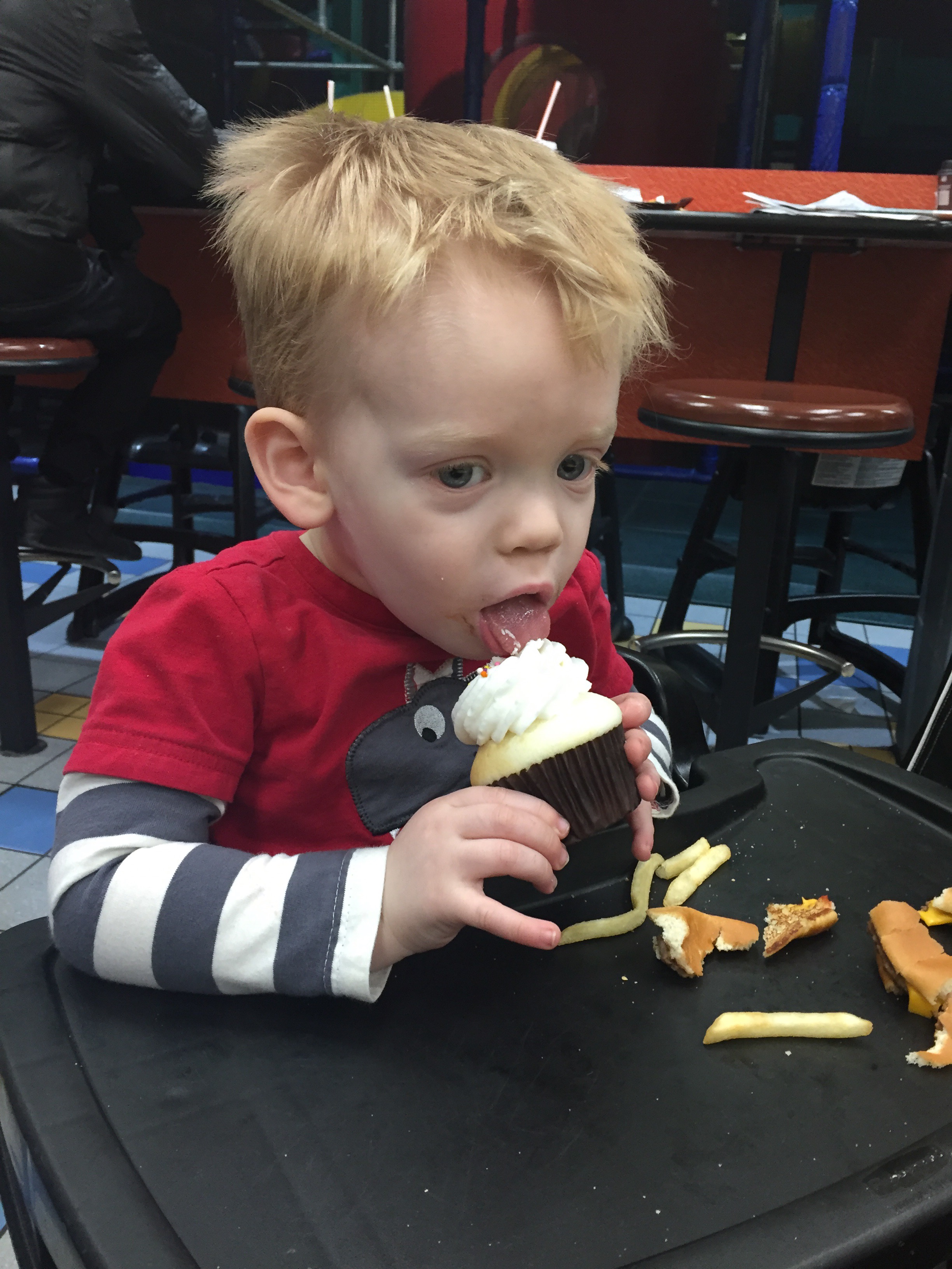 Madi and Jack met up with Nate for a play, dinner and some yummy birthday cupcakes! Mommy was super happy to see that Madison could access part of the play place all by herself!