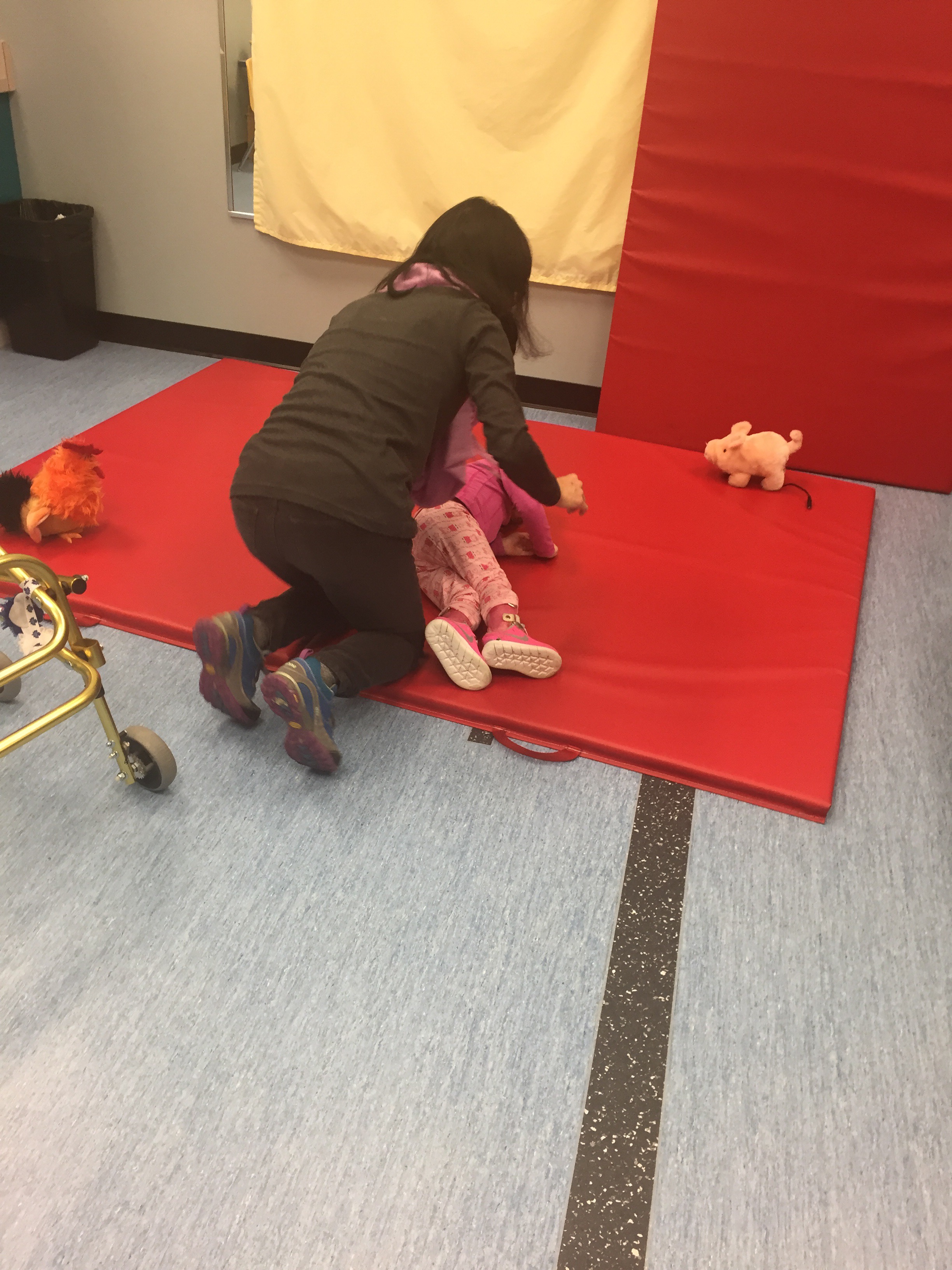 Jack and Mommy picked up Madi from school and then headed to speech! Madi learned new floor exercises to help open up her rib cage and lungs for deep breathing and projection of voice. We already see a difference in her volume and tone.