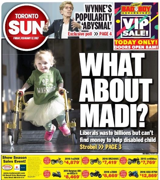 Madison had another big day in the news…front page of The Toronto Sun! Thanks Mike and Stan!