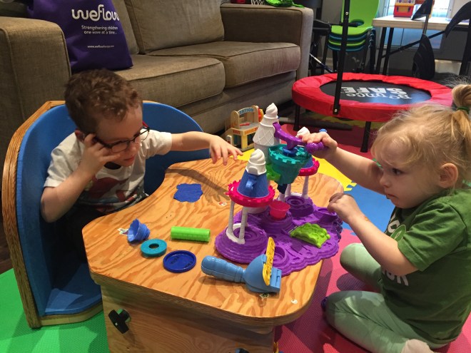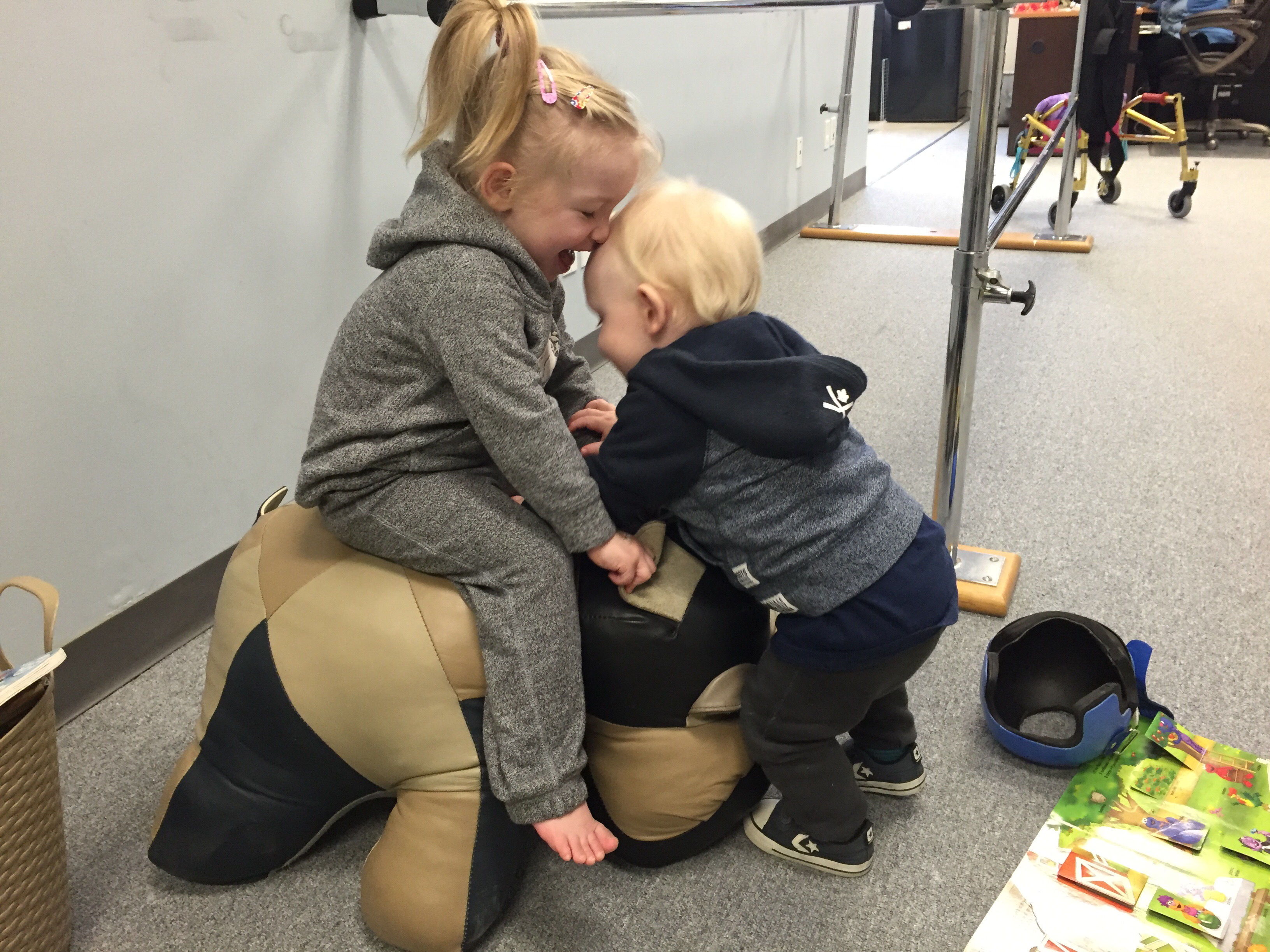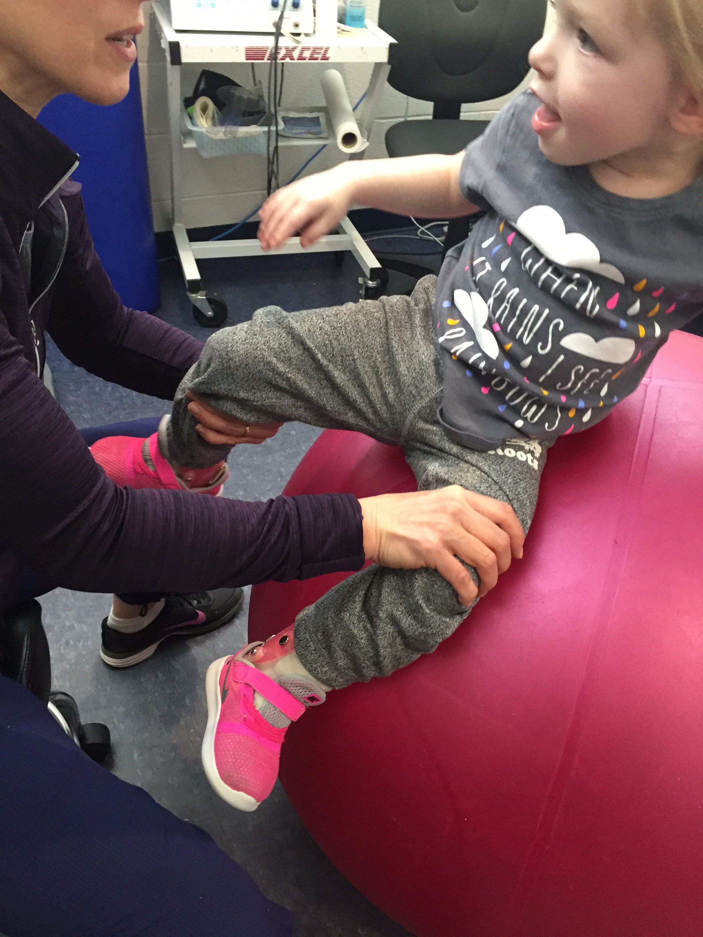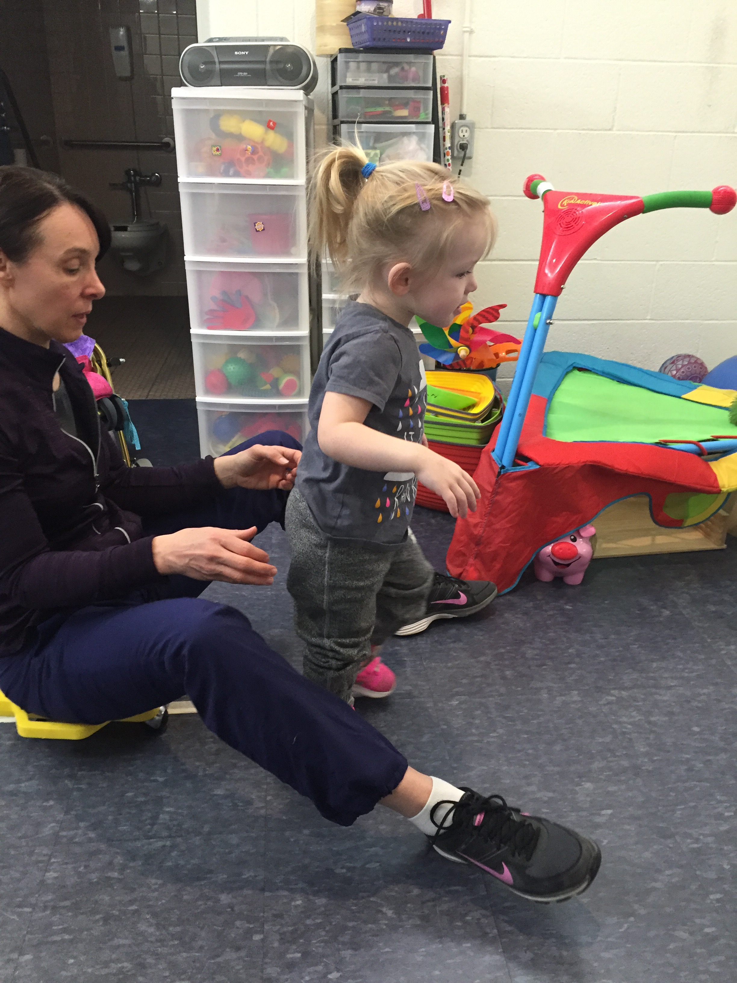 Stephanie and Madison had an excellent session together today. They used every free minute to work on something specifically aligned with Madison’s goals. They practiced peddling on her bike on different inclines and flat surfaces and did lots of walking/transitions etc. in the kids gym and the snoozelin room. So much good work done in the hour- awesome to see!