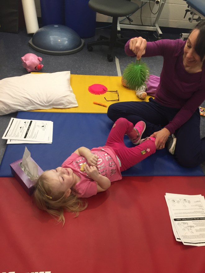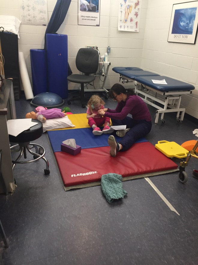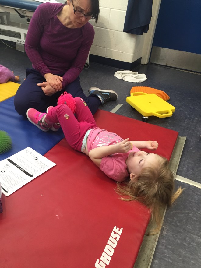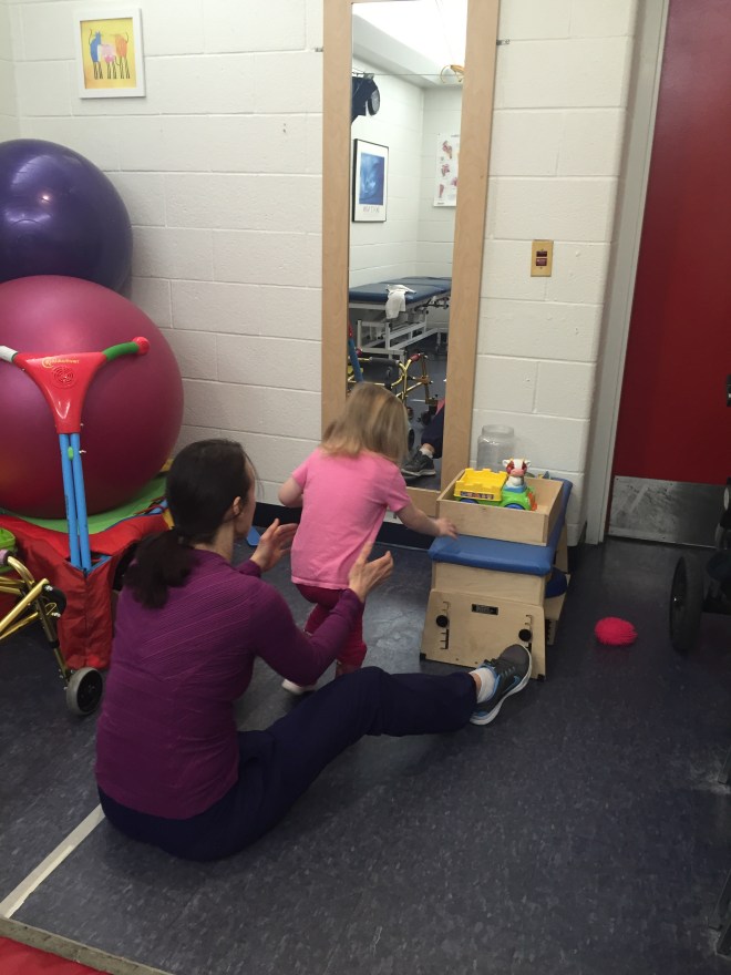 Stephanie and Madi did lots of stretching and strengthening activities together today from her pre-op exercise booklet.