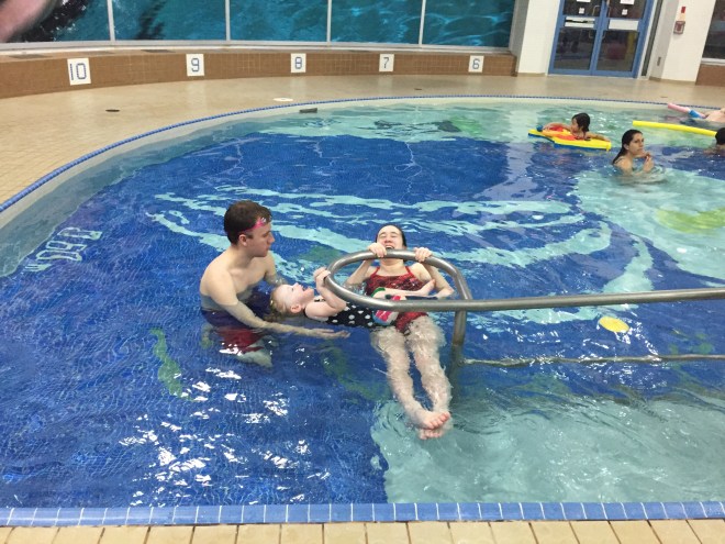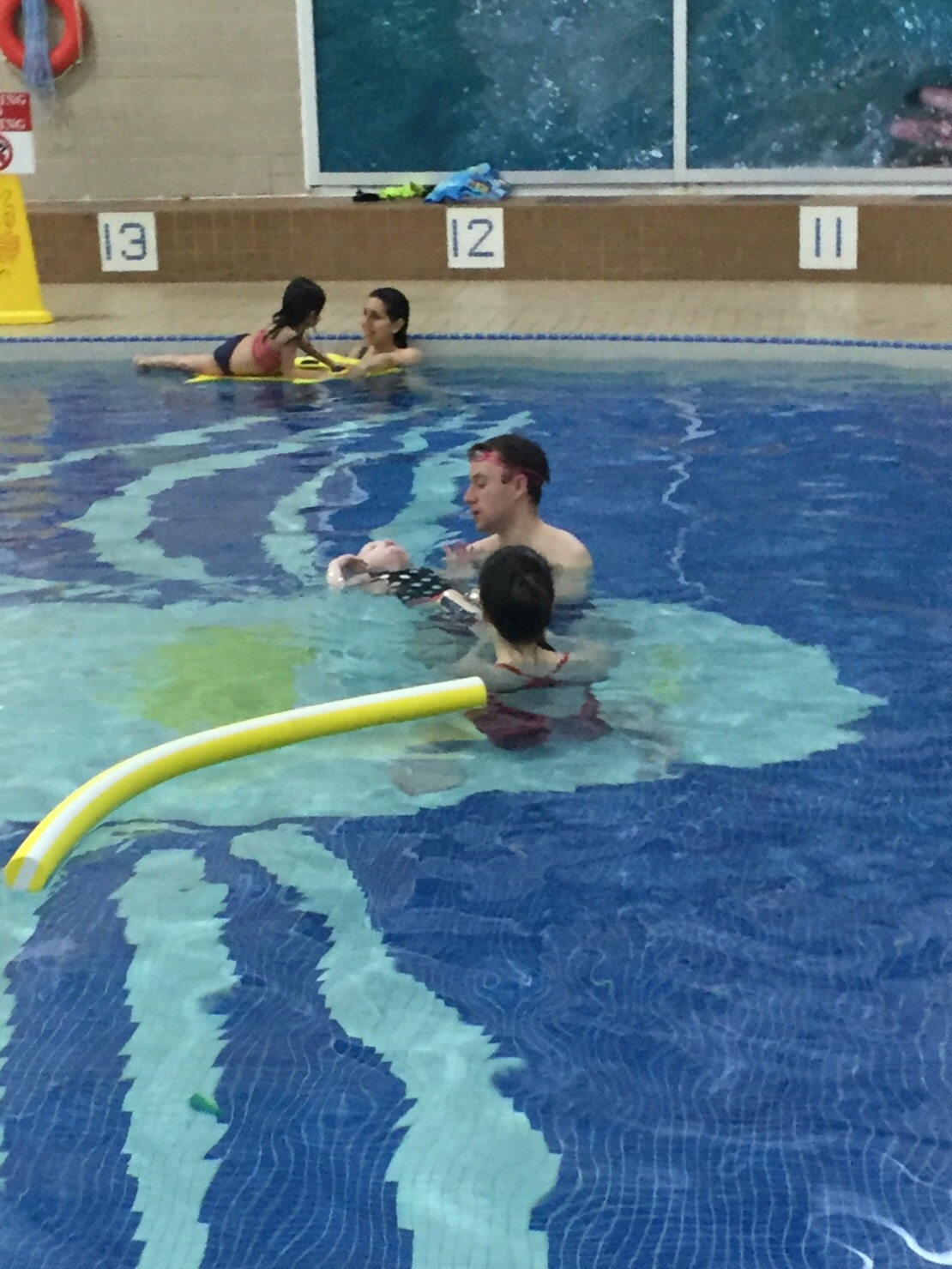 Madi finished her day at the pool with Ryan & Jess. Madi tried to float on top of Jess and Jack tried to throw himself into the pool several times.