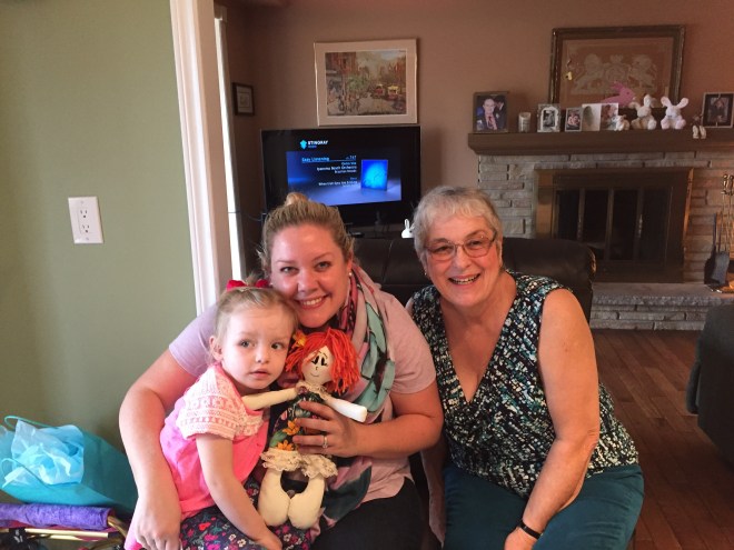 After school, Madi & Jack went home for lunch and then picked up Pam for a special afternoon outing. Pams friends at the Ajax/Pickering Gamma Gamma Master sorority invited Madison over for some nibbles and tea. They wished her good luck with her upcoming surgery and presented her with a cheque for some fun activities to keep her busy in St Louis after her therapy sessions. They also had an Easter basket for her and Jack full of treats and one of the sorority members made Madi a home made doll. We are so grateful for all the support surrounding Madison’s upcoming journey to St Louis. Thank you!!