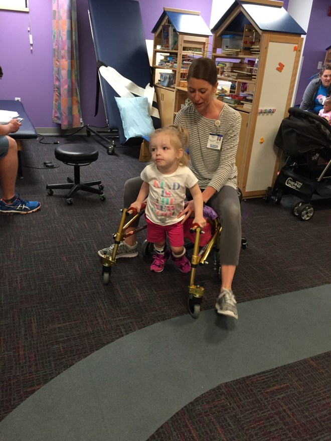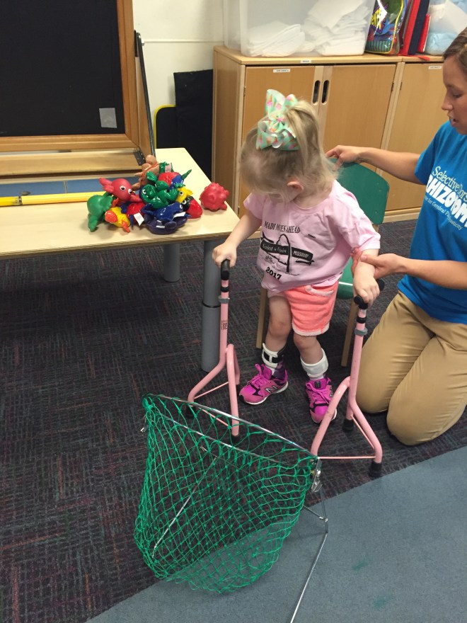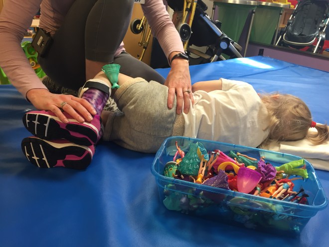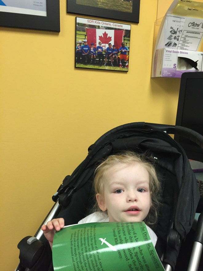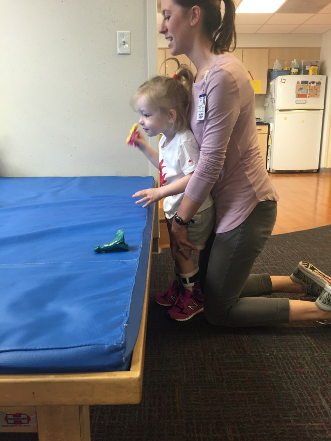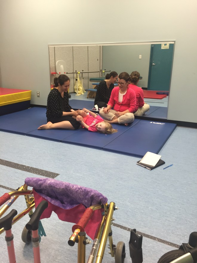 We will try this system for the month of June and then see how she does and if this works for her and what she needs to be doing to progress. Her therapies that are lined up for the month of June are: swimming, horseback riding, massage, conductive education, ABM and Physio.