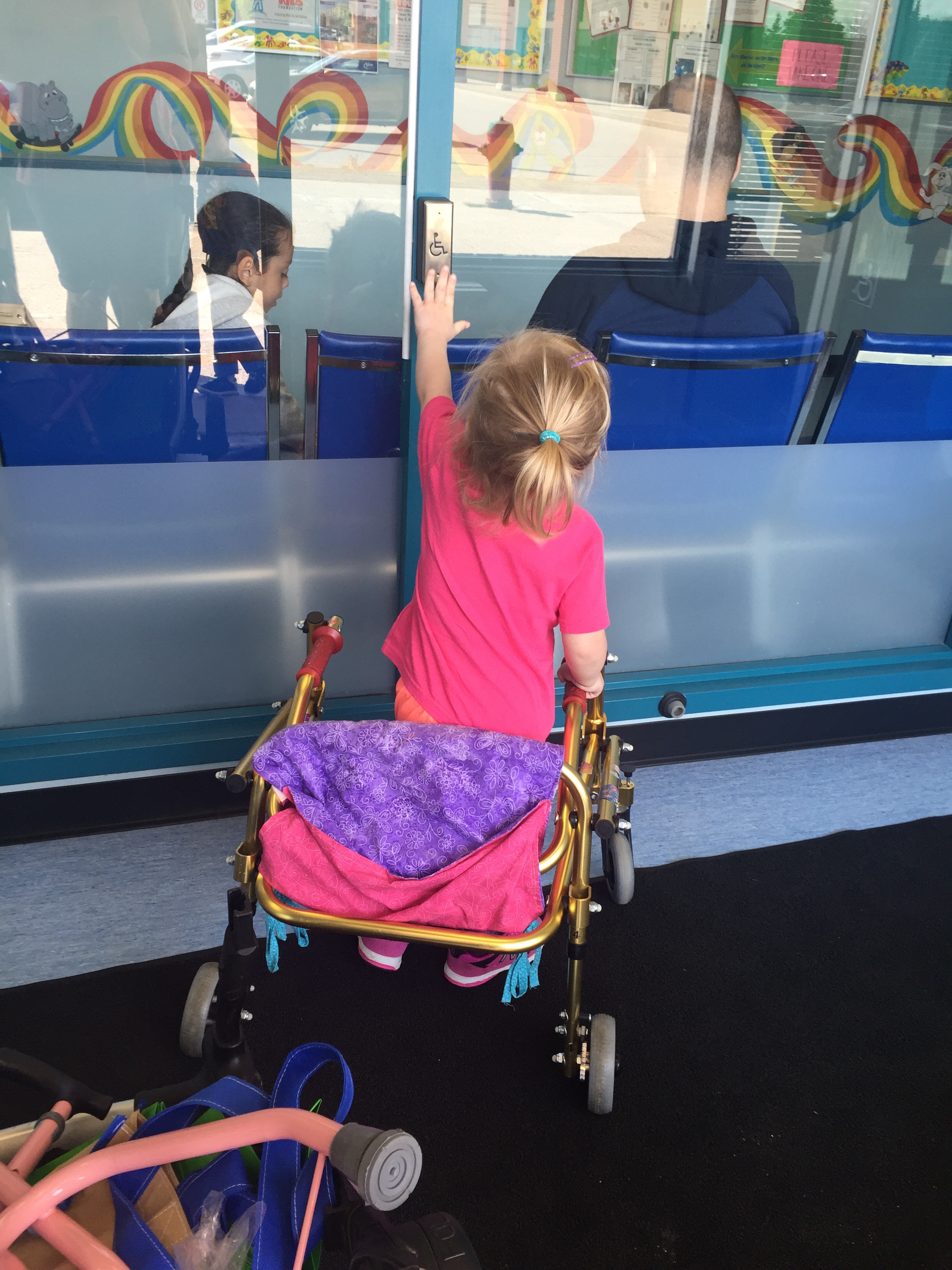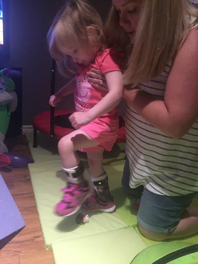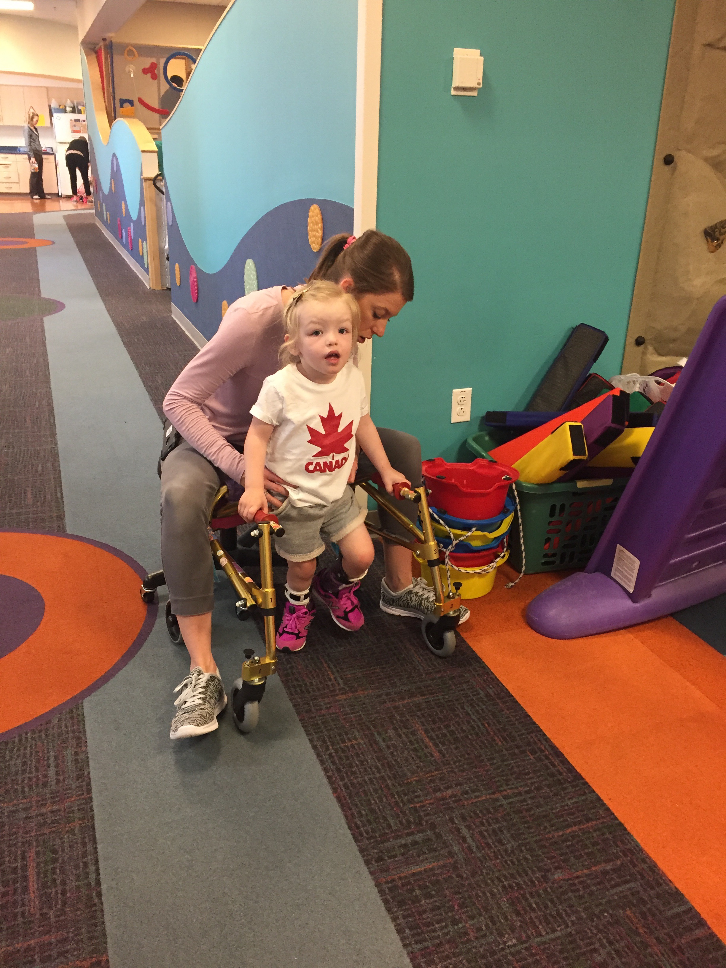 We will try this system for the month of June and then see how she does and if this works for her and what she needs to be doing to progress. Her therapies that are lined up for the month of June are: swimming, horseback riding, massage, conductive education, ABM and Physio.