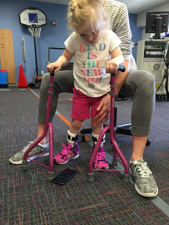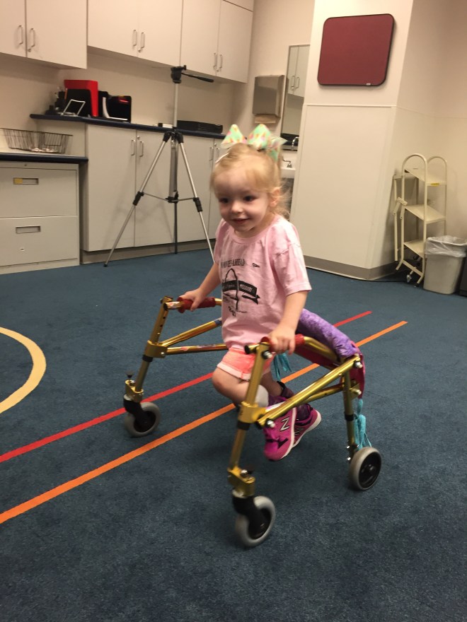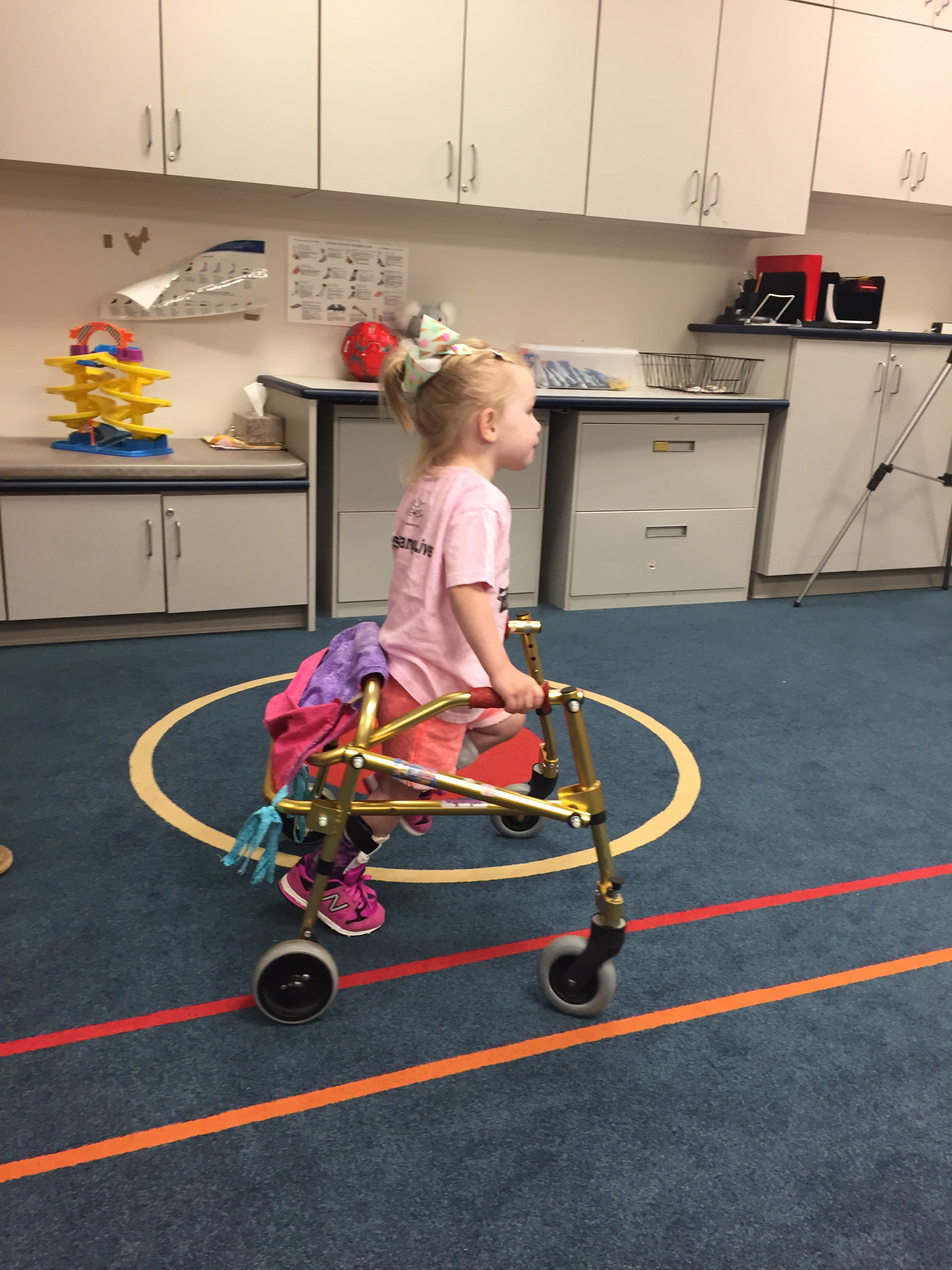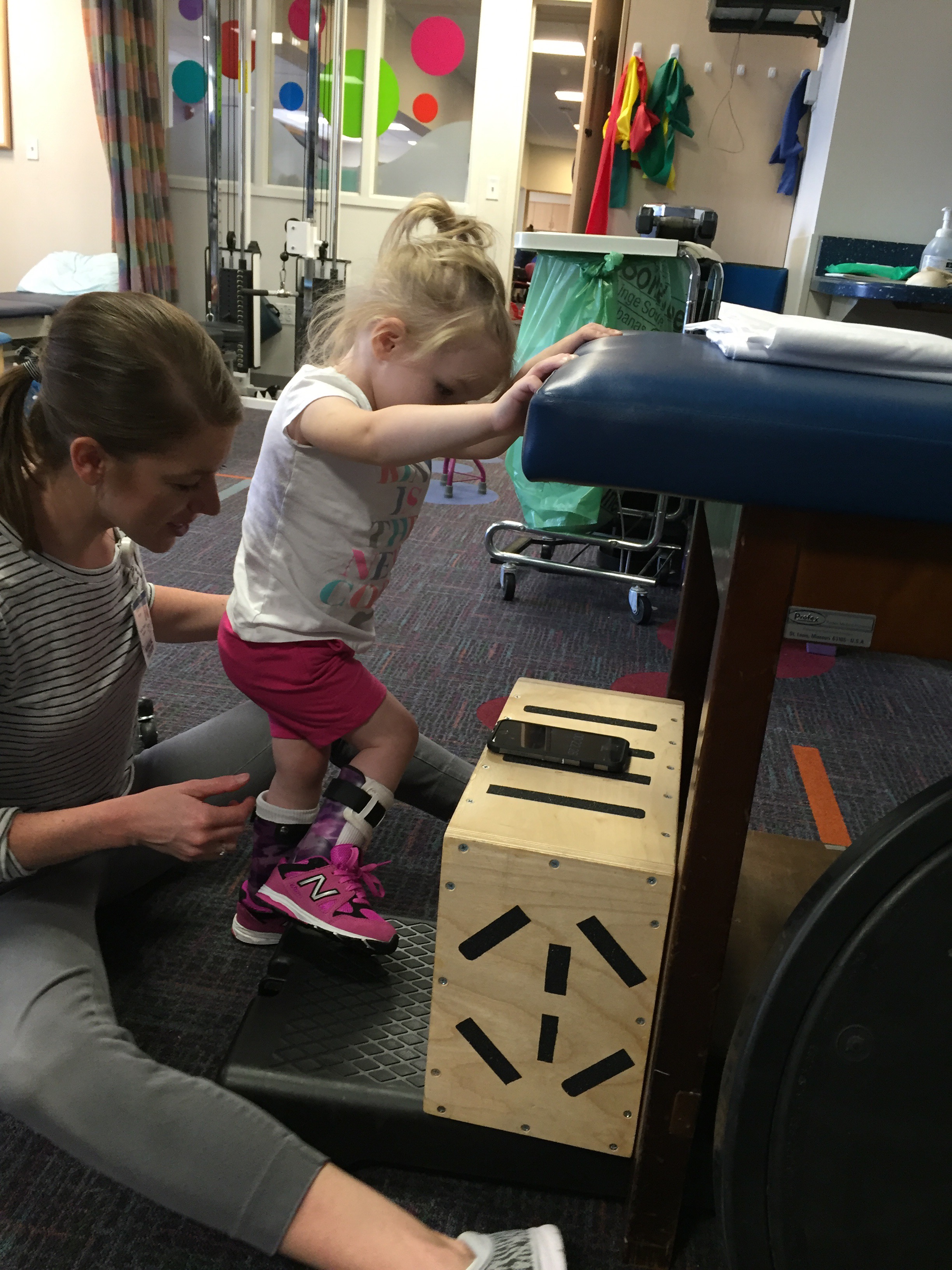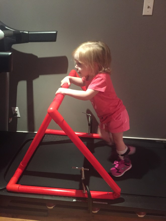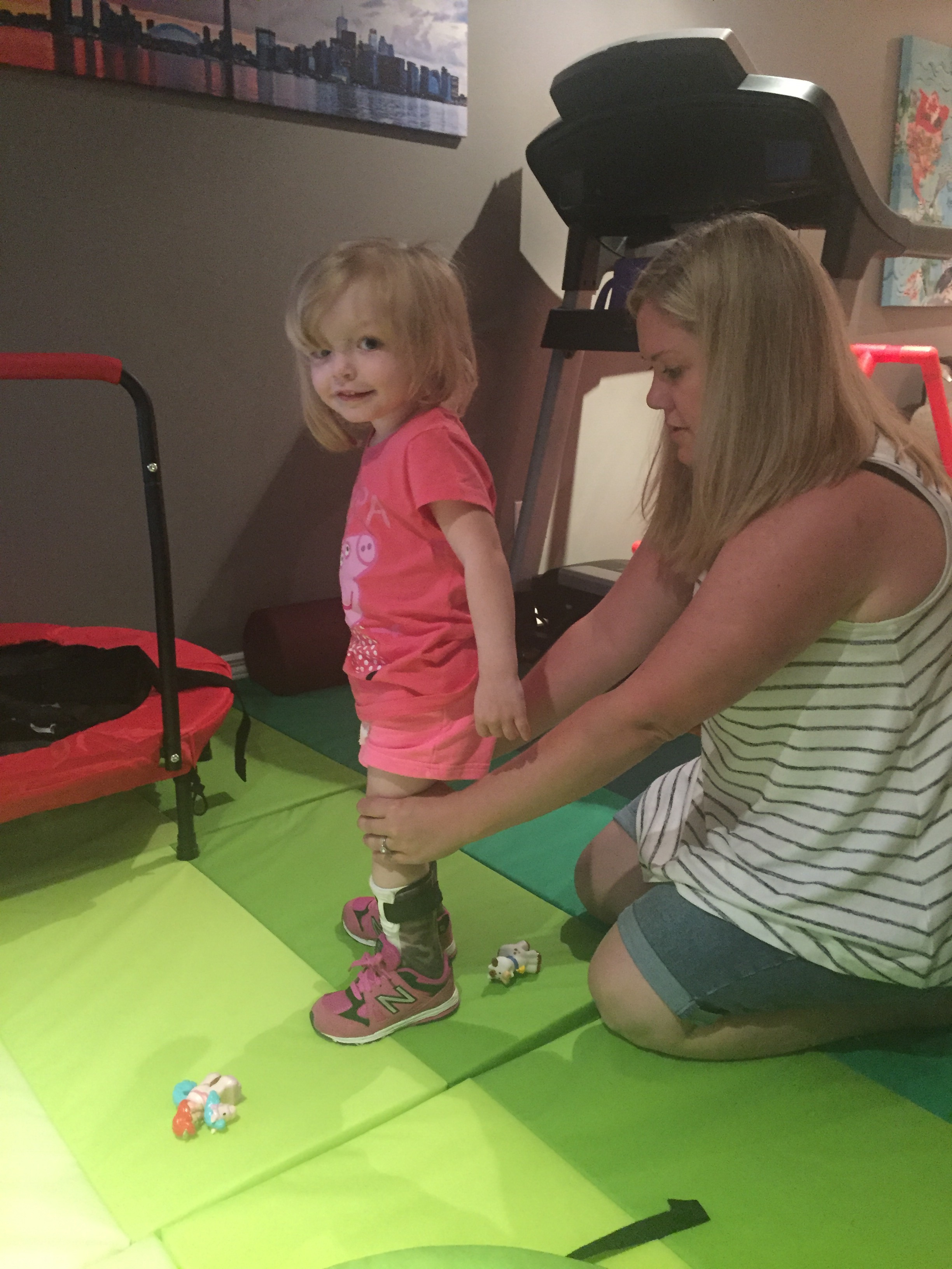 Here is her stretching guide to help facilitate her daily stretches. She will also use her treadmill 5 days per week to practice walking forwards, sideways, backwards and eventually on an incline. If she walks for more then 10 minutes she can put a sticker on her board. Once she collects 10 stickers she can pick a new app for her iPad that we use to distract her when walking or stretching.