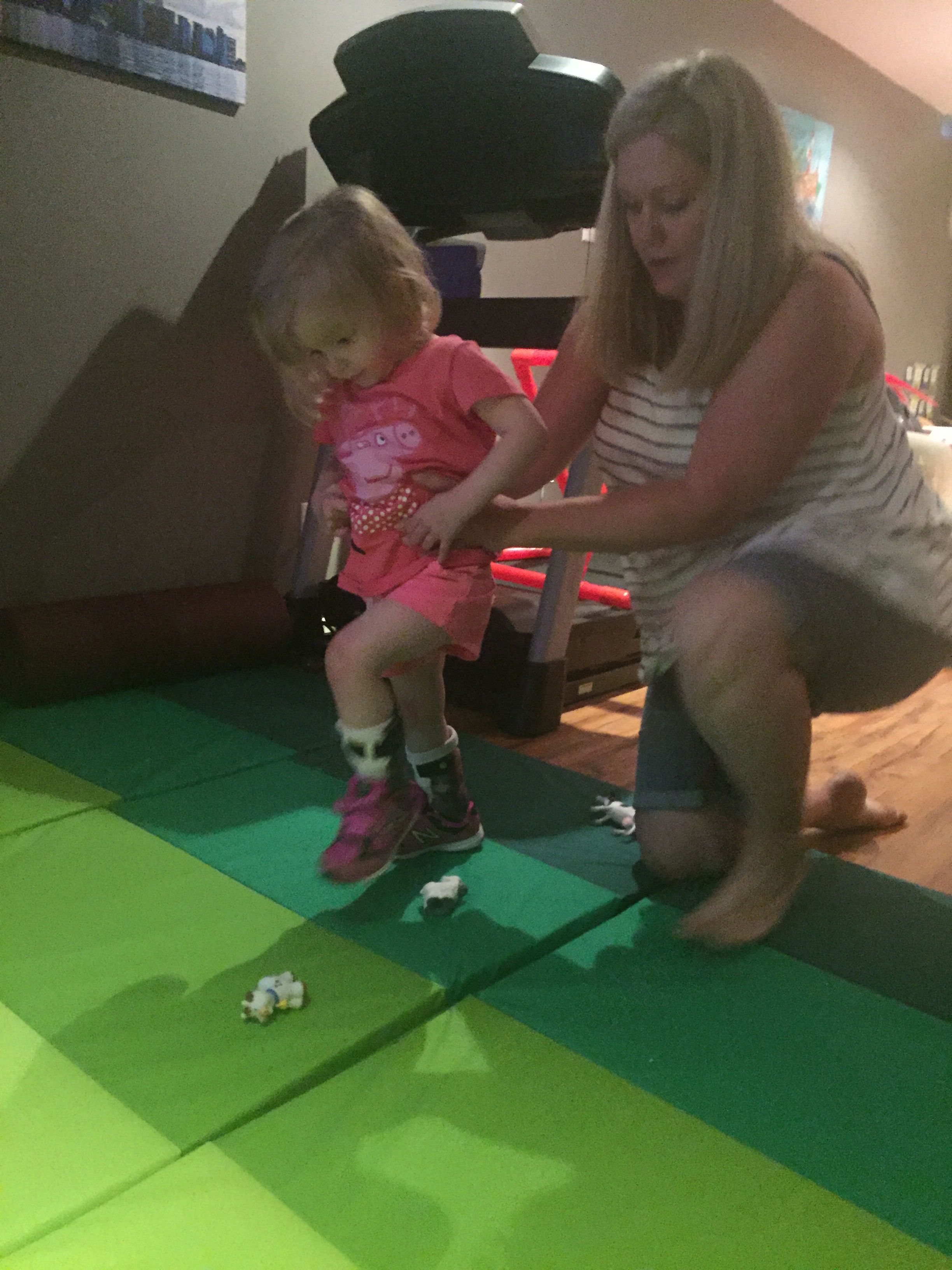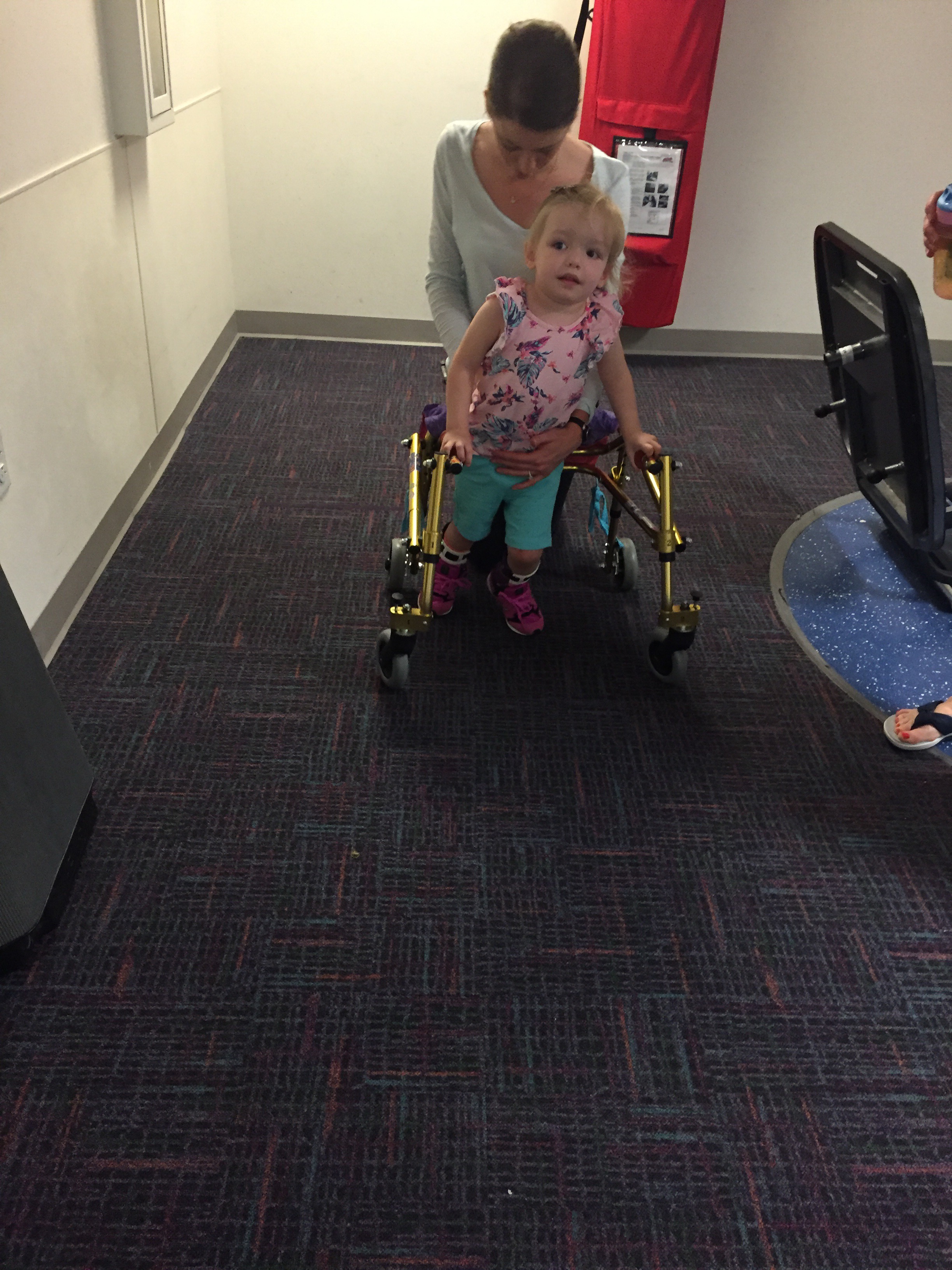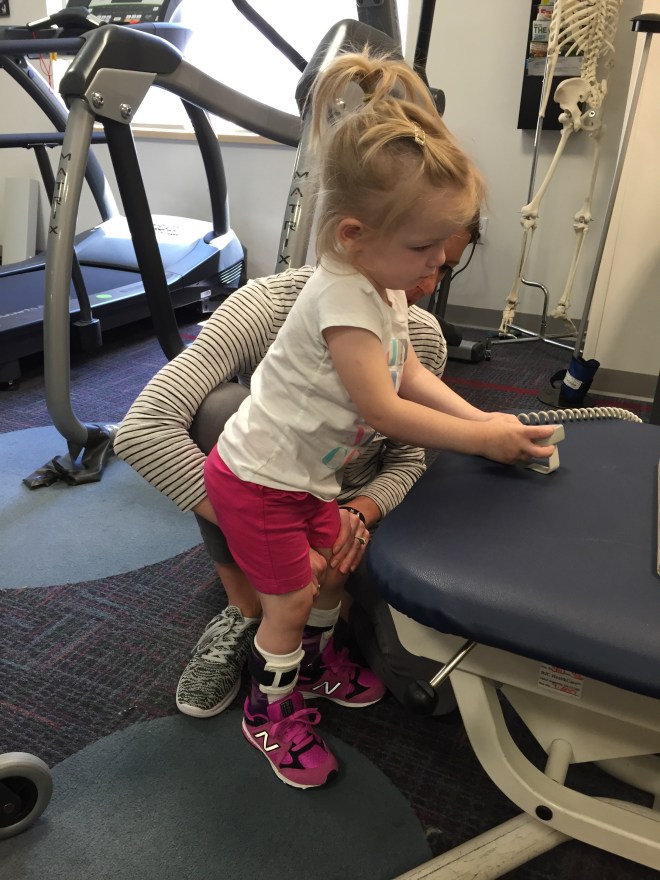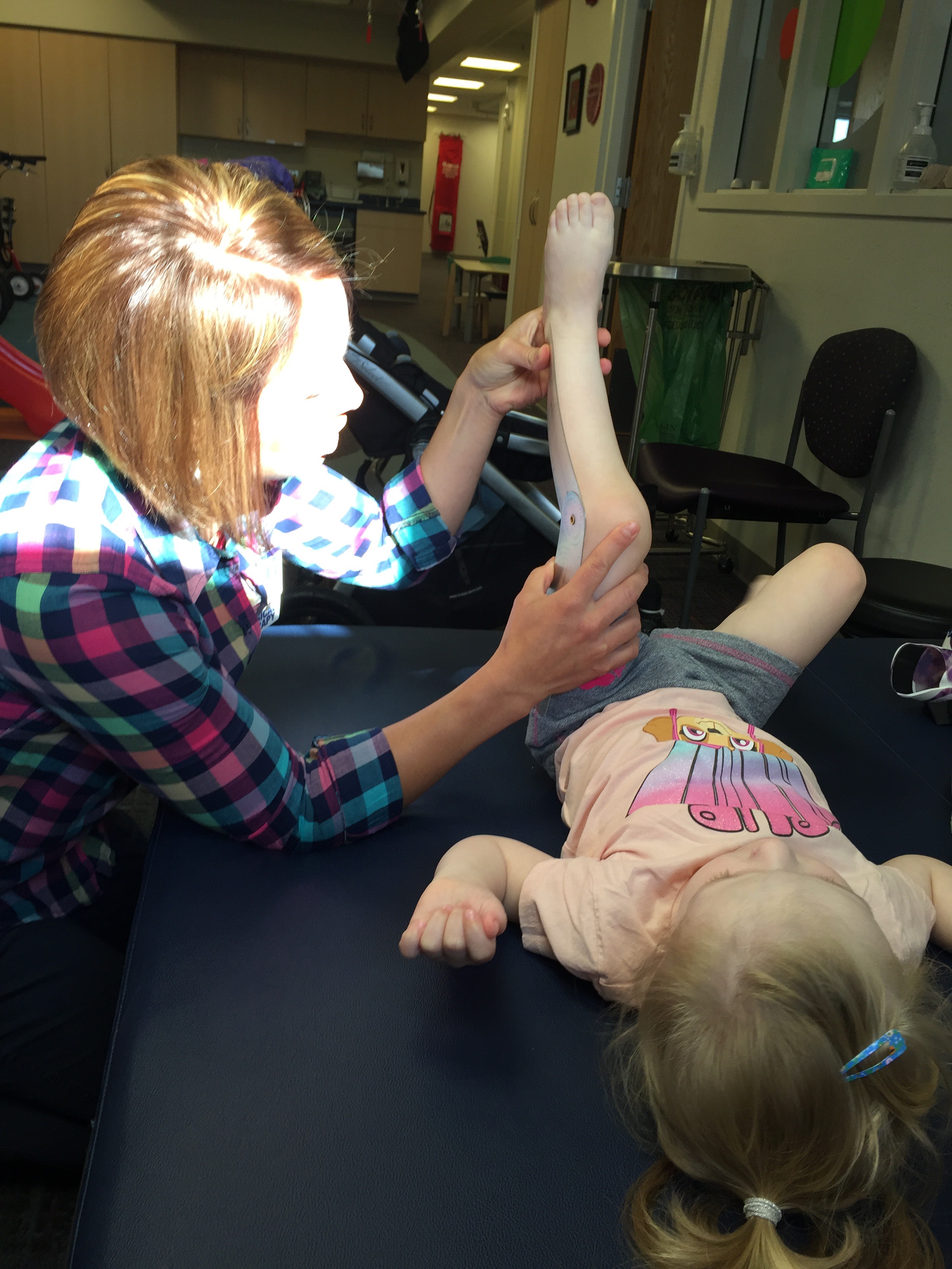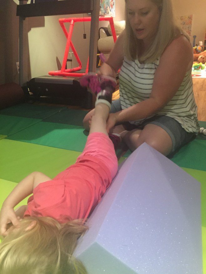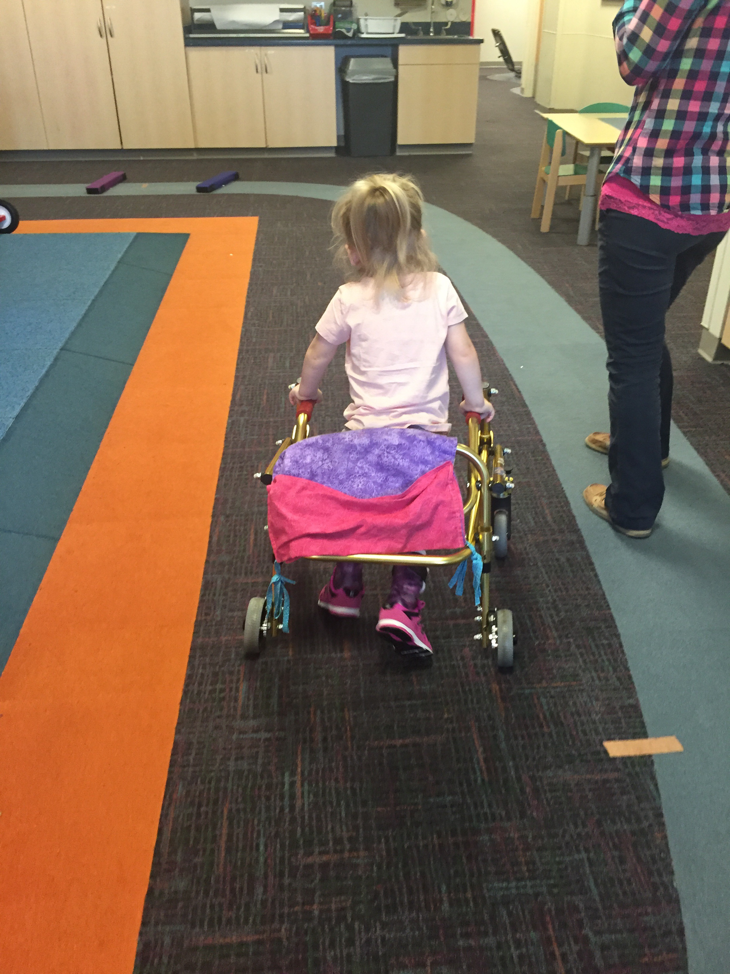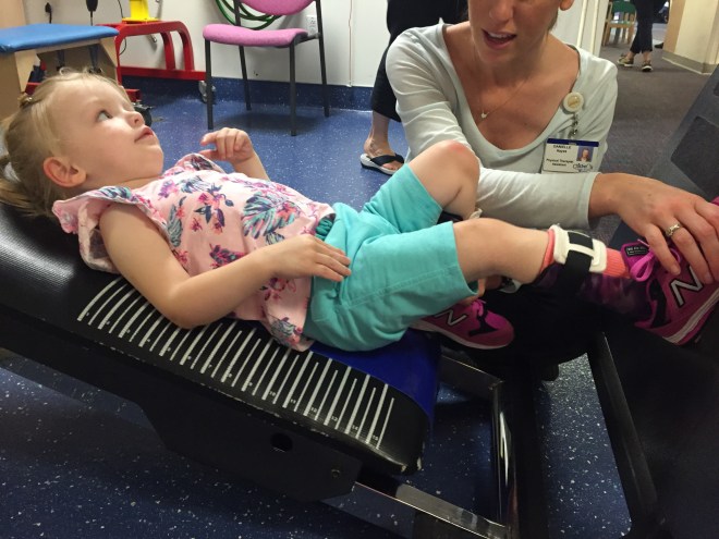 Here is her stretching guide to help facilitate her daily stretches. She will also use her treadmill 5 days per week to practice walking forwards, sideways, backwards and eventually on an incline. If she walks for more then 10 minutes she can put a sticker on her board. Once she collects 10 stickers she can pick a new app for her iPad that we use to distract her when walking or stretching.