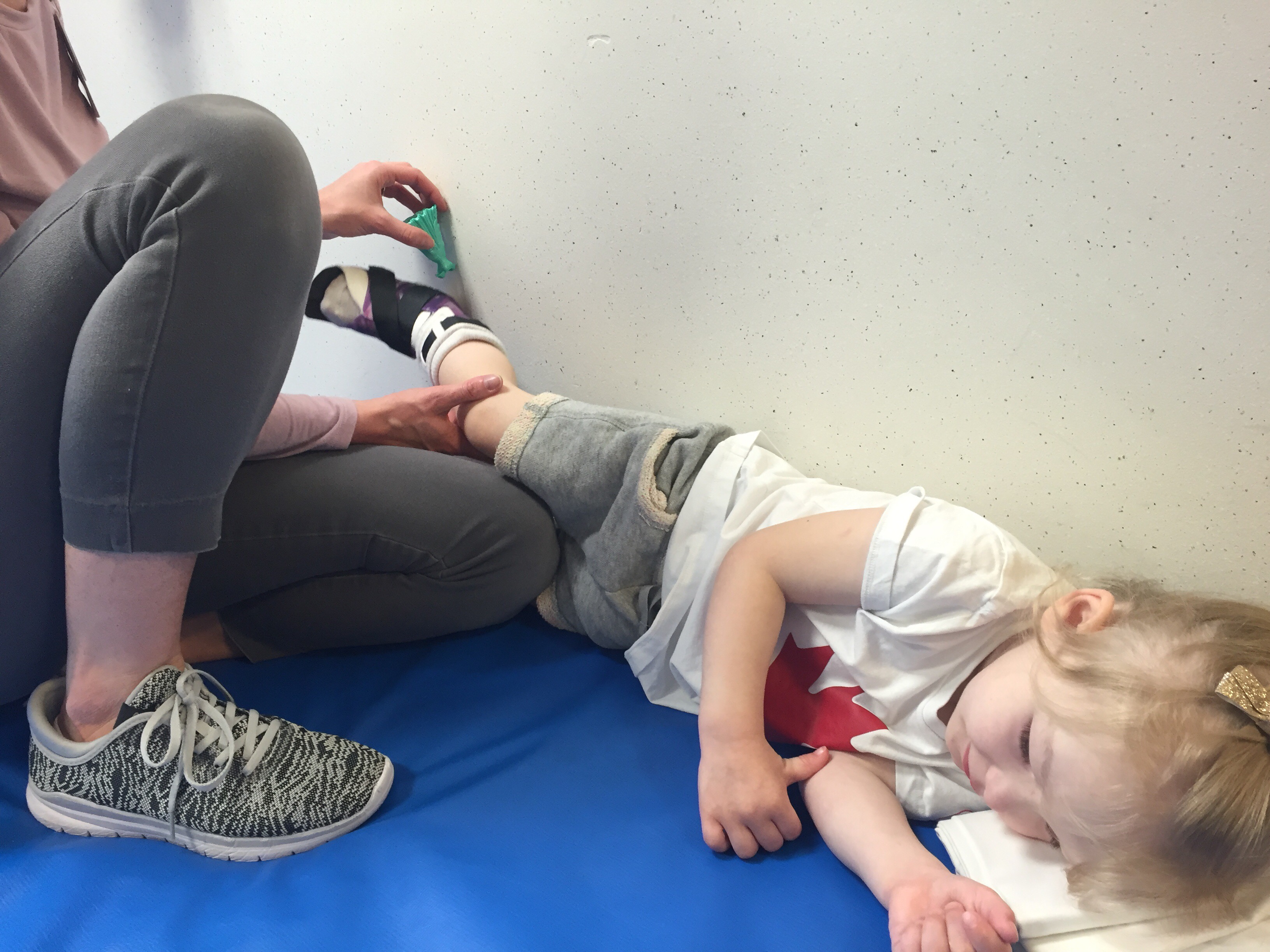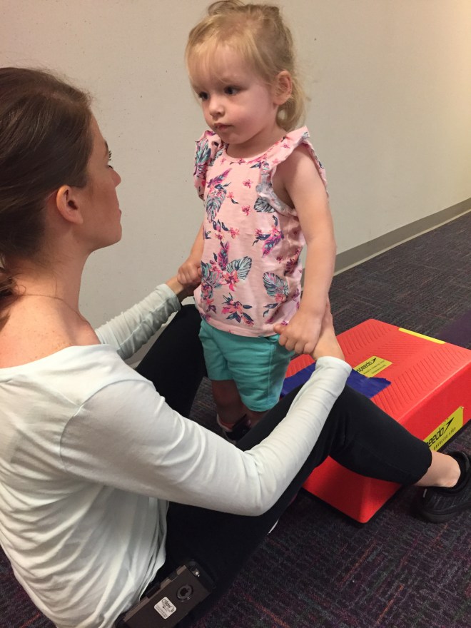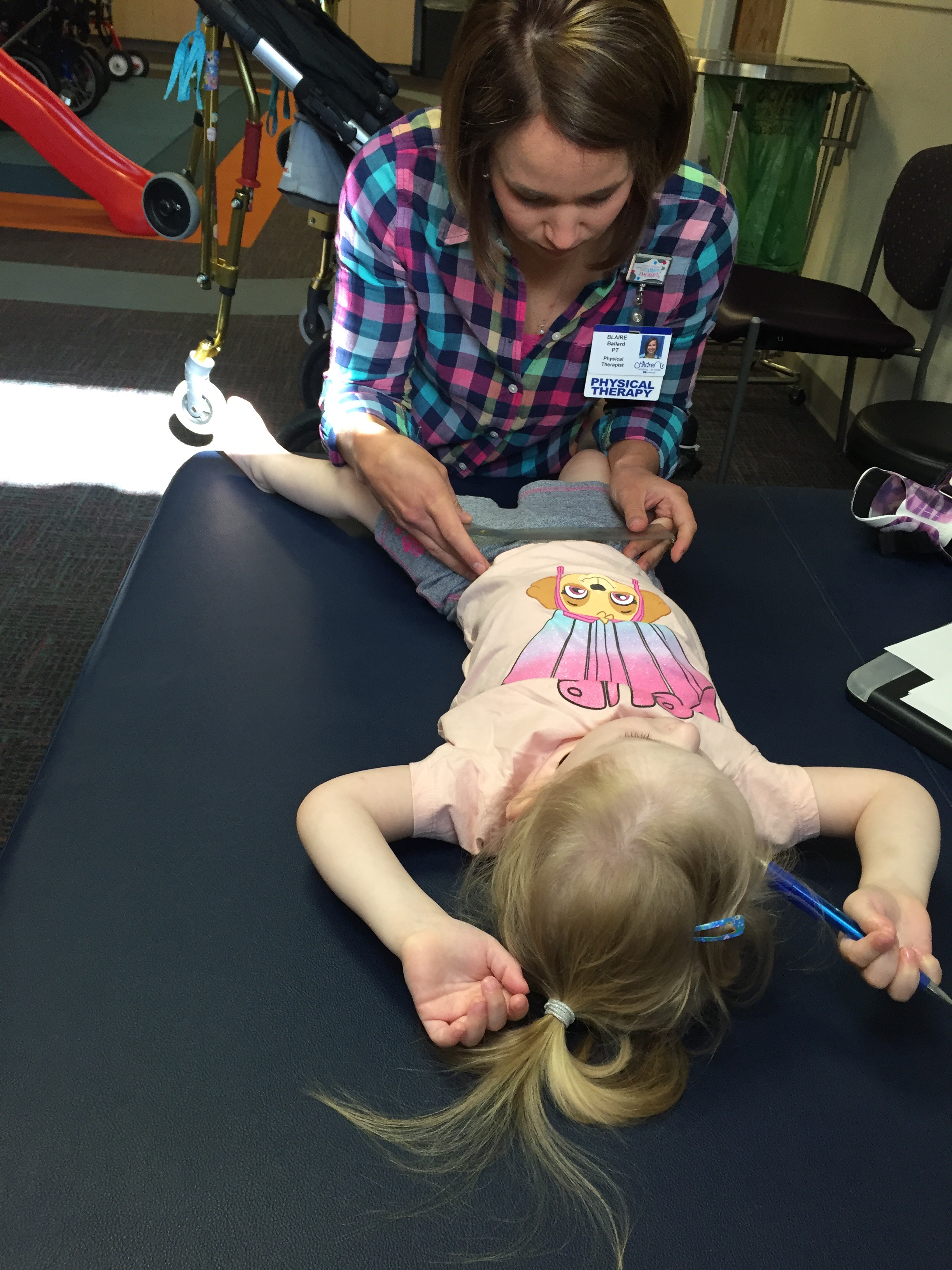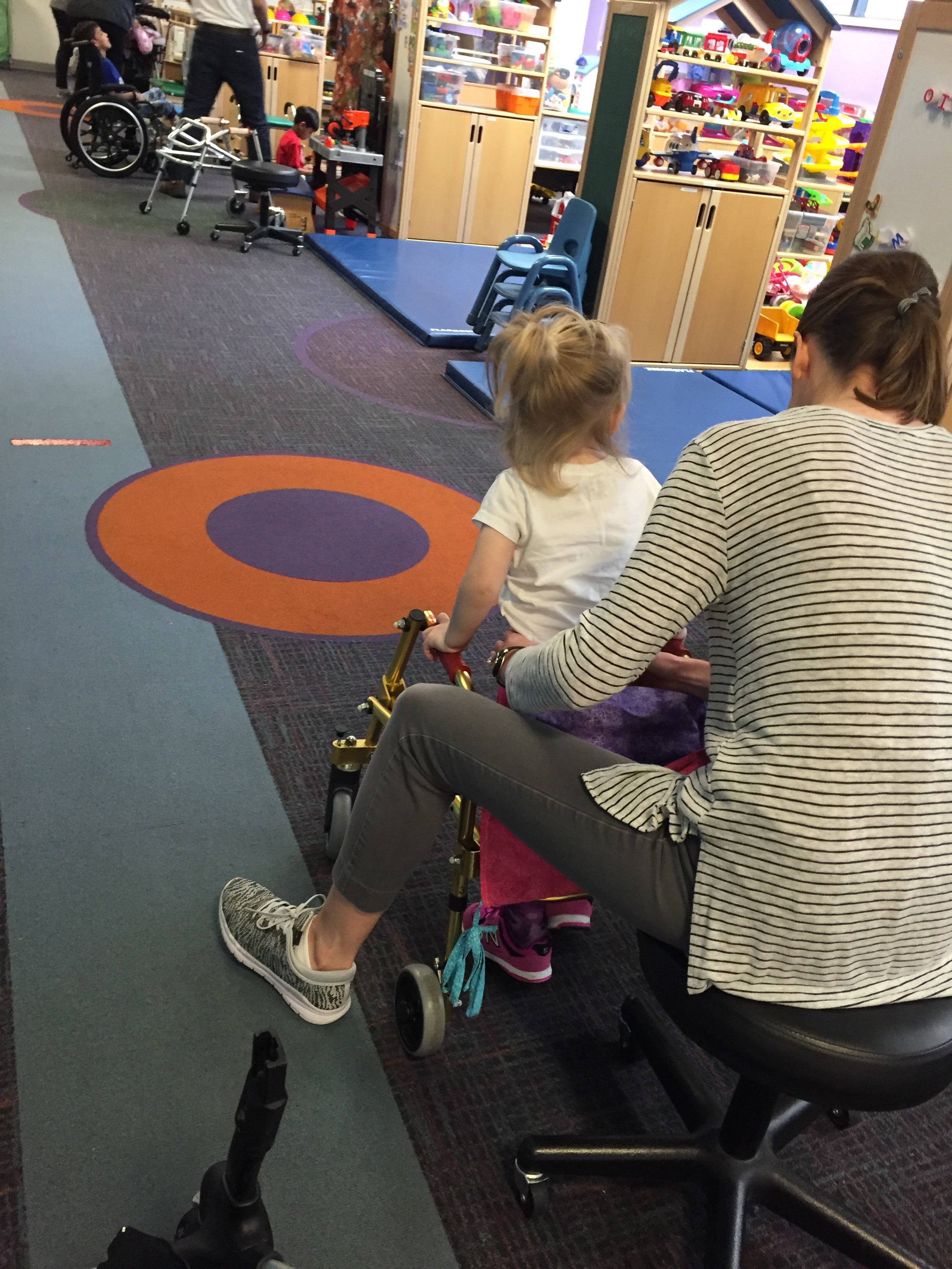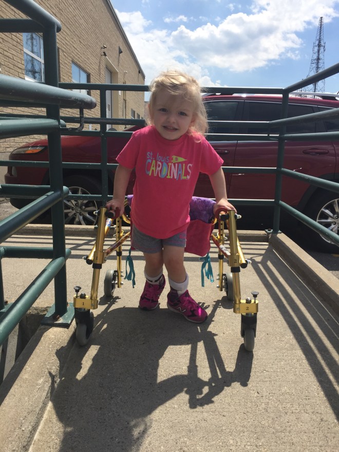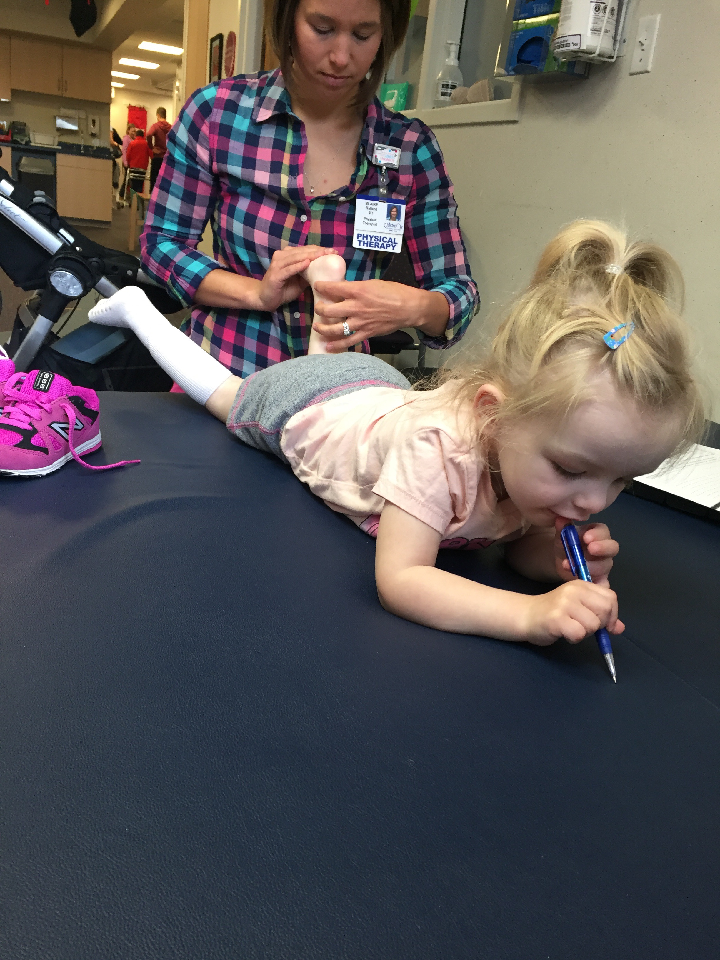 Here is her stretching guide to help facilitate her daily stretches. She will also use her treadmill 5 days per week to practice walking forwards, sideways, backwards and eventually on an incline. If she walks for more then 10 minutes she can put a sticker on her board. Once she collects 10 stickers she can pick a new app for her iPad that we use to distract her when walking or stretching.