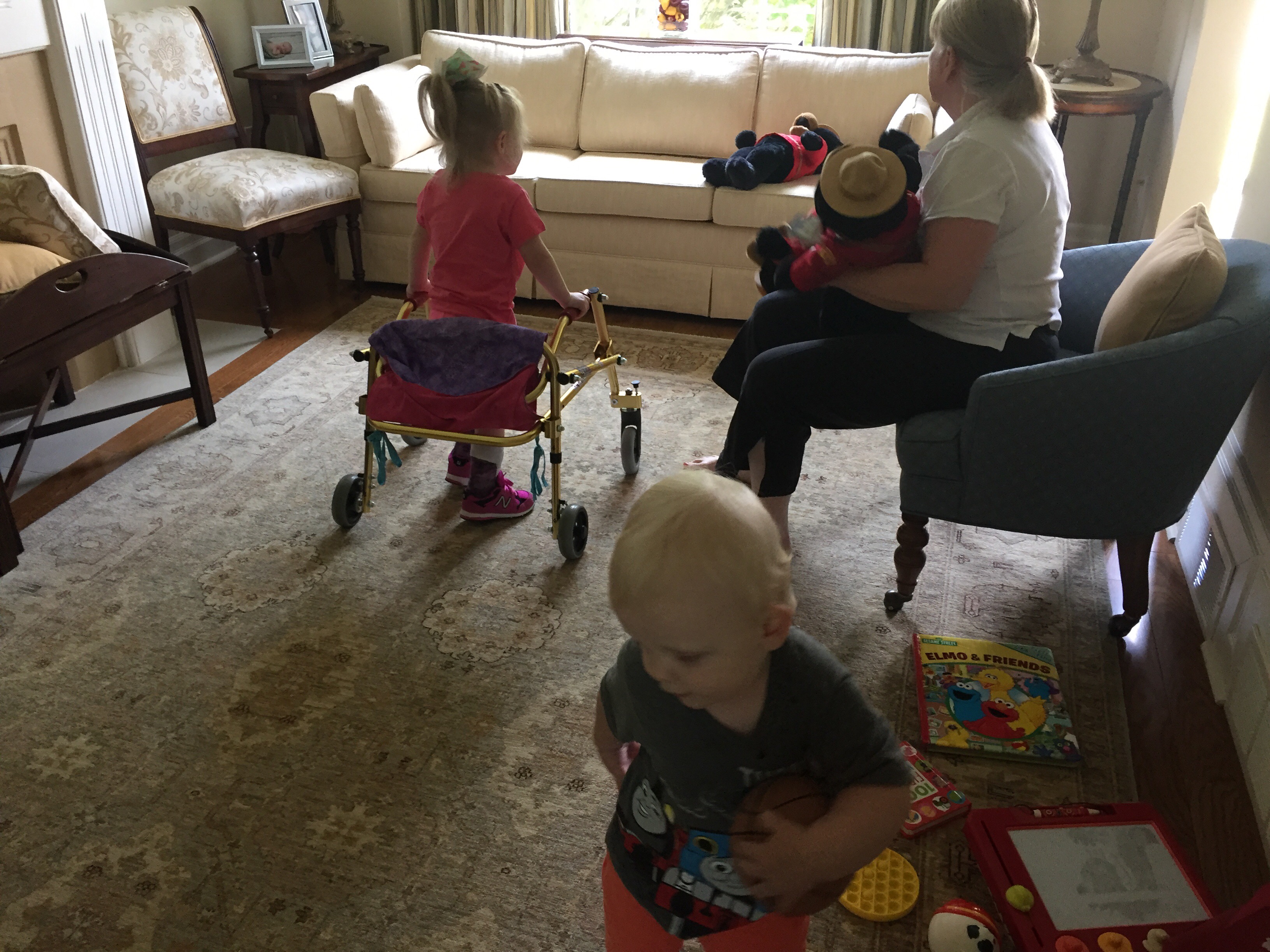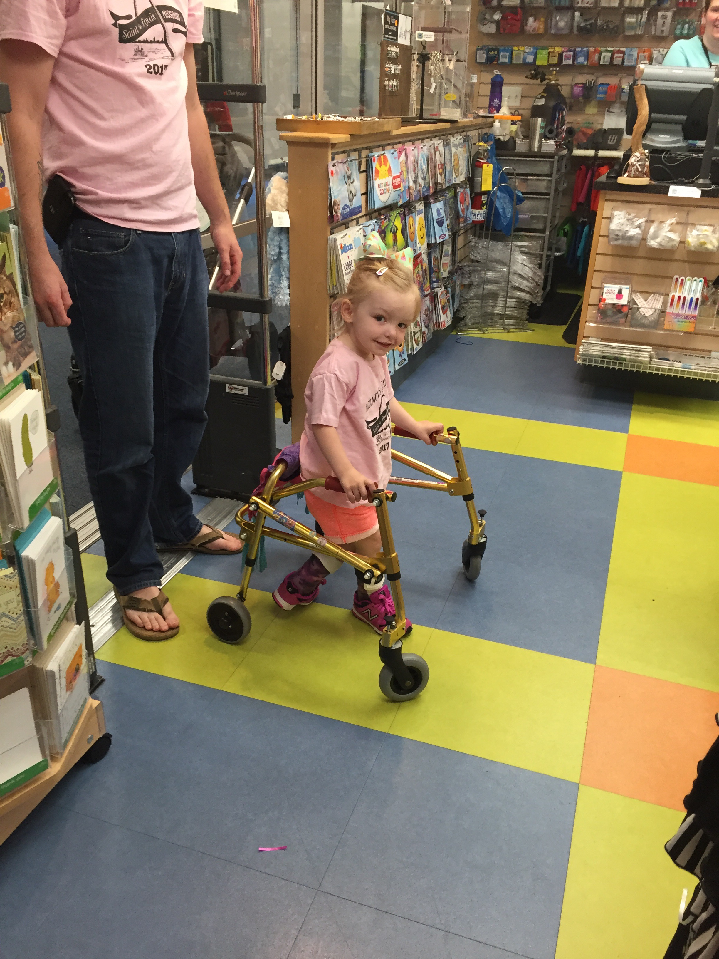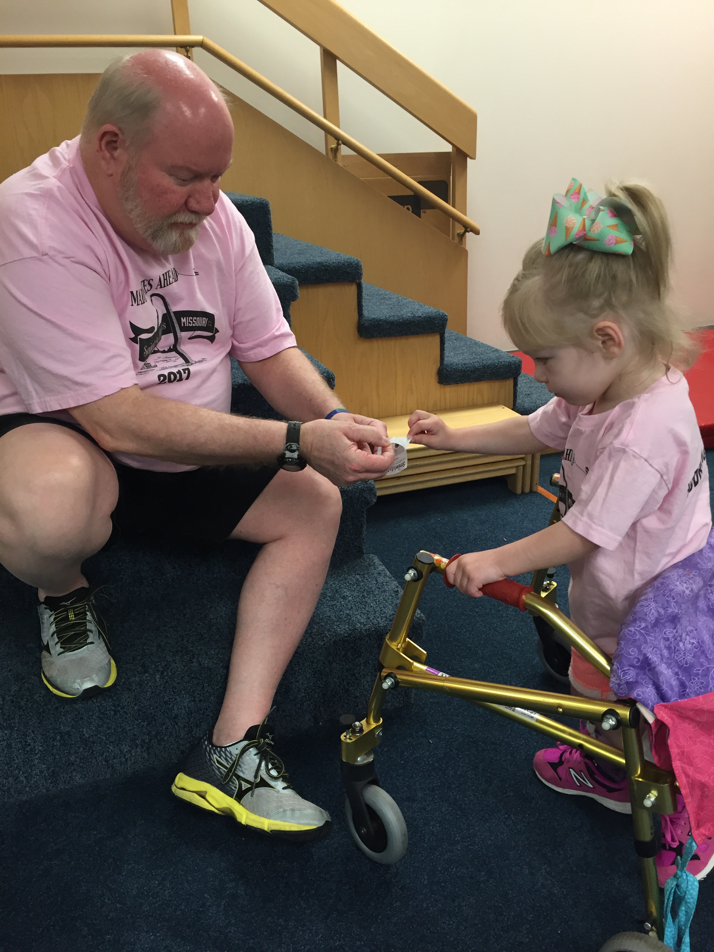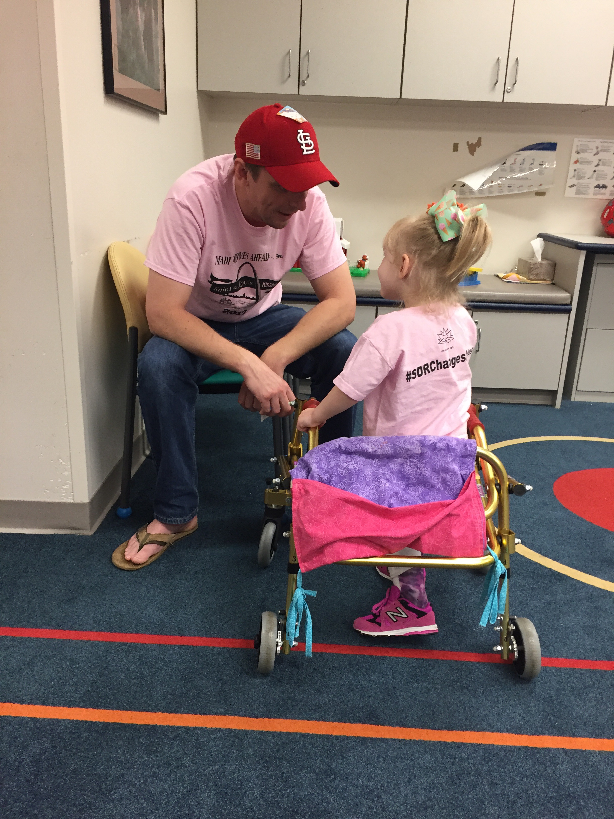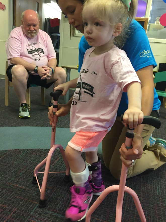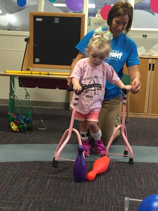 Here is her stretching guide to help facilitate her daily stretches. She will also use her treadmill 5 days per week to practice walking forwards, sideways, backwards and eventually on an incline. If she walks for more then 10 minutes she can put a sticker on her board. Once she collects 10 stickers she can pick a new app for her iPad that we use to distract her when walking or stretching.