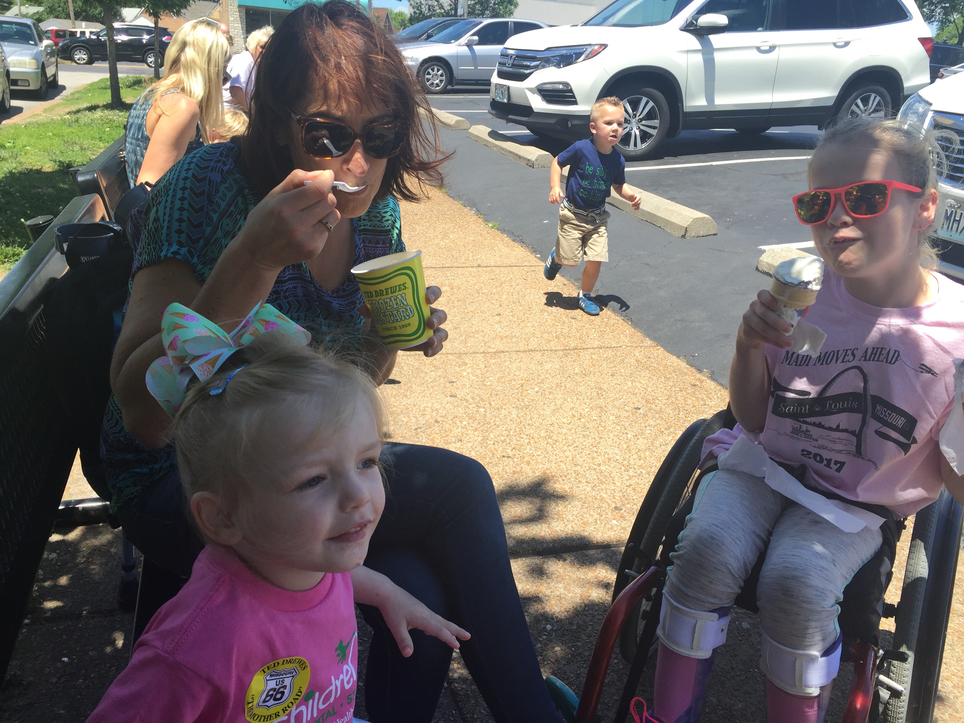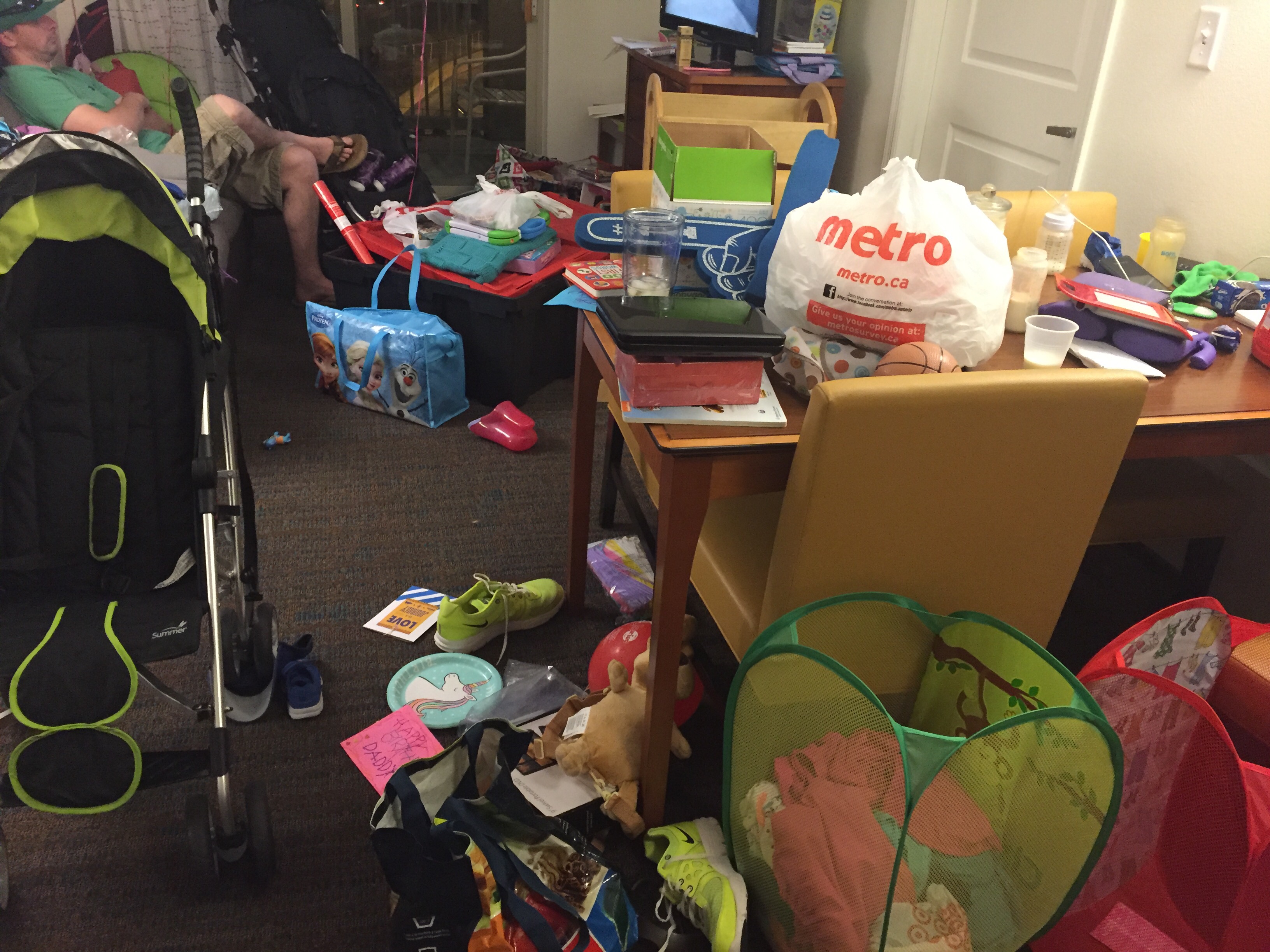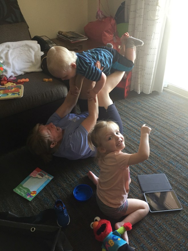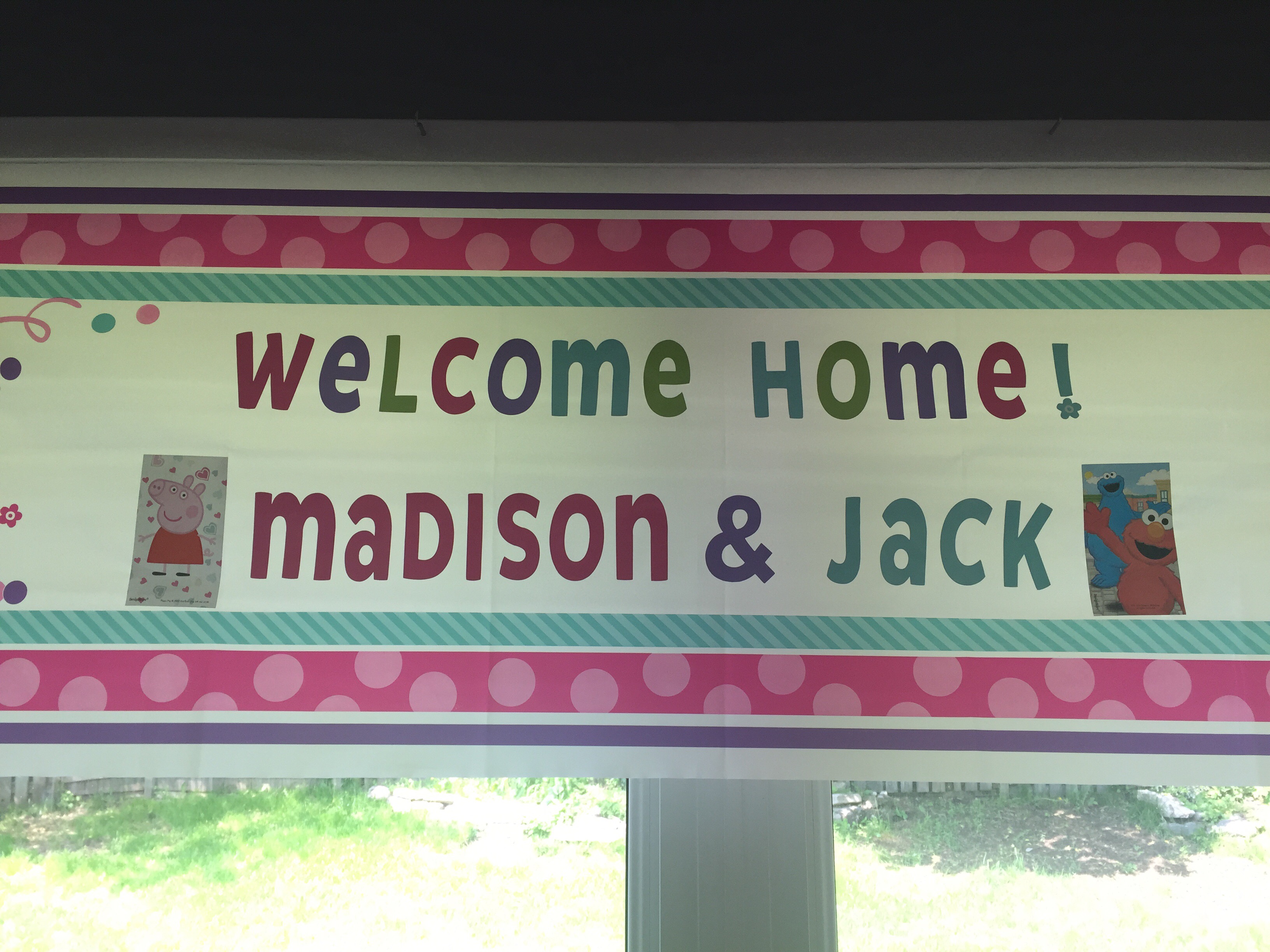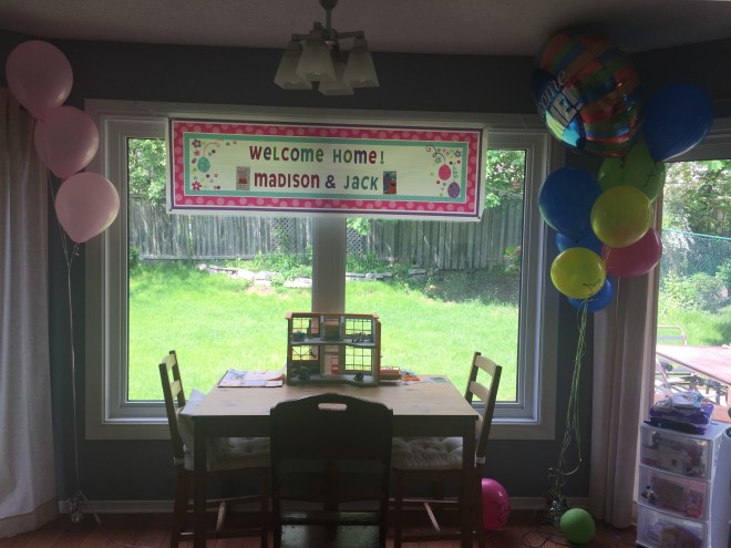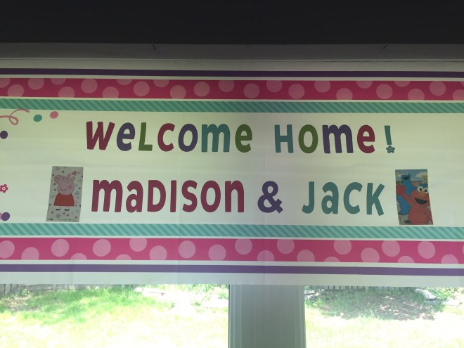 By the time everyone went to bed after returning home from St Louis it was about 3:30am, so needless to say this morning was a write off. Lots of lying around and PJ’s in bed followed by a late 11am breakfast. Once breakfast was over, Pam popped over to visit and Madison and Jack thanked her and her family for the awesome welcome home balloons, sign and groceries! The kids played with Pam while Mommy & Daddy unpacked the van and started to get things organized and put away.