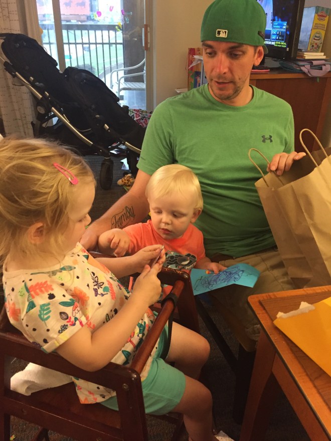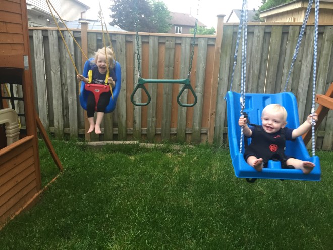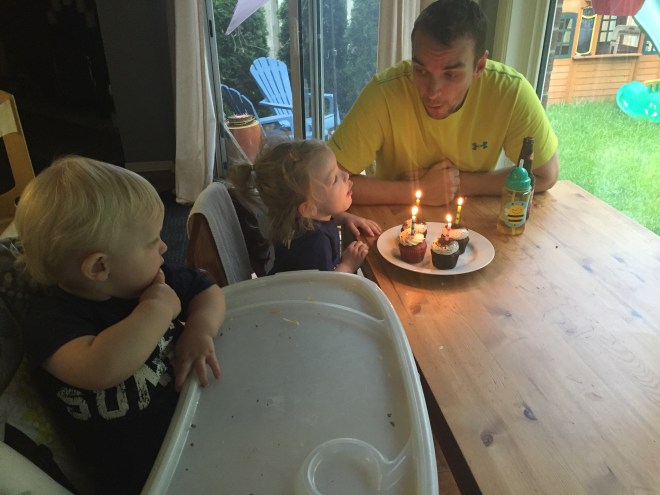 Daddy’s birthday yesterday was spent driving, so everyone had cupcakes and swinging in the backyard tonight to celebRate!