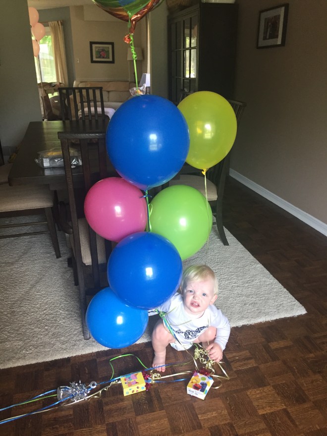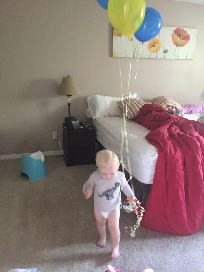 Jack stayed home with Daddy and ran around with all the balloons!