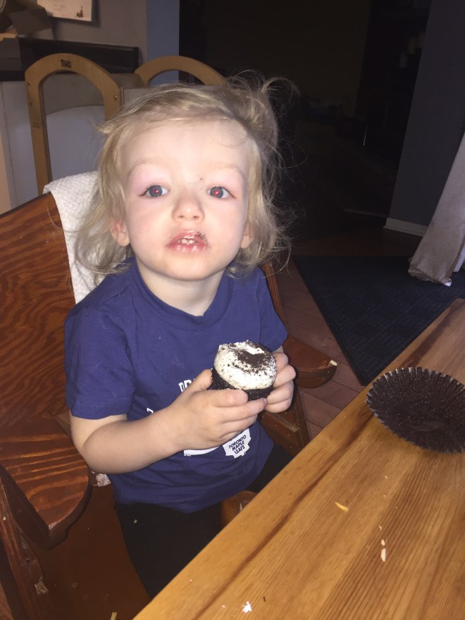 Here is the face of a 3 year old on 3 hours of sleep
