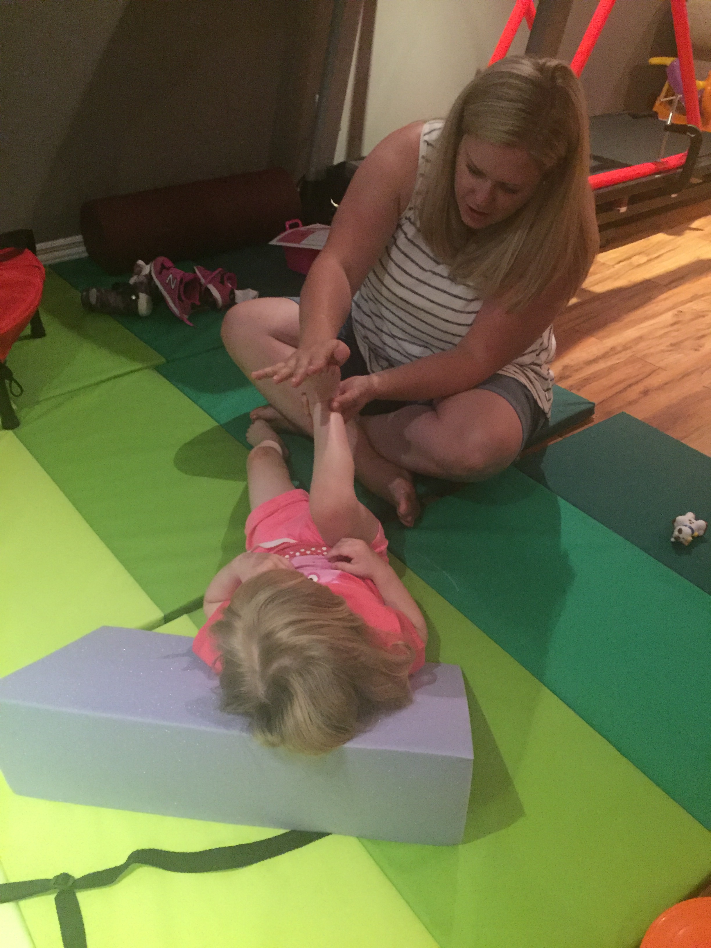 For her post op rehab, Madison is required to wear her night braces and knee imobolizers every evening at bedtime, stretch everyday, do some sort of therapy 5 days a week and implement a supplemental therapy program at home. Her therapists in St Louis and in Toronto helped come up with these ideas for Madison to try:
