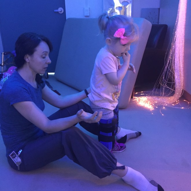 Madi then headed to Variety Village for Physio with Stephanie. She had a rough start as she was super tired but turned it around and worked so hard! She did lots of walking in her Gaitors and near the end she took her first independent steps since surgery! 3 steps!