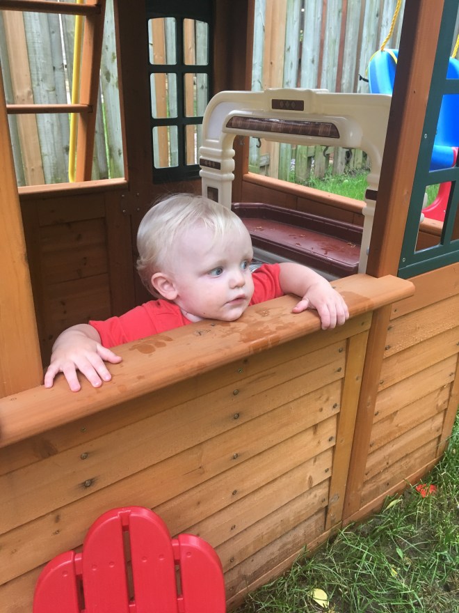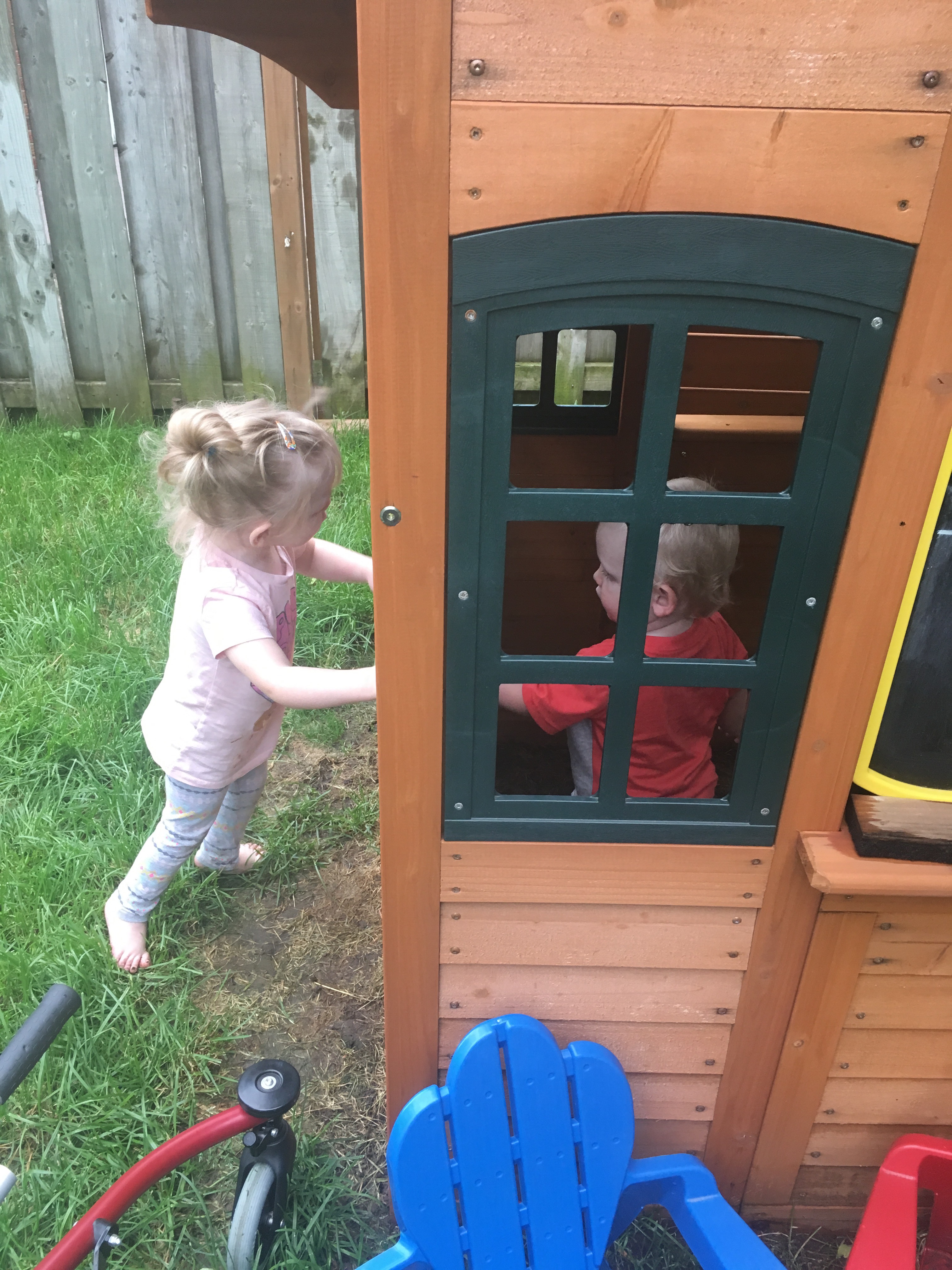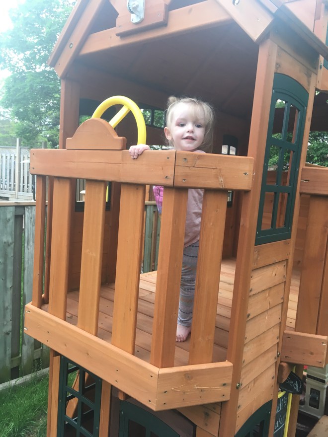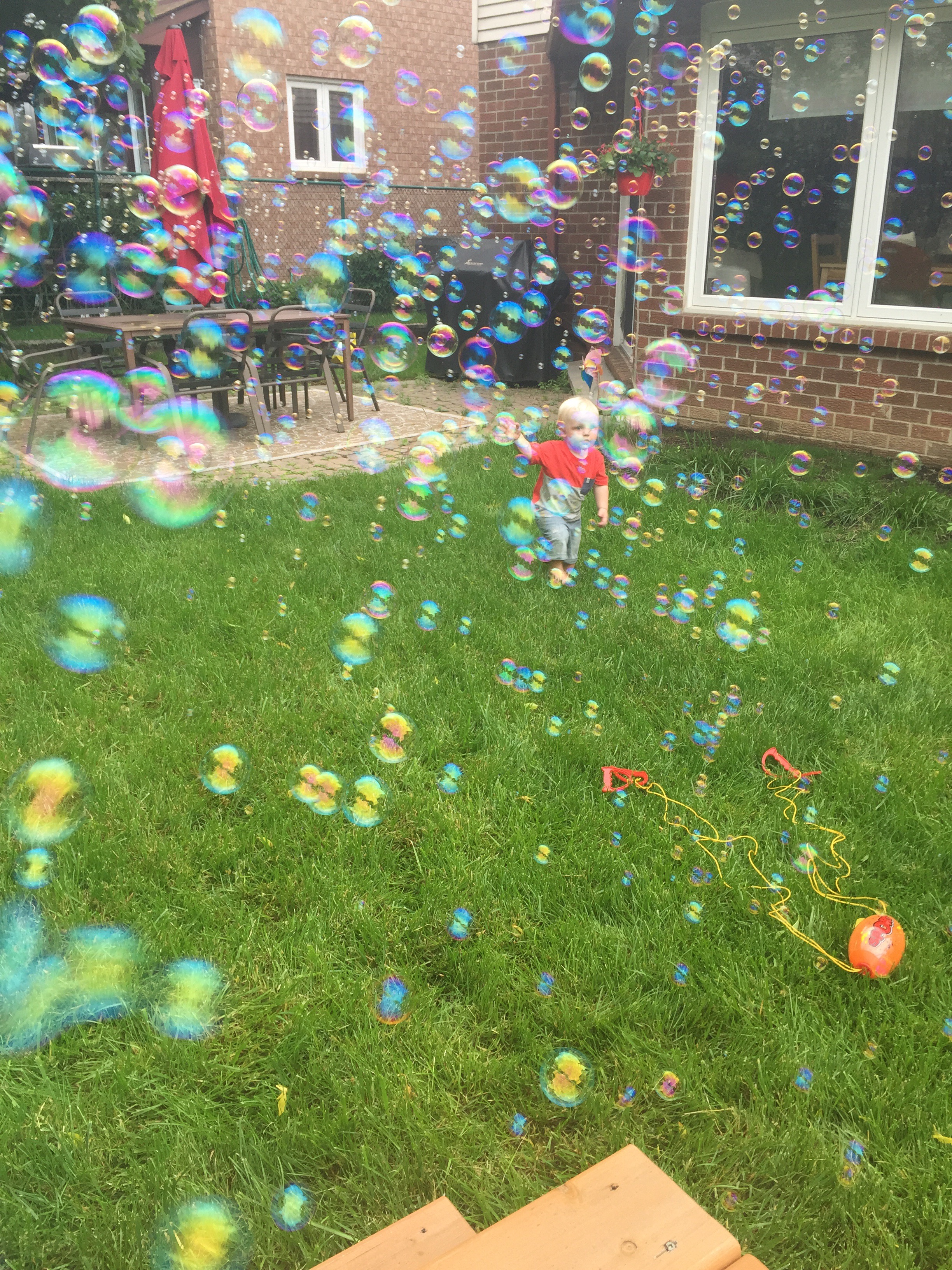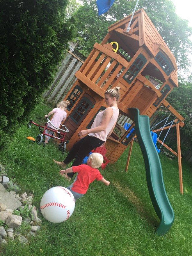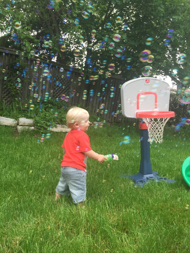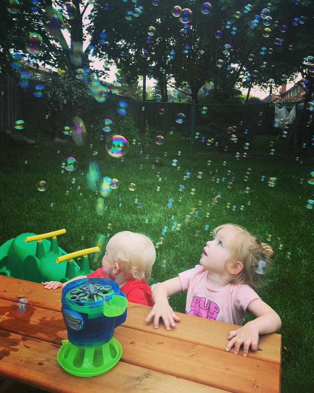 Once they were home Aunt Emily arrived to visit for the weekend. Madi was super excited to play in the backyard and check out her new bubble machine.