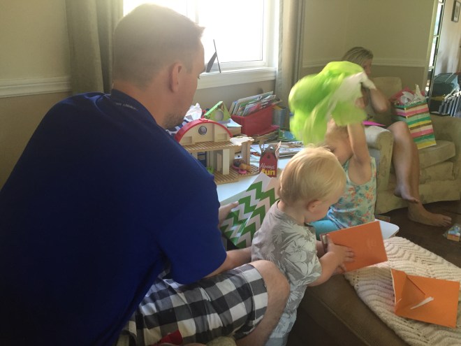Madi & Jack were up bright and early and ventured into Aunt Emily’s room to wake her up. After some time lying around everyone ventured downstairs to breakfast, got some stuff done, opened some presents and then headed to Grandma and Grandpa’s for birthday celebrations.