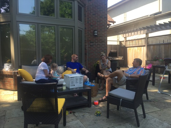 Aunt Emily and Daddy celebrated their birthday’s having a BBQ and playing in the backyard. No Physio today…just down time and enjoying the weather.