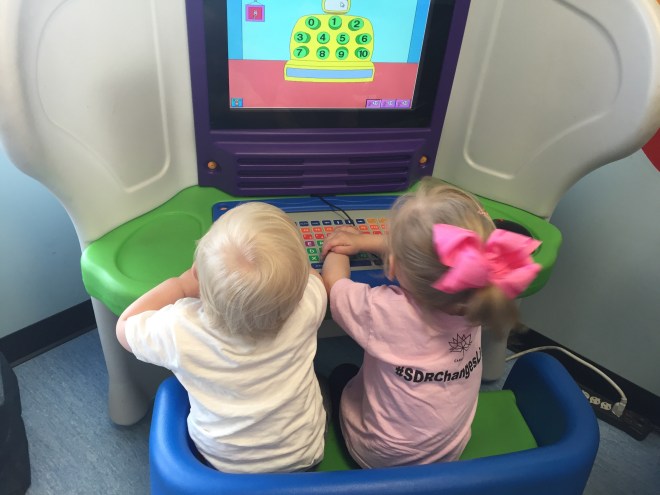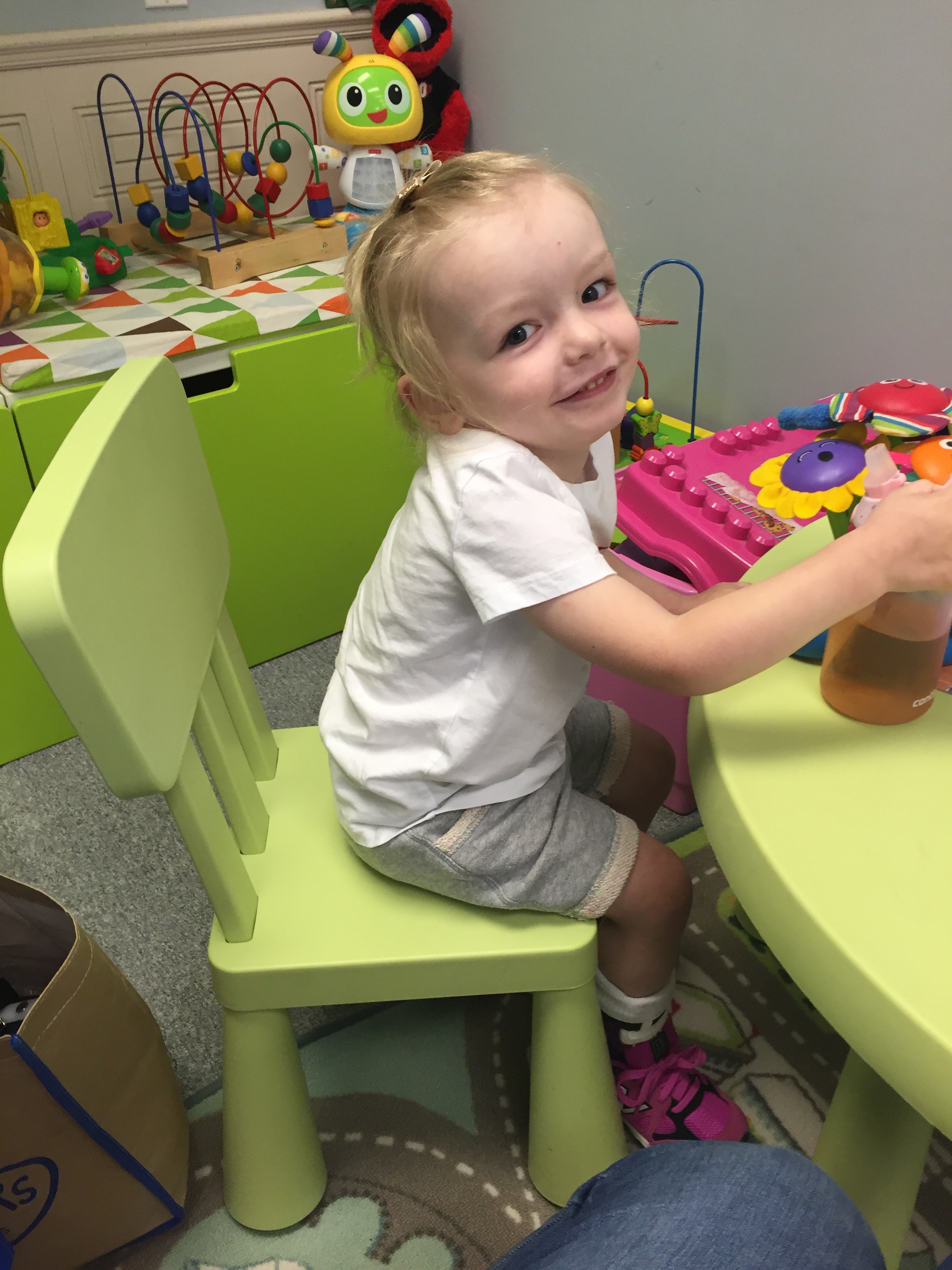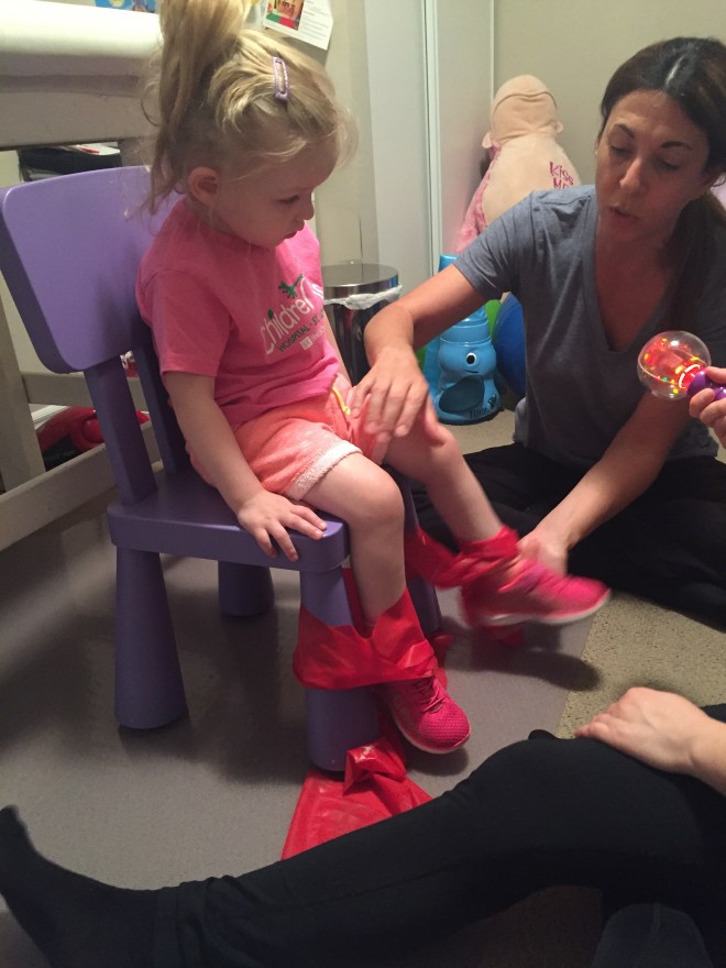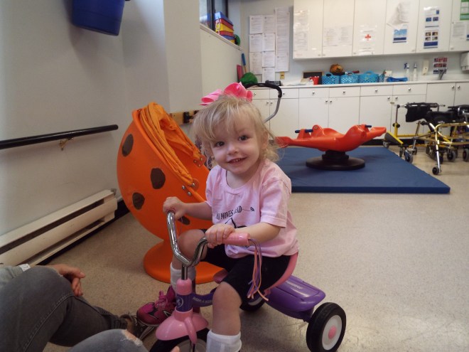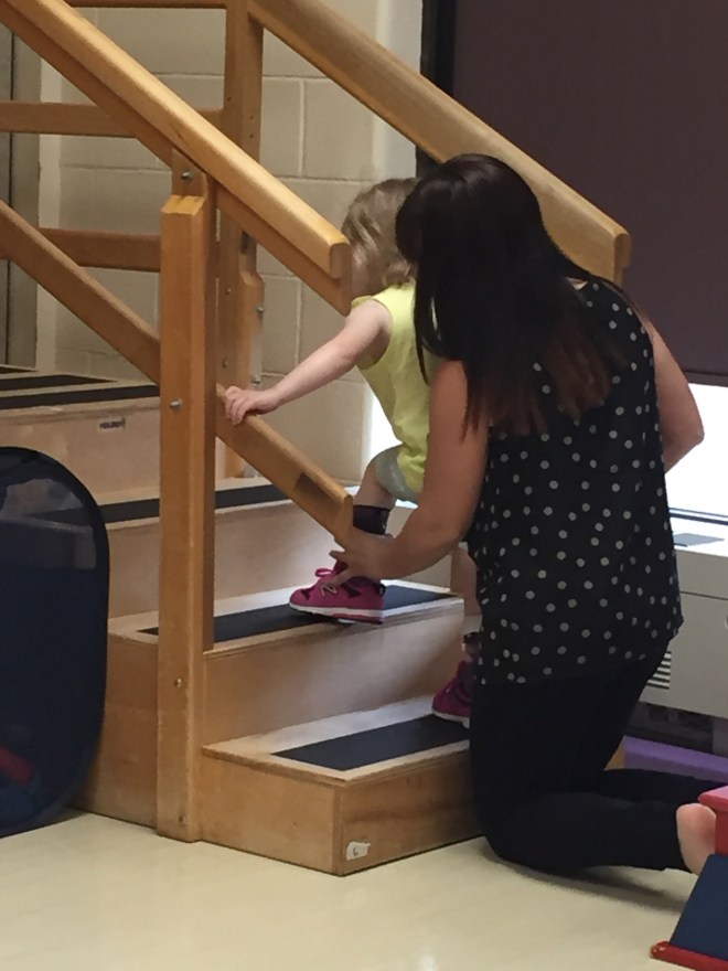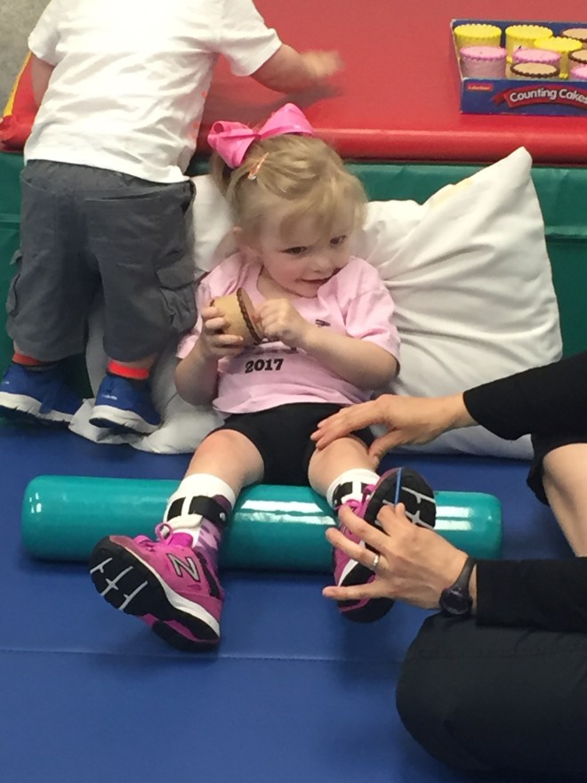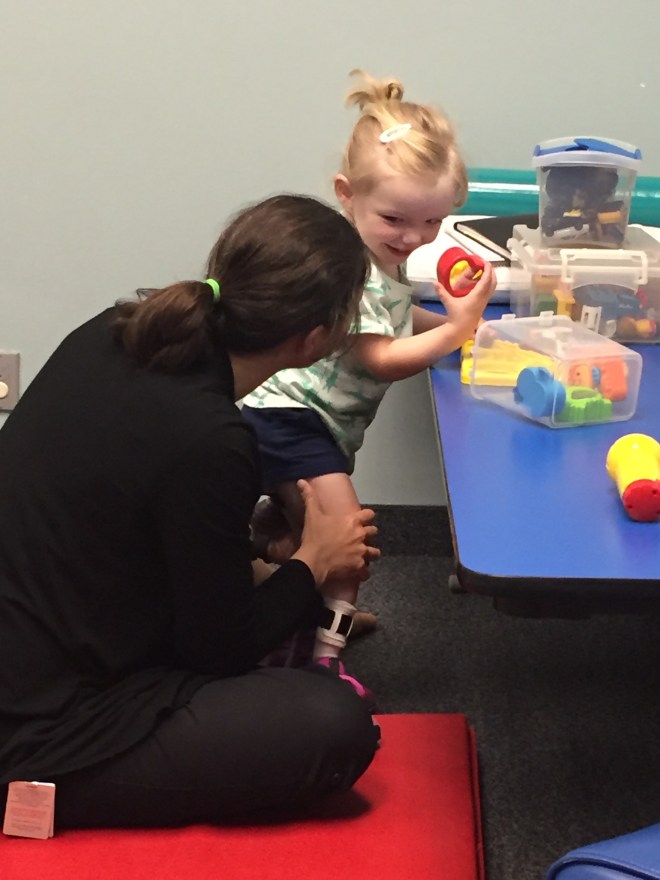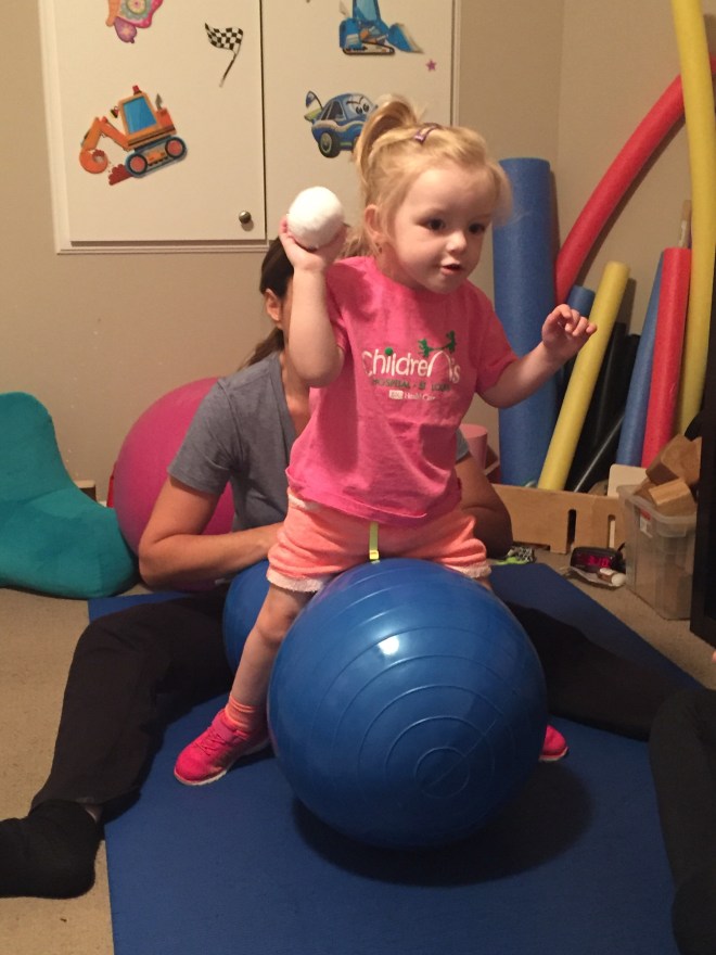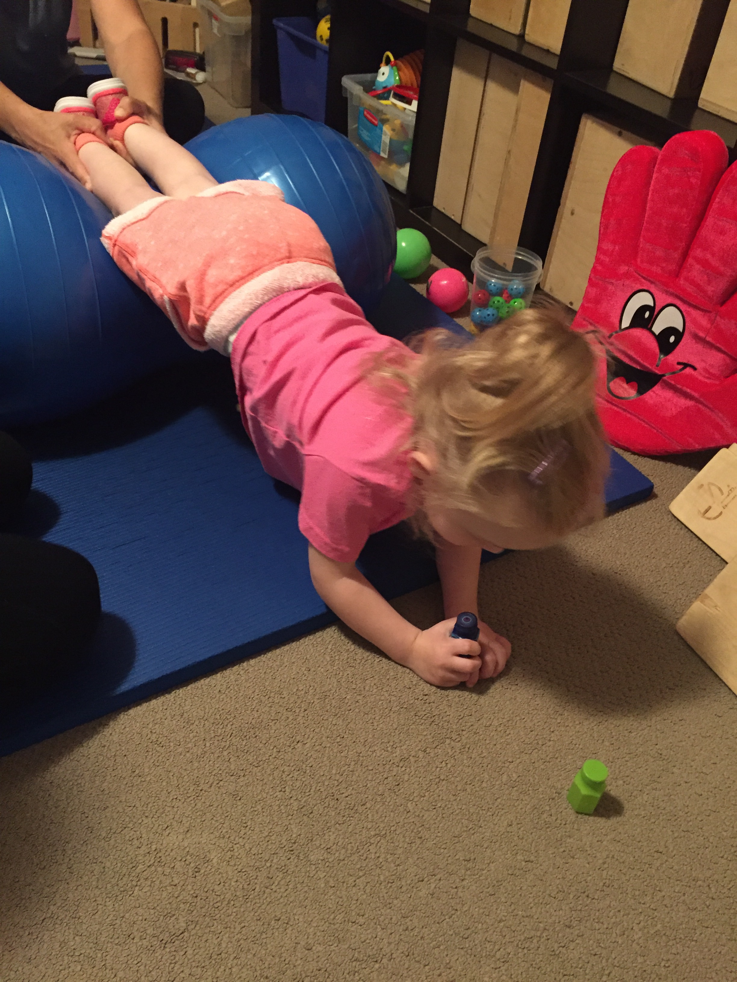Madi worked super hard with Jo-Anne this afternoon. She LOVES all of her toys and unique ways she is challenged. They did lots of strength building exercises and Mommy is now filled with new ideas of things that can be done at home to compliment the St Louis home program. Thanks Jo-Anne!
