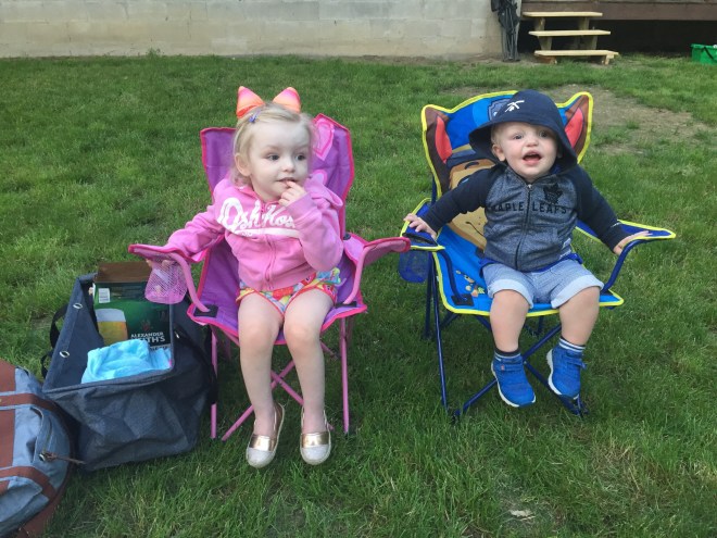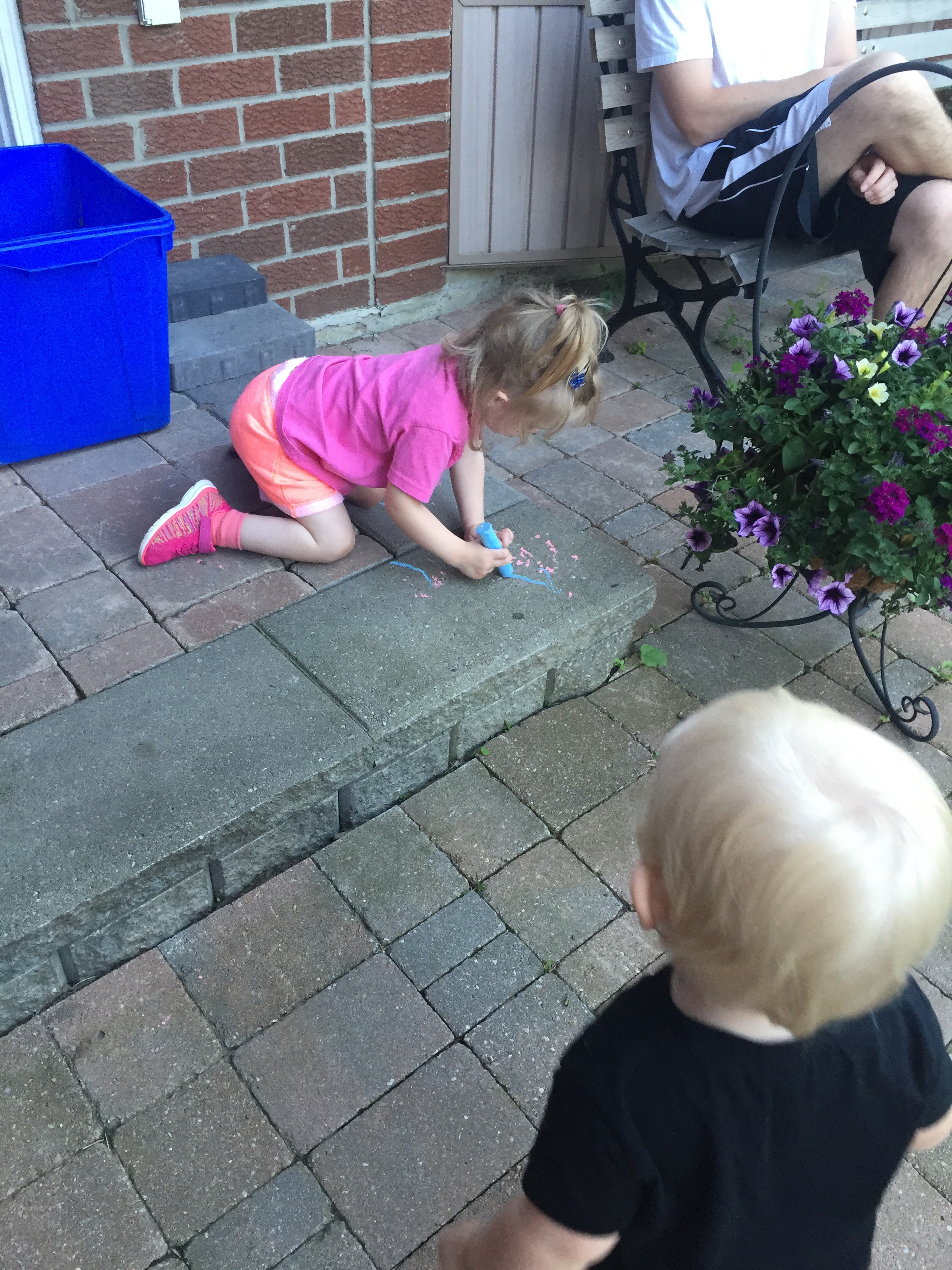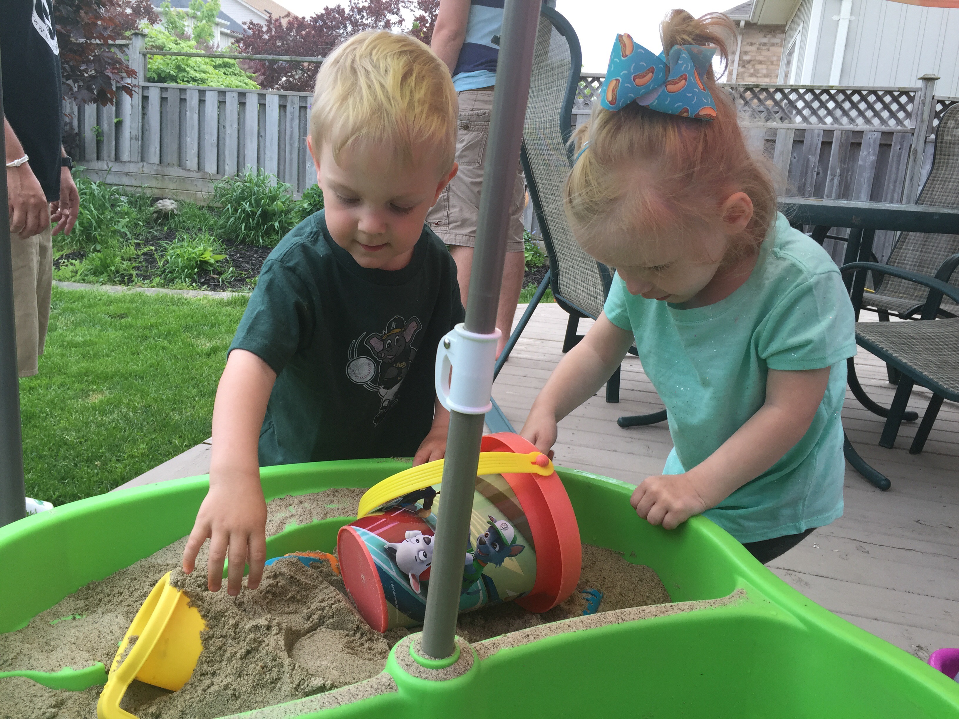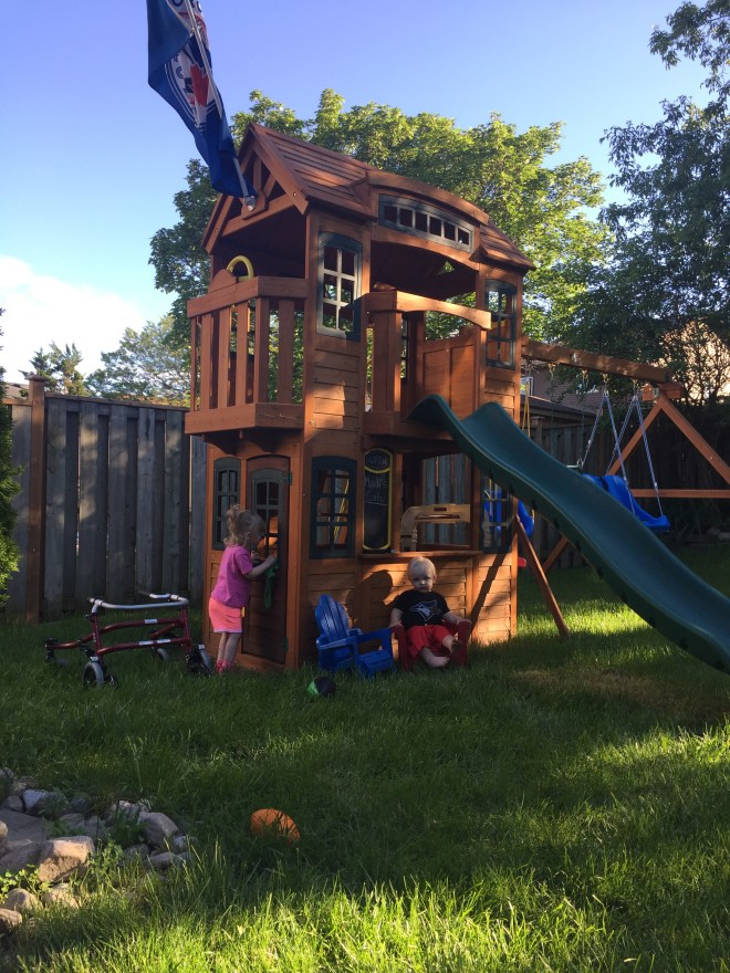 Madi & Jack enjoyed the evening exploring the backyard. Madi cleaned up her playhouse kitchen and Jack lounged and watched.