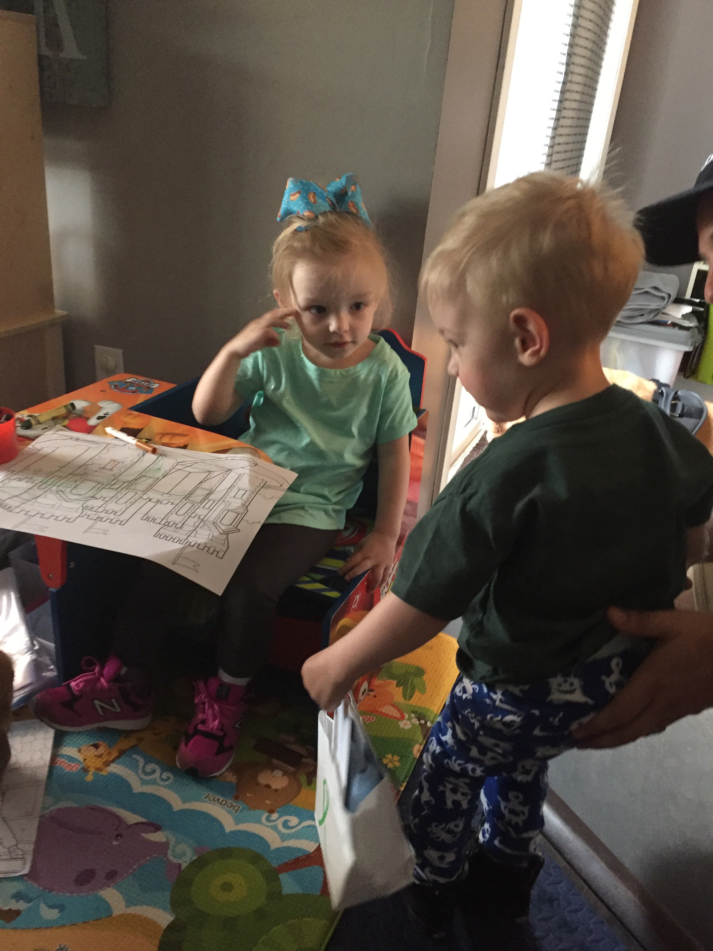 Madi and Ben had a lunch date after the farm. Ben did a great job eating while Madi chatted away and didn’t eat much. They played with play dough, encouraged each other to use the potty and had some kinder eggs for their treat. Madi asked if she could live at Bens house…clearly she had an awesome time haha