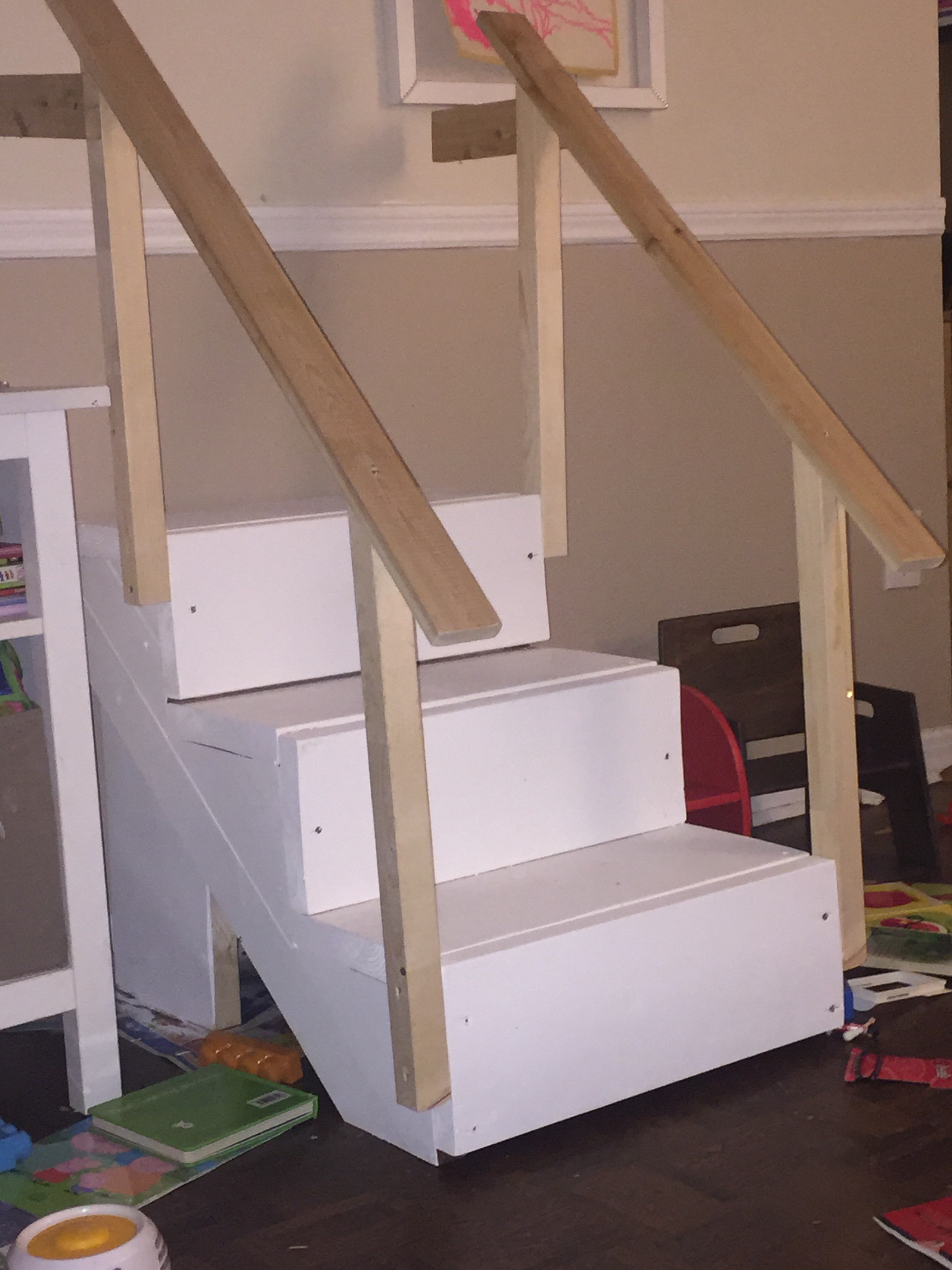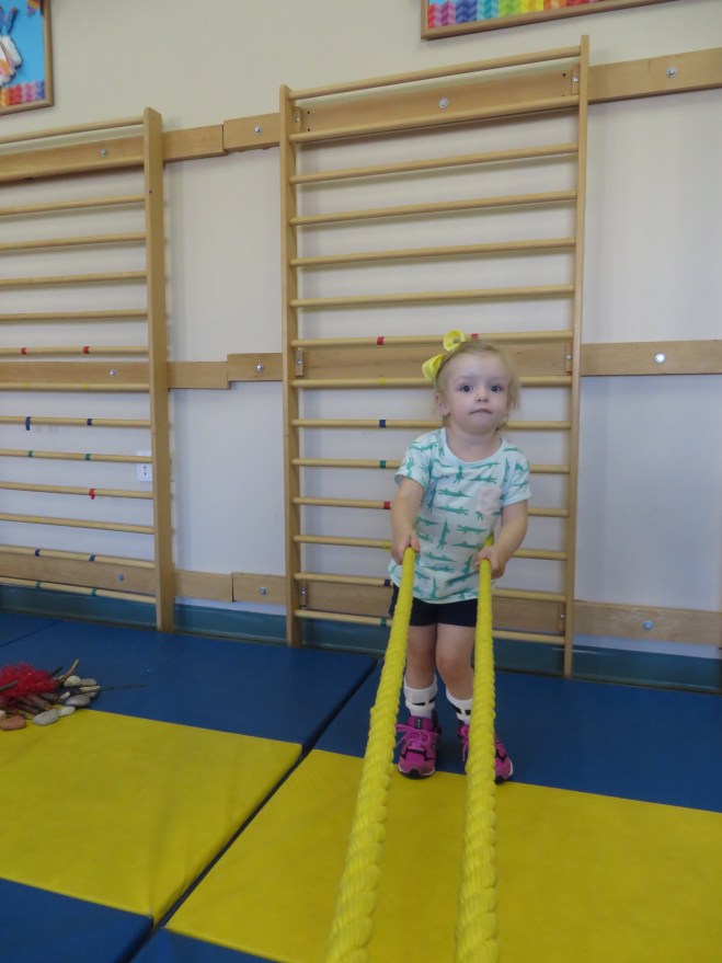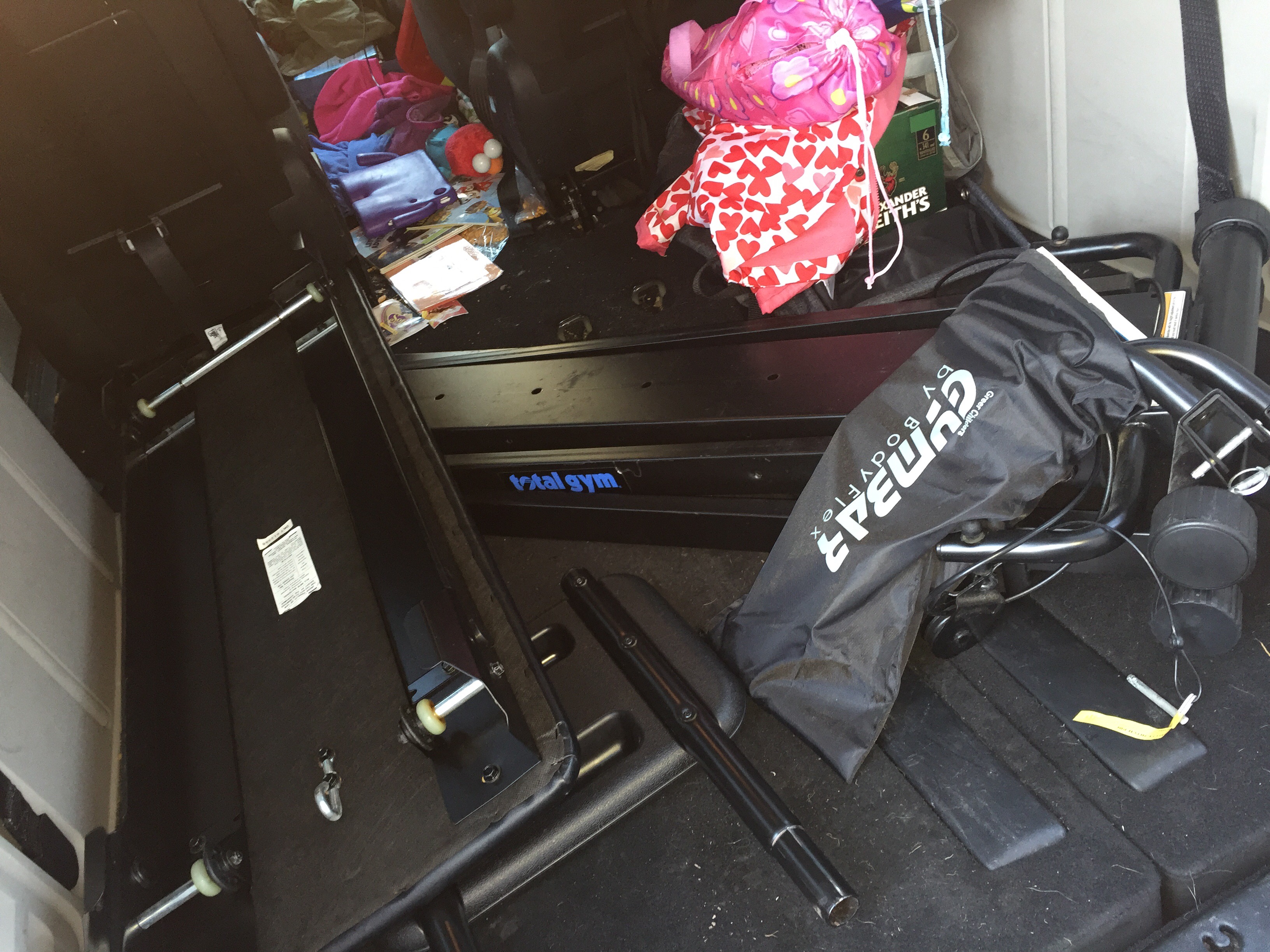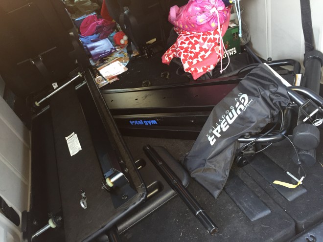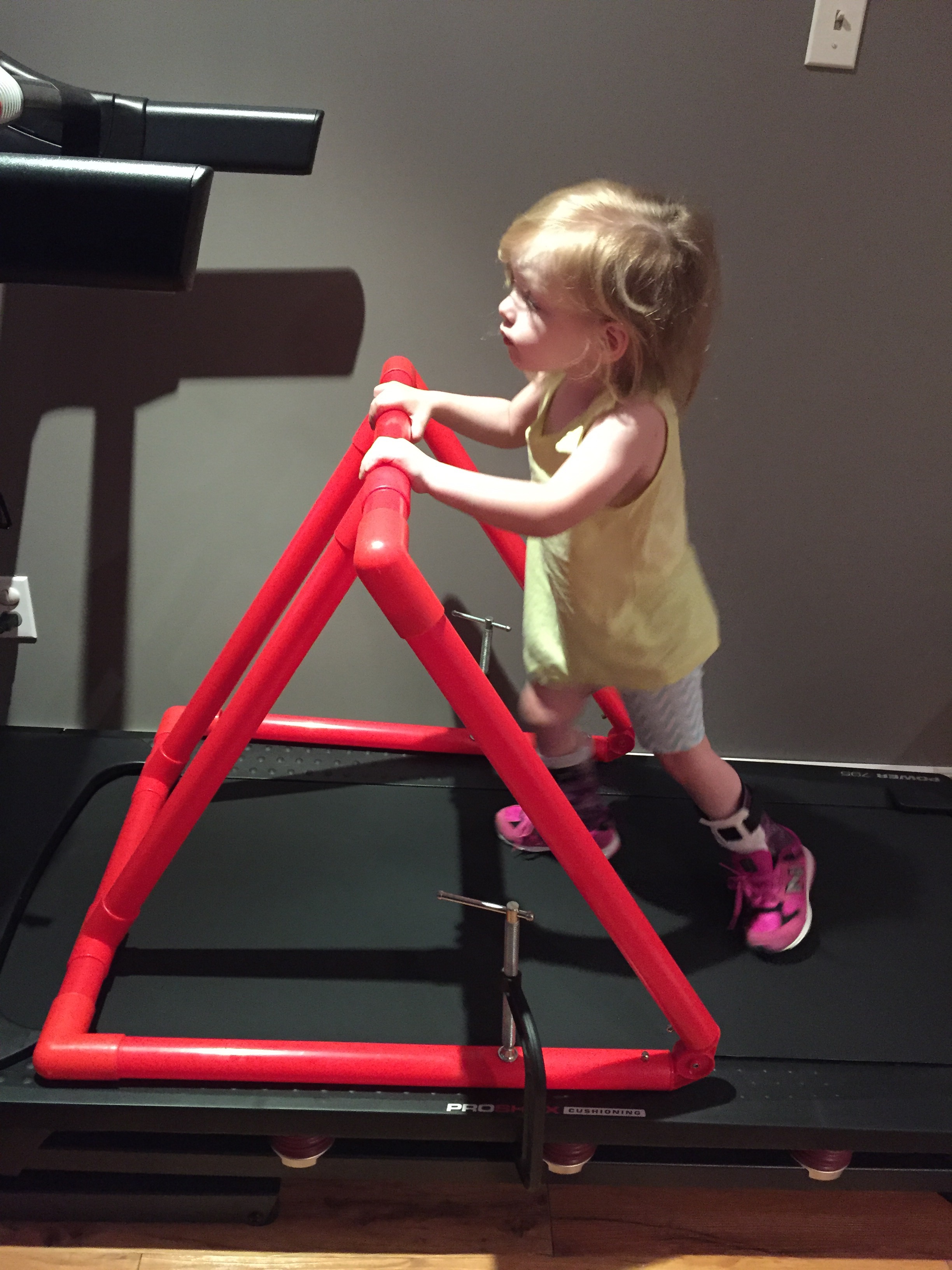 More equipment is slowly making its way into the house. Daddy is almost done building Madi’s stairs and Mommy picked up Madi’s ‘Total Gym’ equipment for her to work on her sliding squats everyday to strengthen her quads. Her basement gym is going to be re-configured this weekend as things are added. Other things on the way: Vibrafit vibration plate, scooter saucer, peanut ball and new therabands.