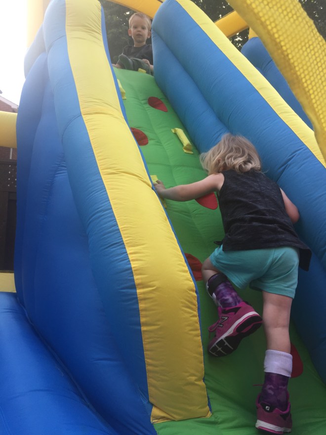 Once Madi was home and finished dinner, she wanted to work on her walking. Madi has been walking on high knees as her warm up before practicing her walking at home. This was very difficult for her to do before SDR. She could do just a few, very quickly before falling forwards. She is now controlled and much stronger.