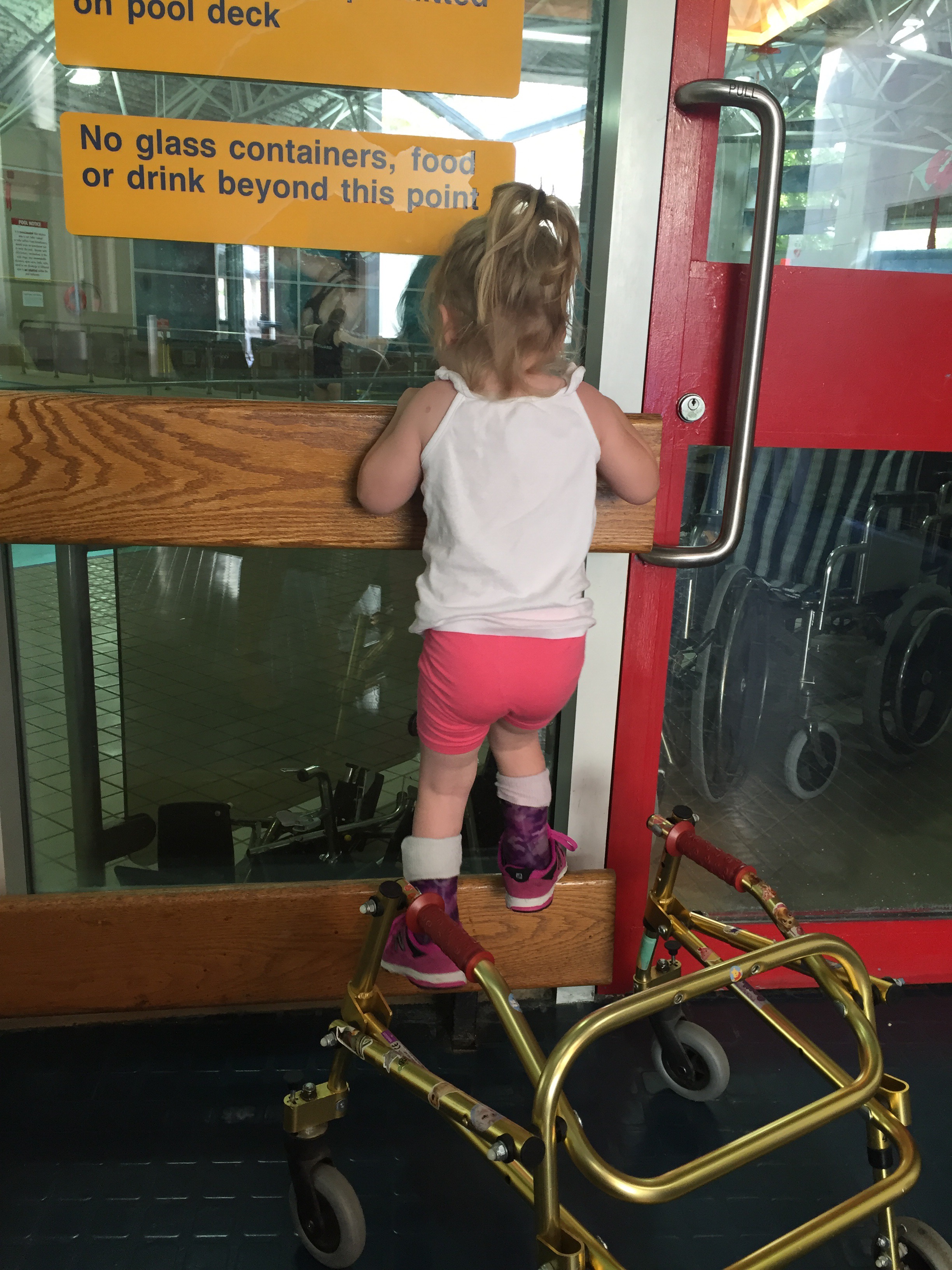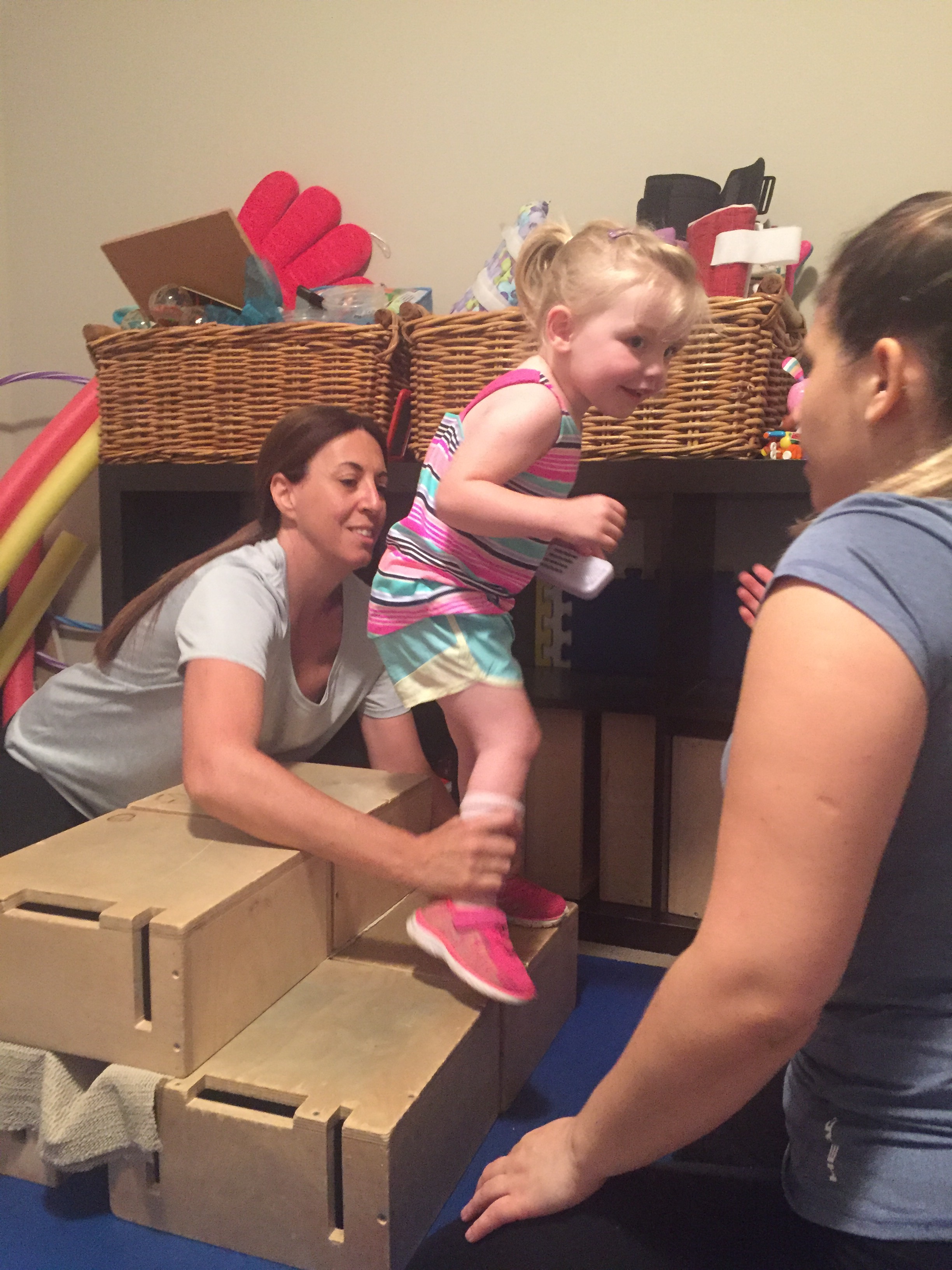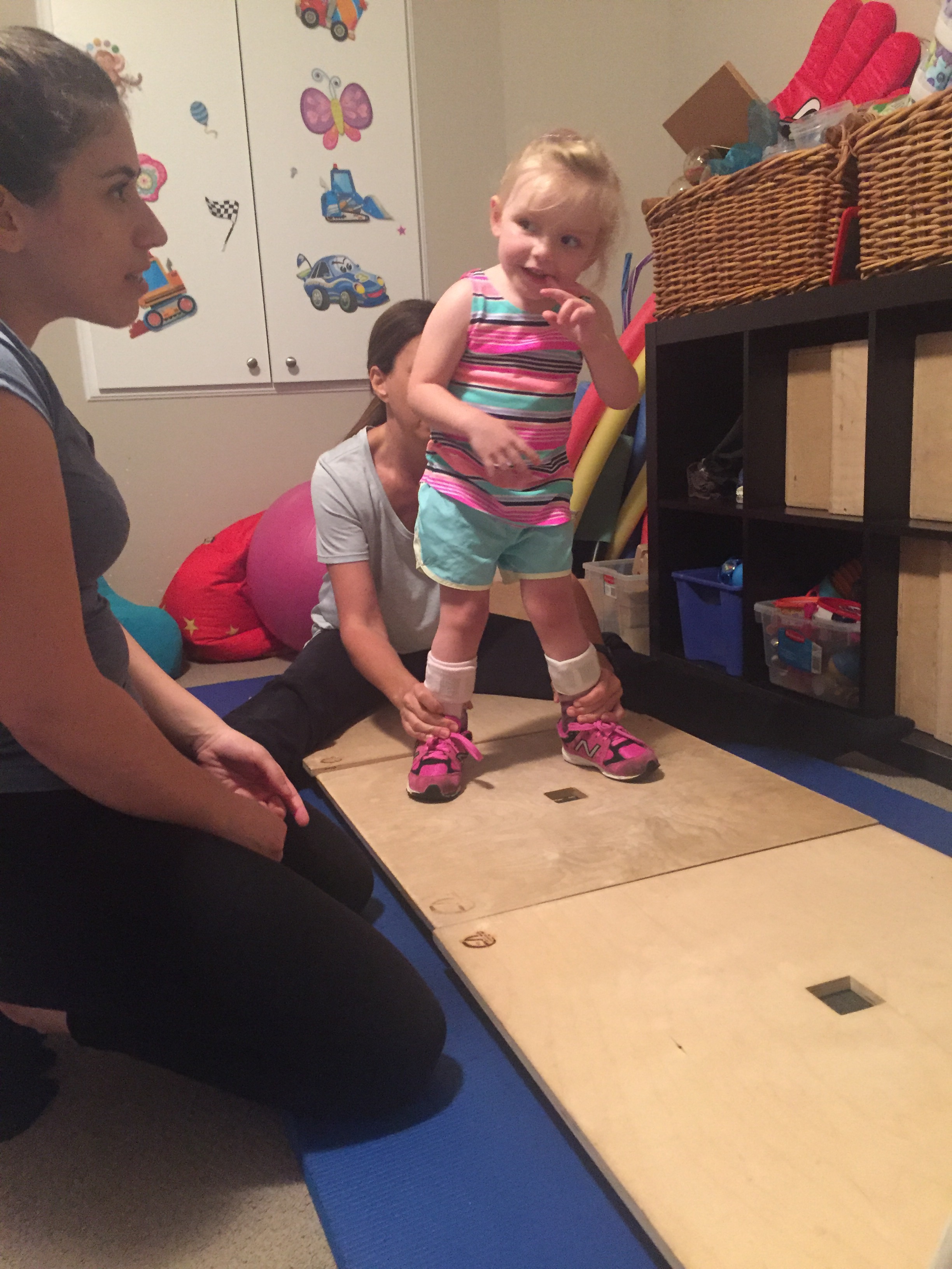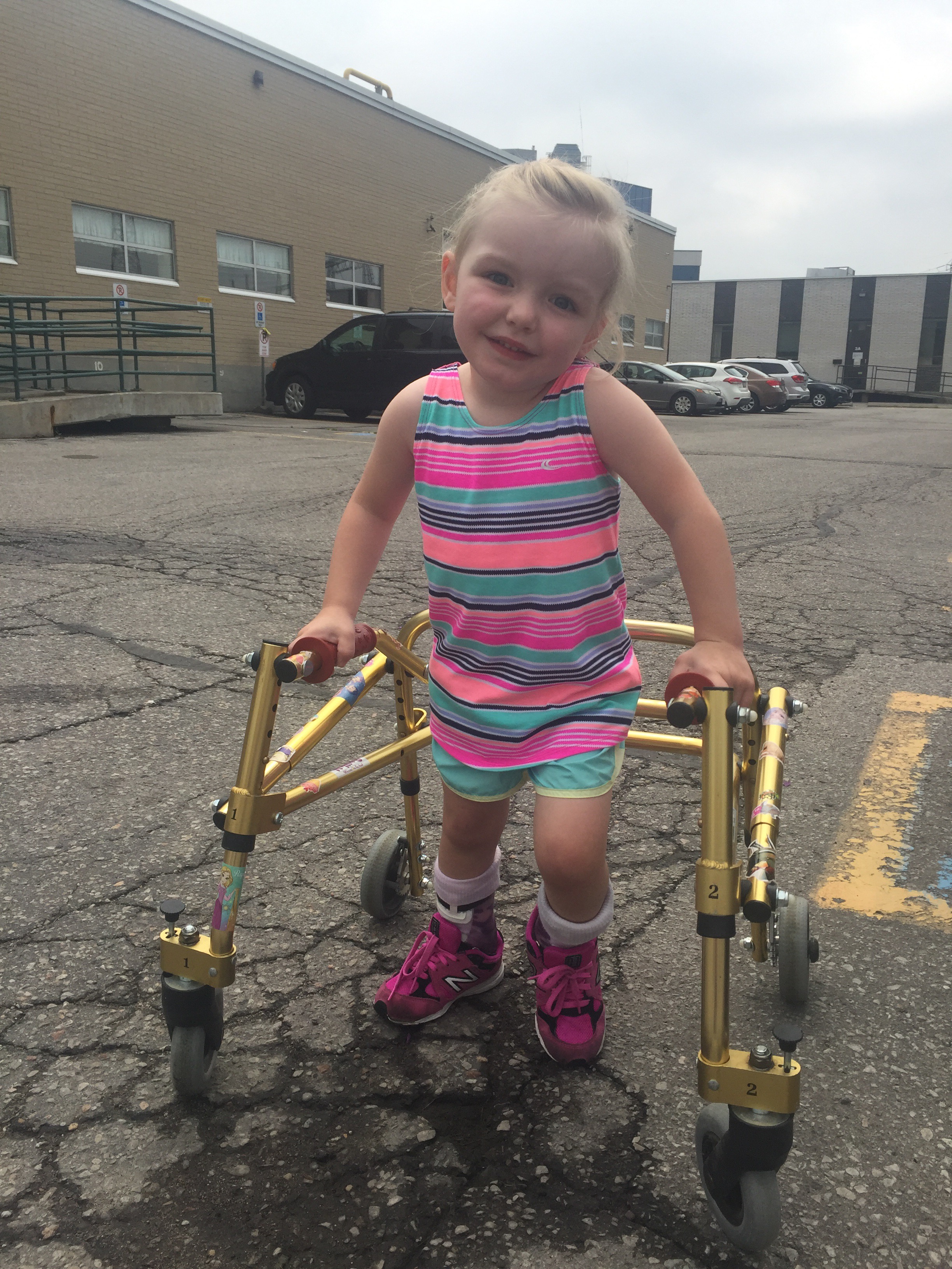 Once Madi was home and finished dinner, she wanted to work on her walking. Madi has been walking on high knees as her warm up before practicing her walking at home. This was very difficult for her to do before SDR. She could do just a few, very quickly before falling forwards. She is now controlled and much stronger.