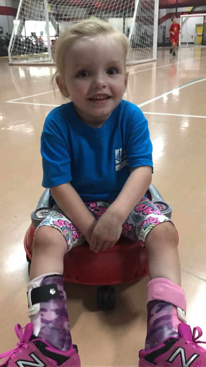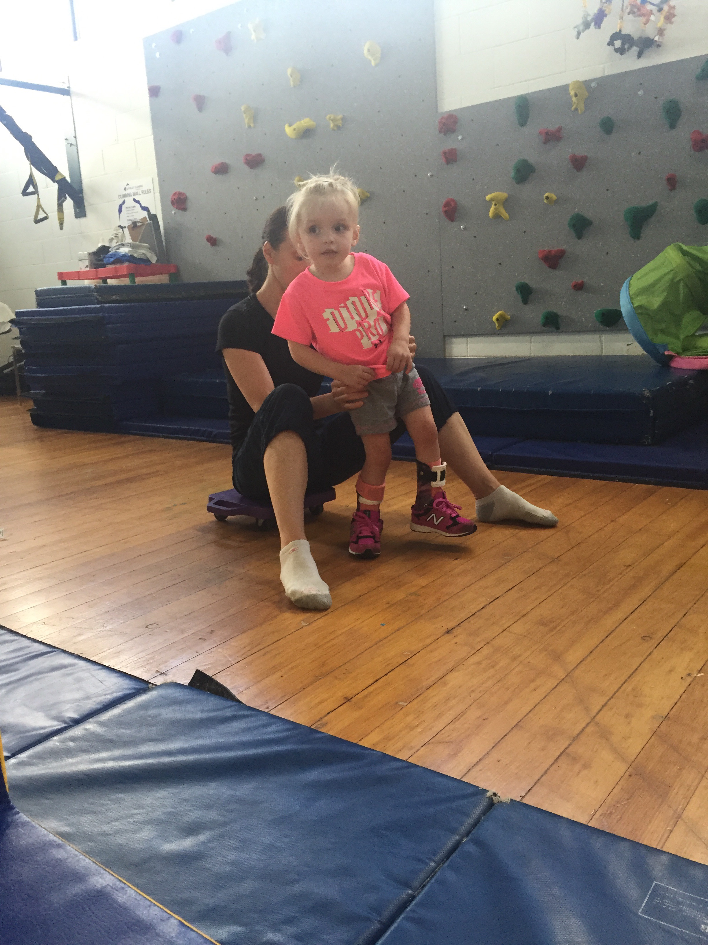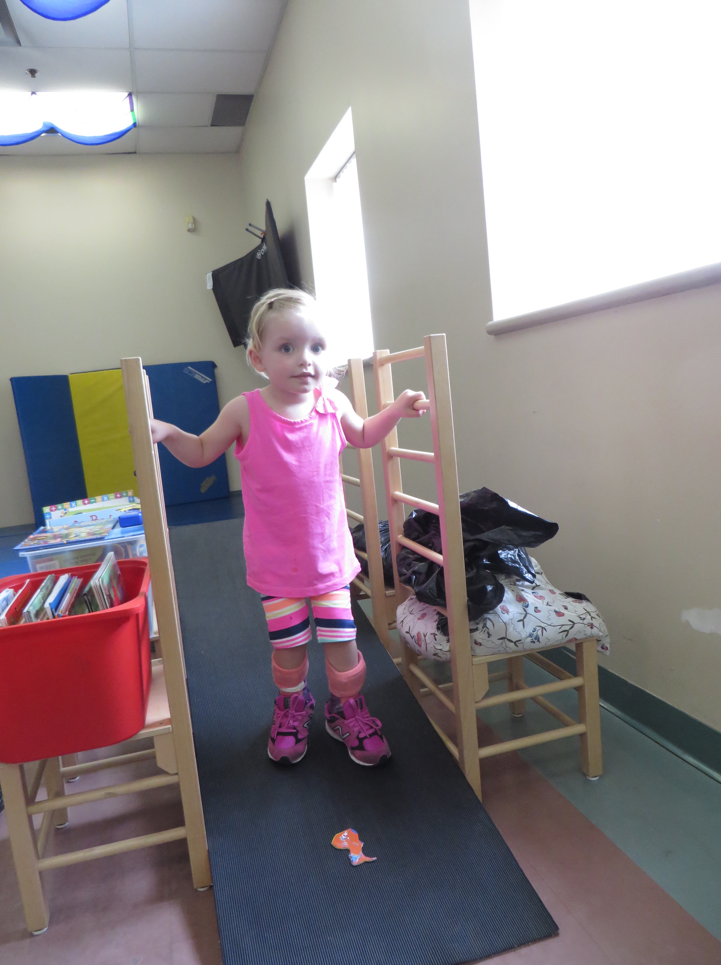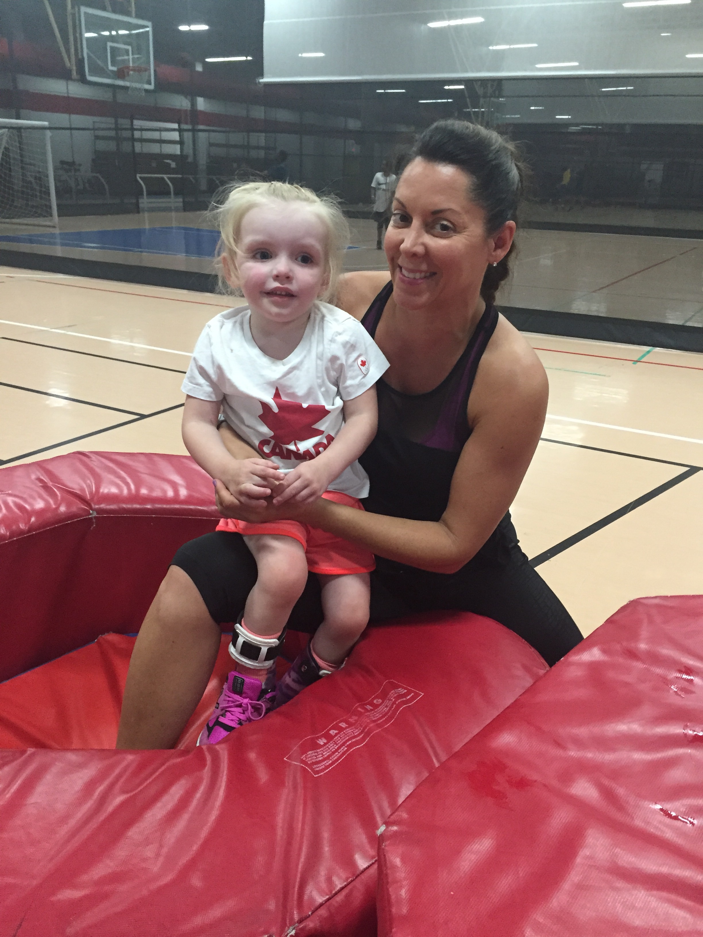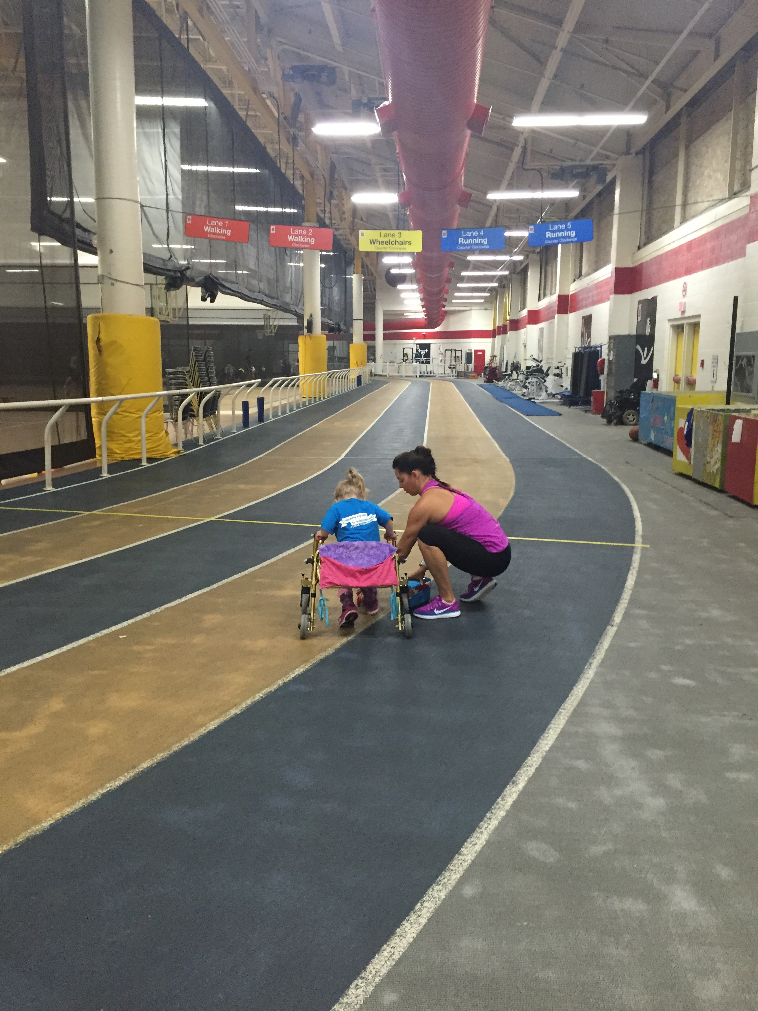 After camp, Mommy had a meeting at Variety Village and Madi worked with her trainer & buddy, Melissa. They did lots and lots of walking around the track, climbing, squat pushes on her scooter and she moved non stop for 1 hour! Thanks Melissa!