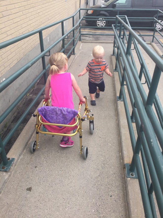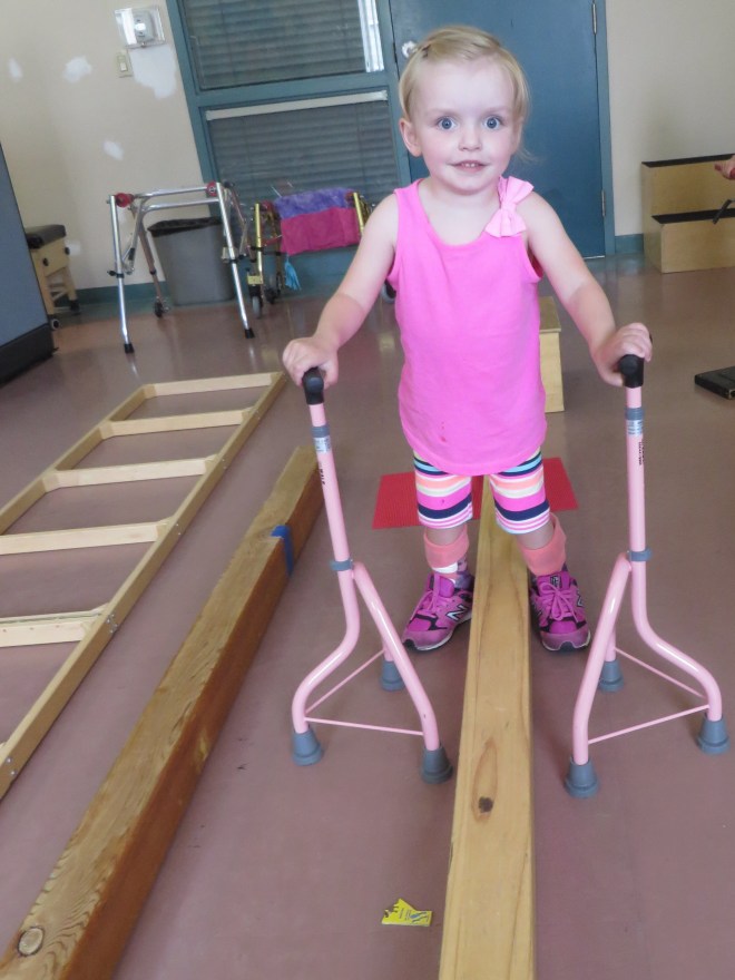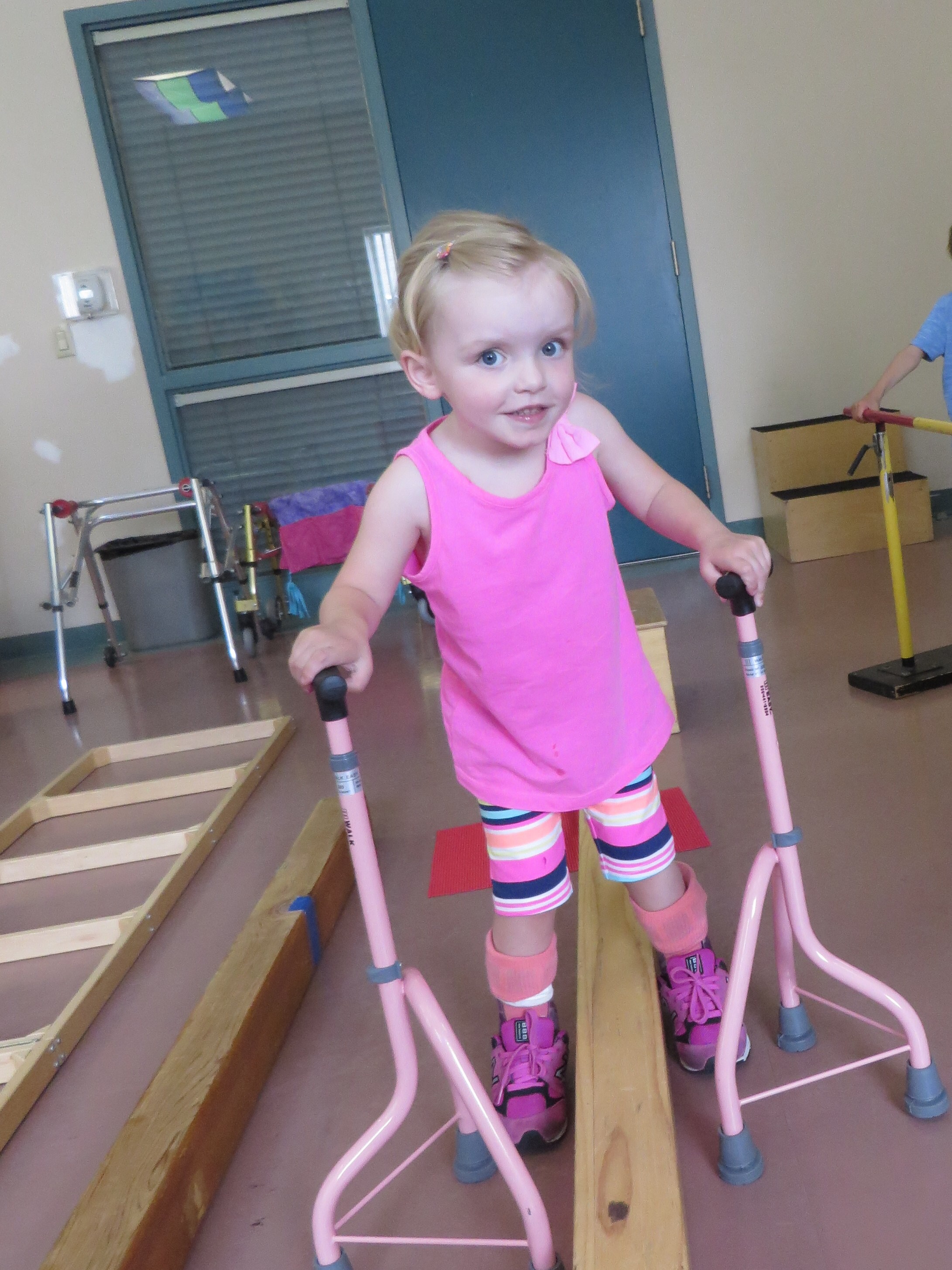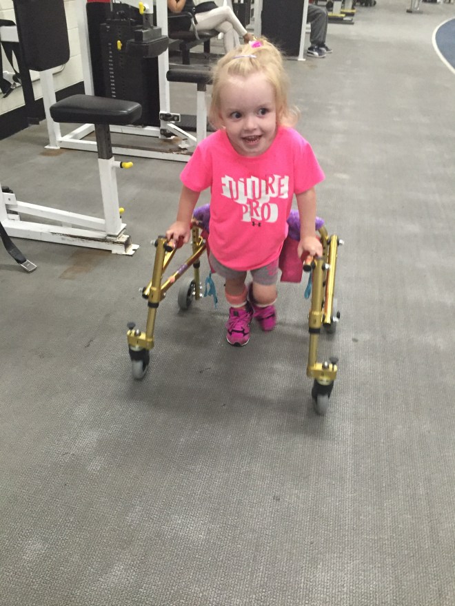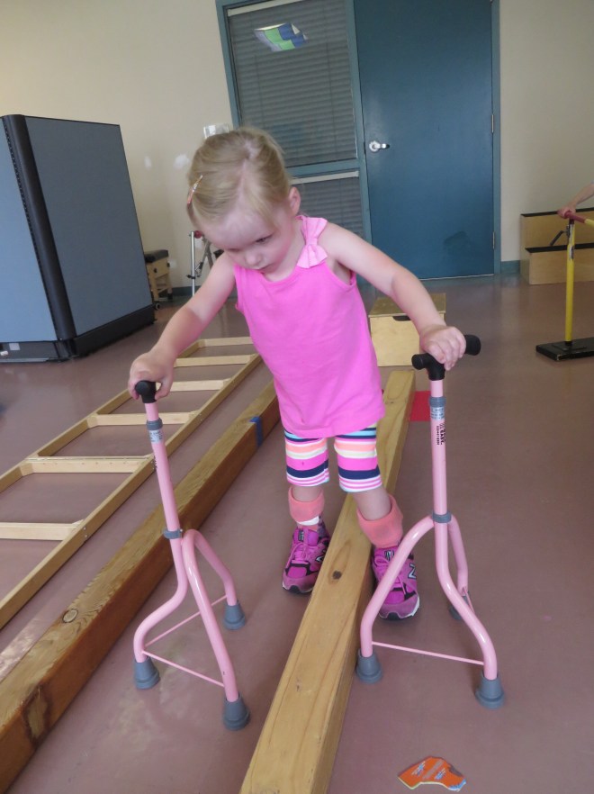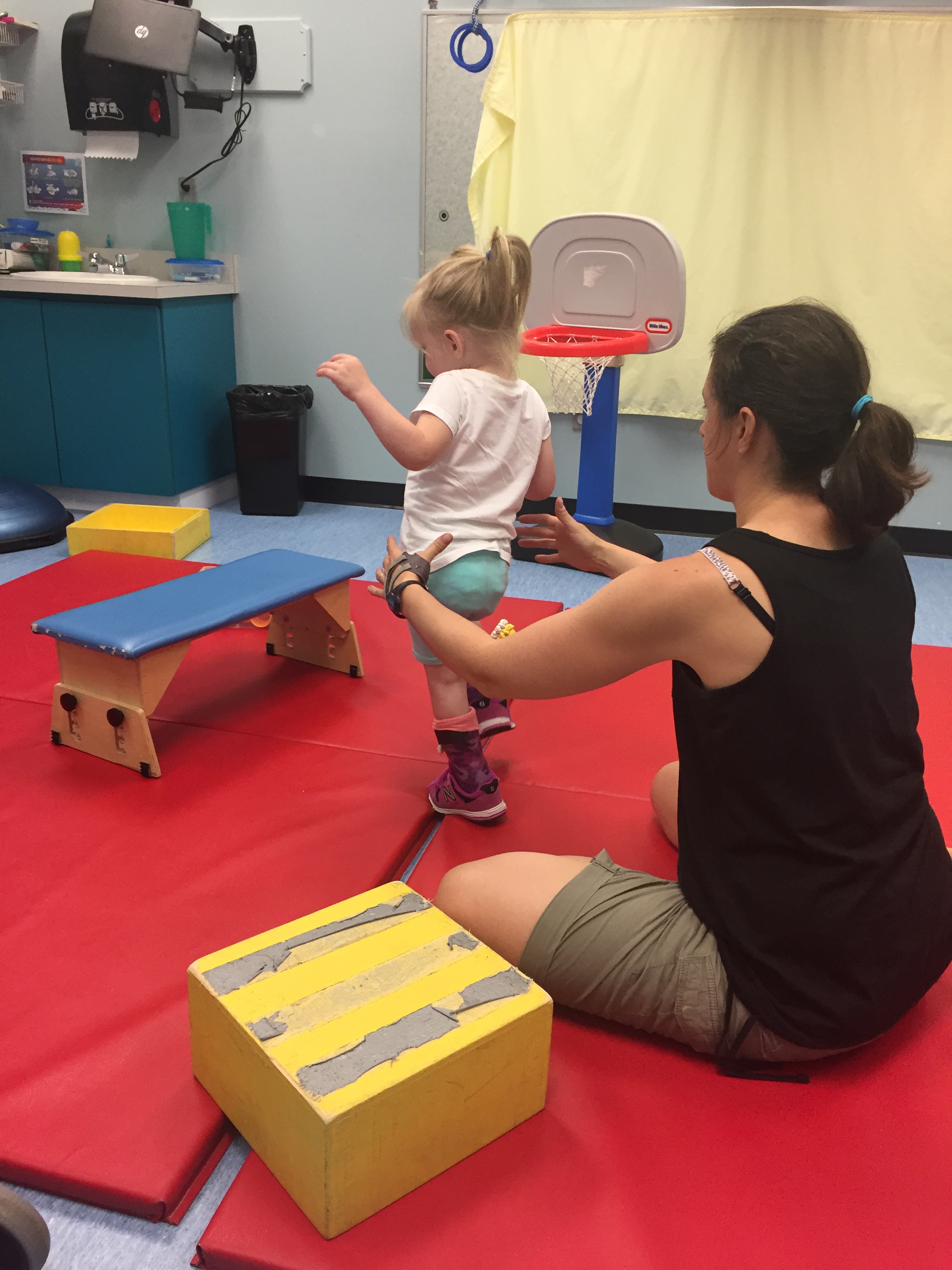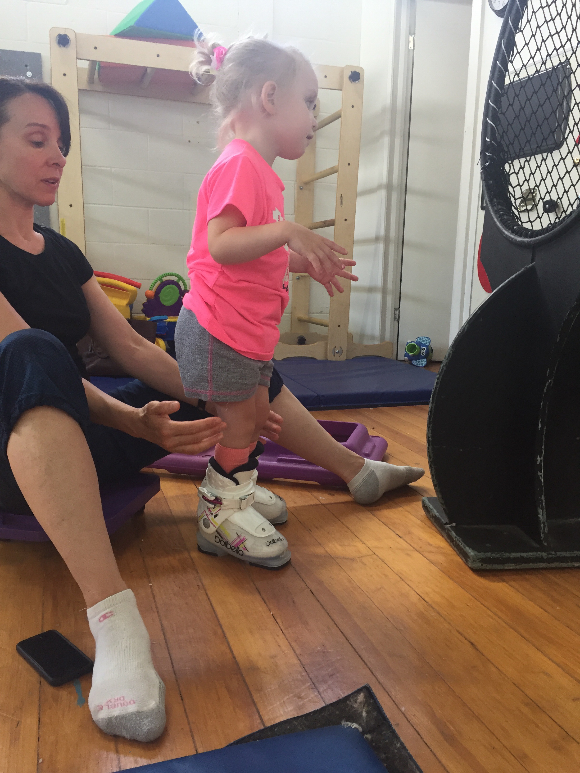 After camp, Mommy had a meeting at Variety Village and Madi worked with her trainer & buddy, Melissa. They did lots and lots of walking around the track, climbing, squat pushes on her scooter and she moved non stop for 1 hour! Thanks Melissa!