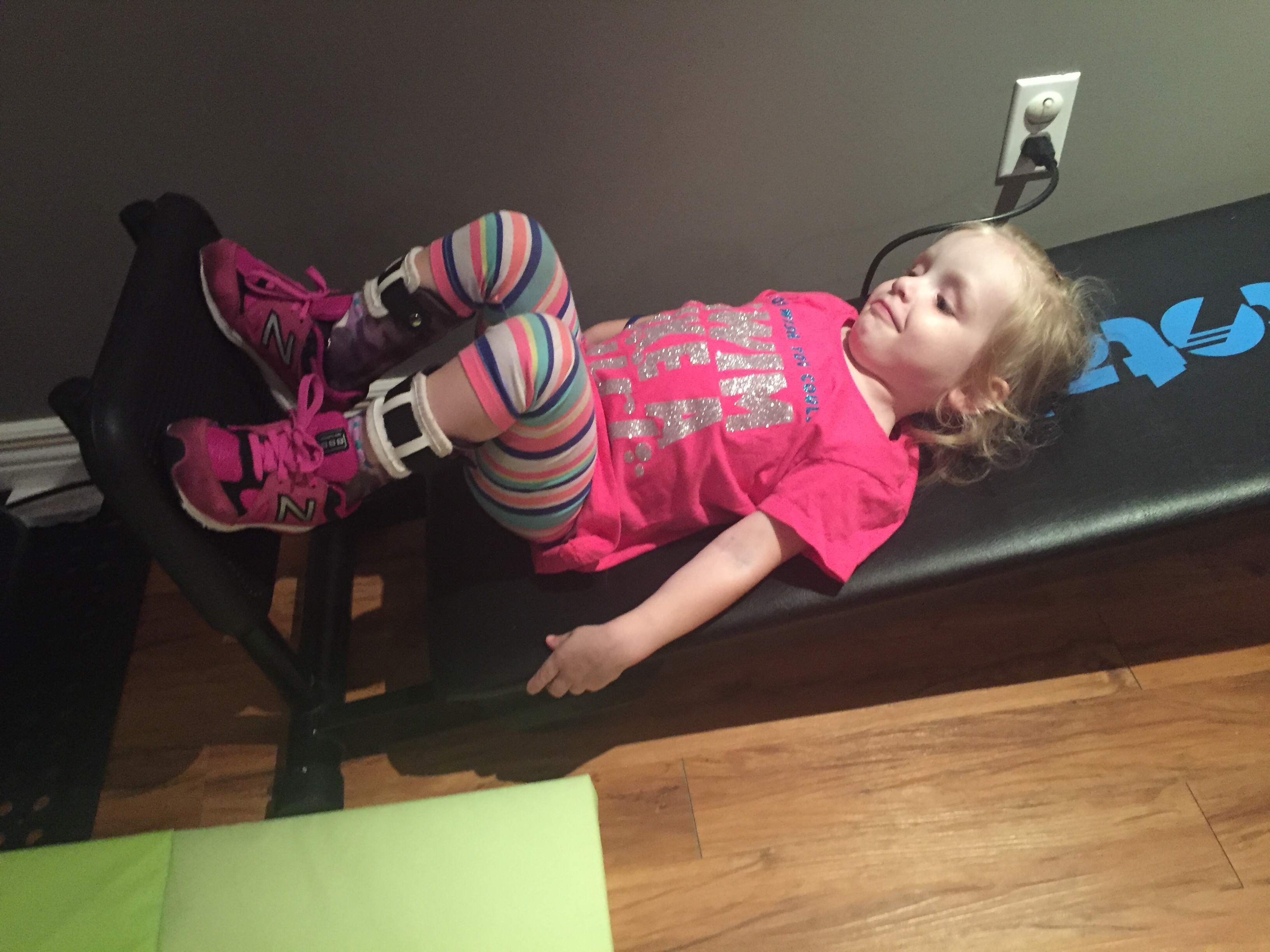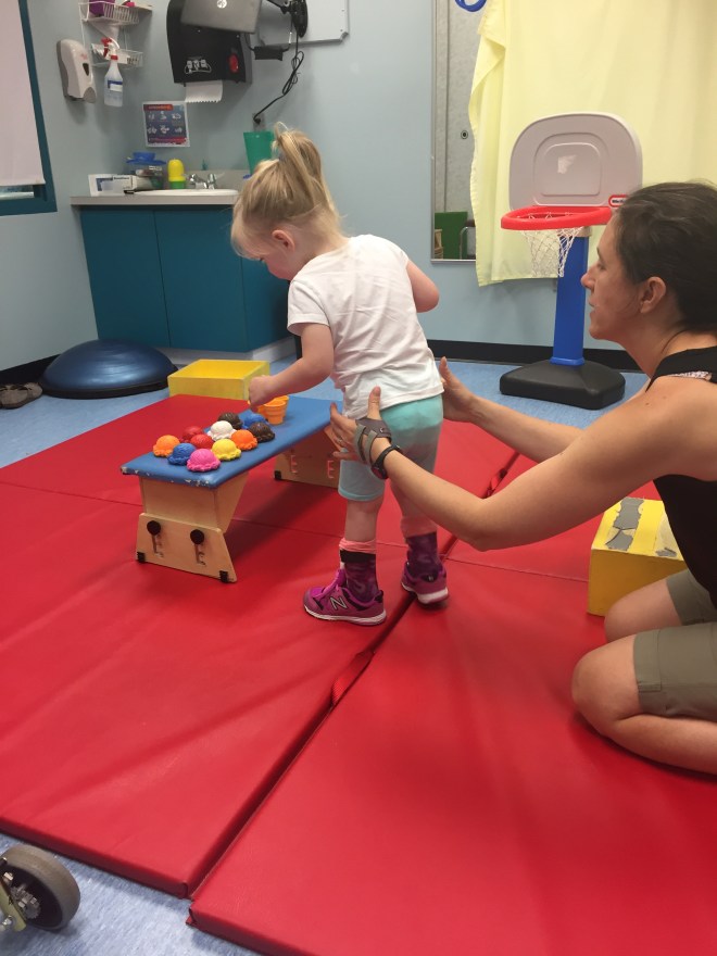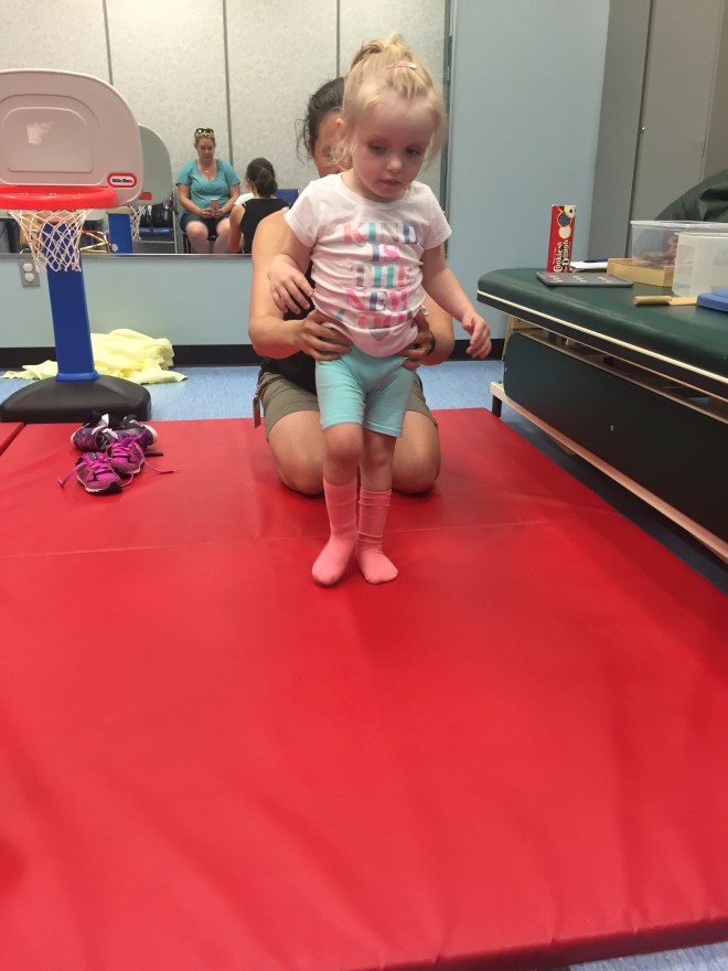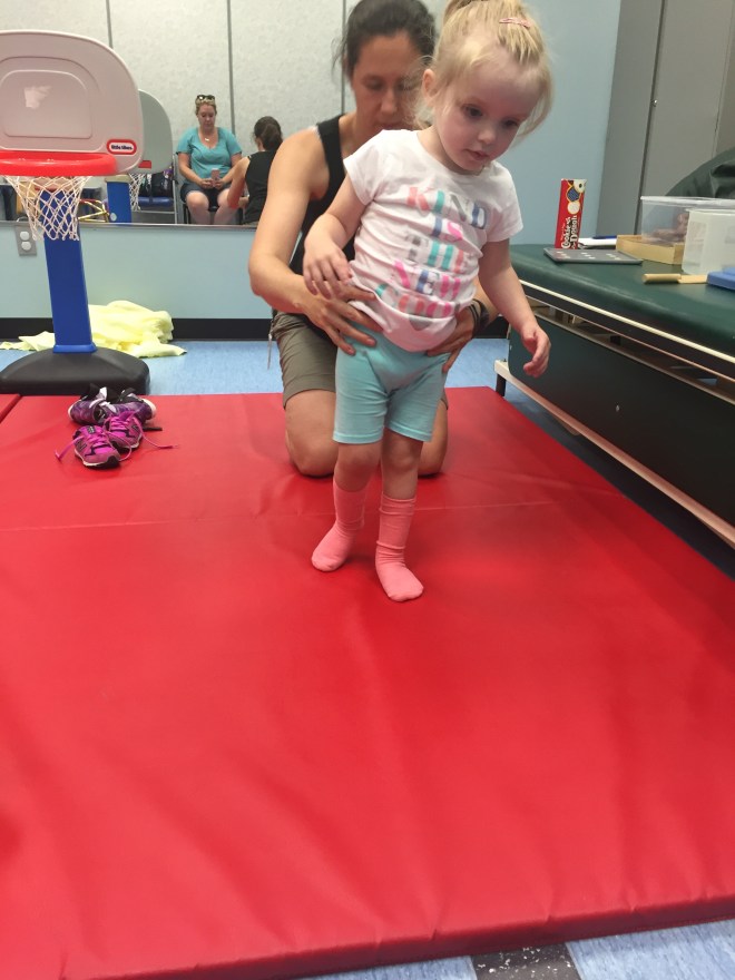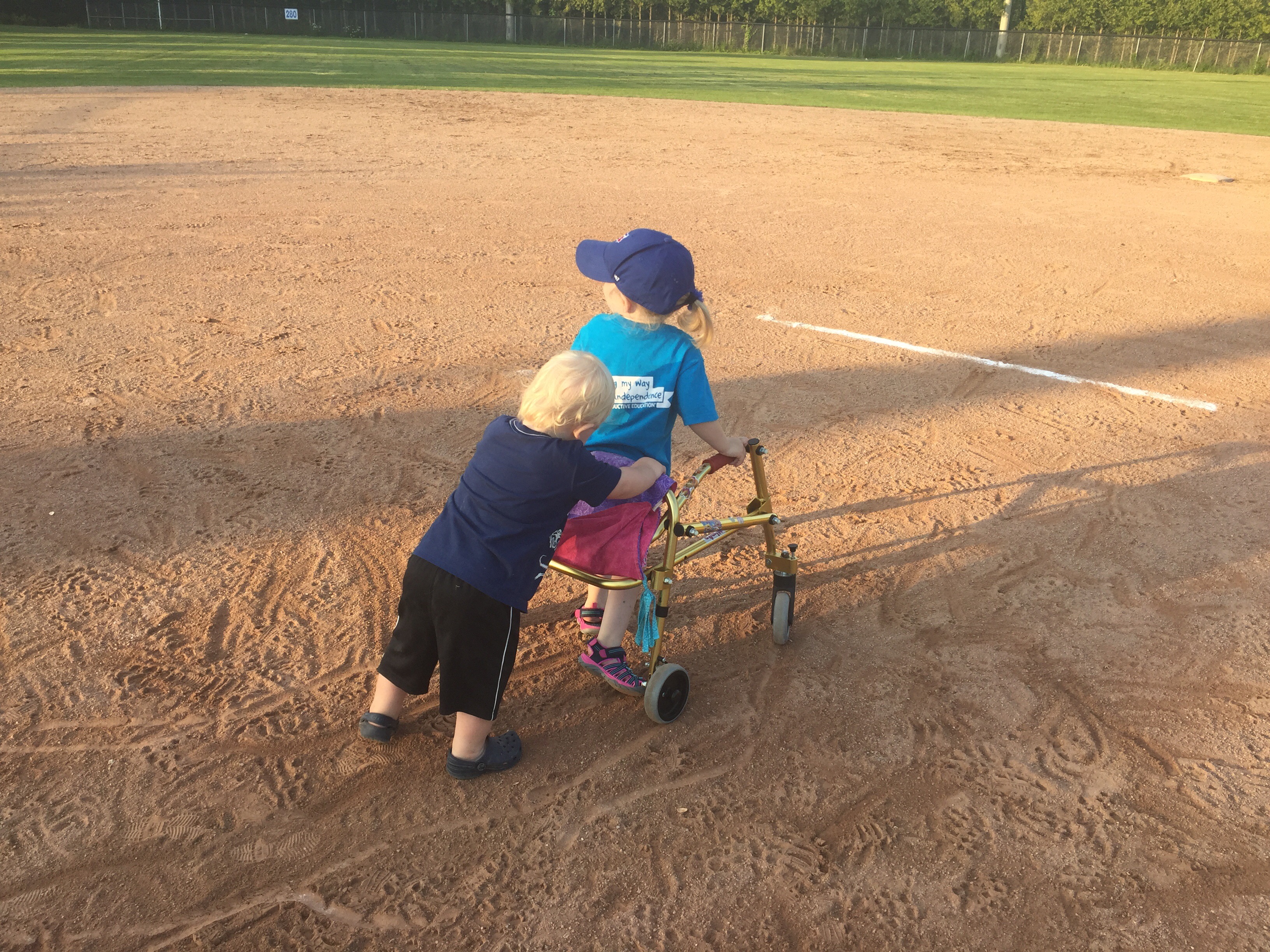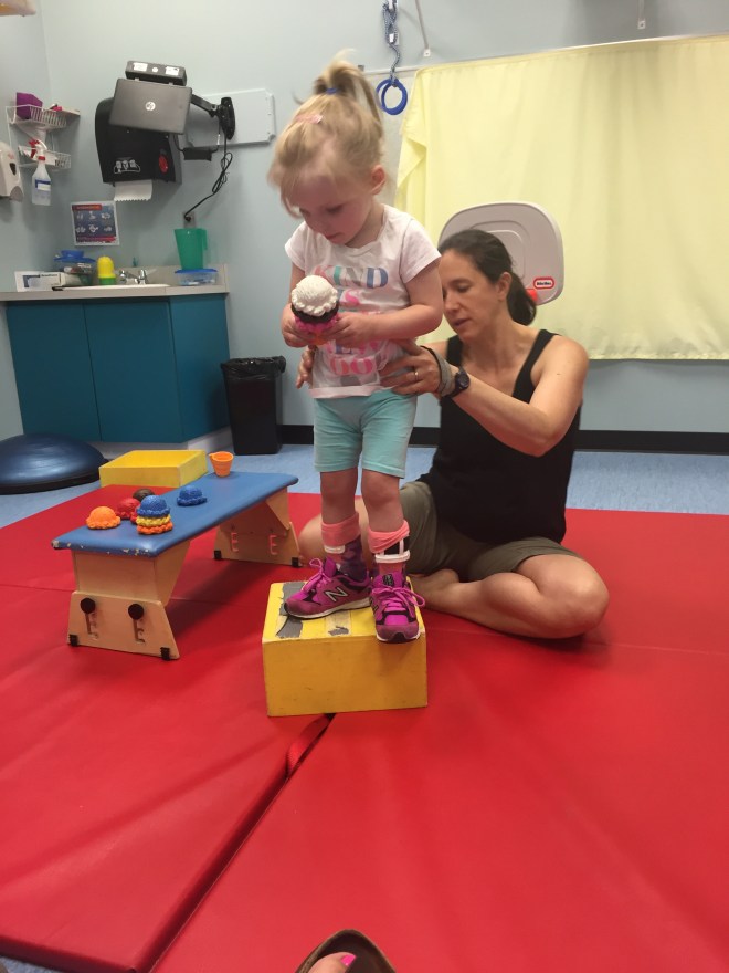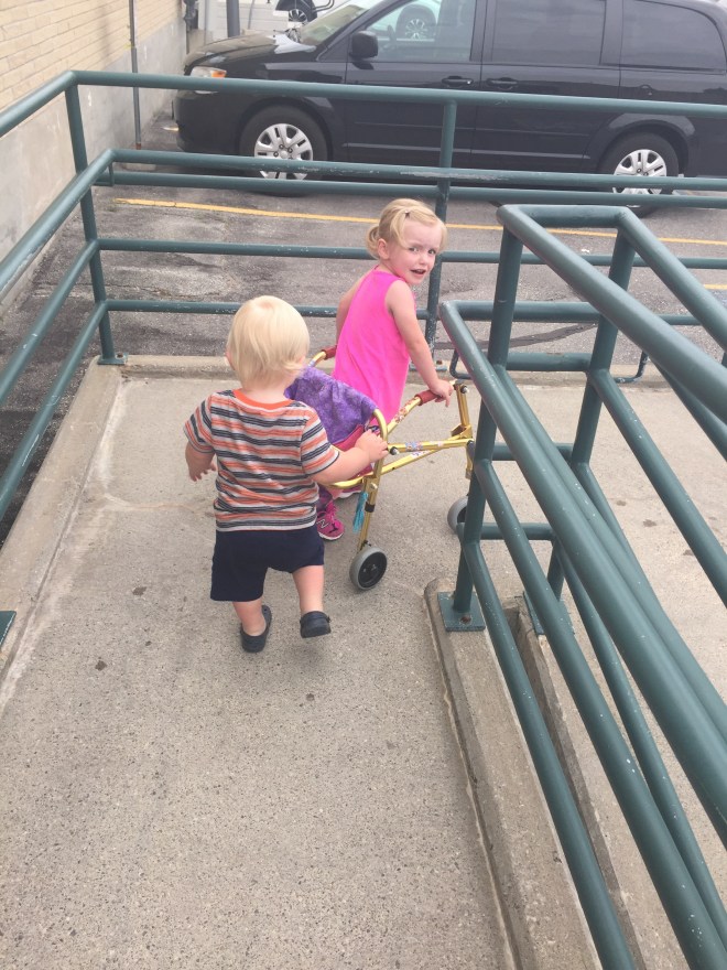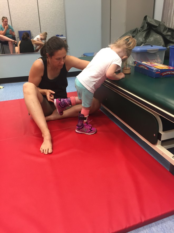 After camp, Mommy had a meeting at Variety Village and Madi worked with her trainer & buddy, Melissa. They did lots and lots of walking around the track, climbing, squat pushes on her scooter and she moved non stop for 1 hour! Thanks Melissa!